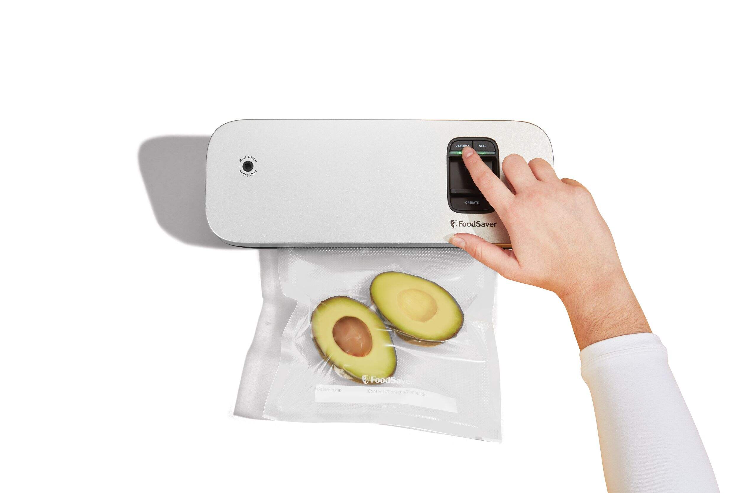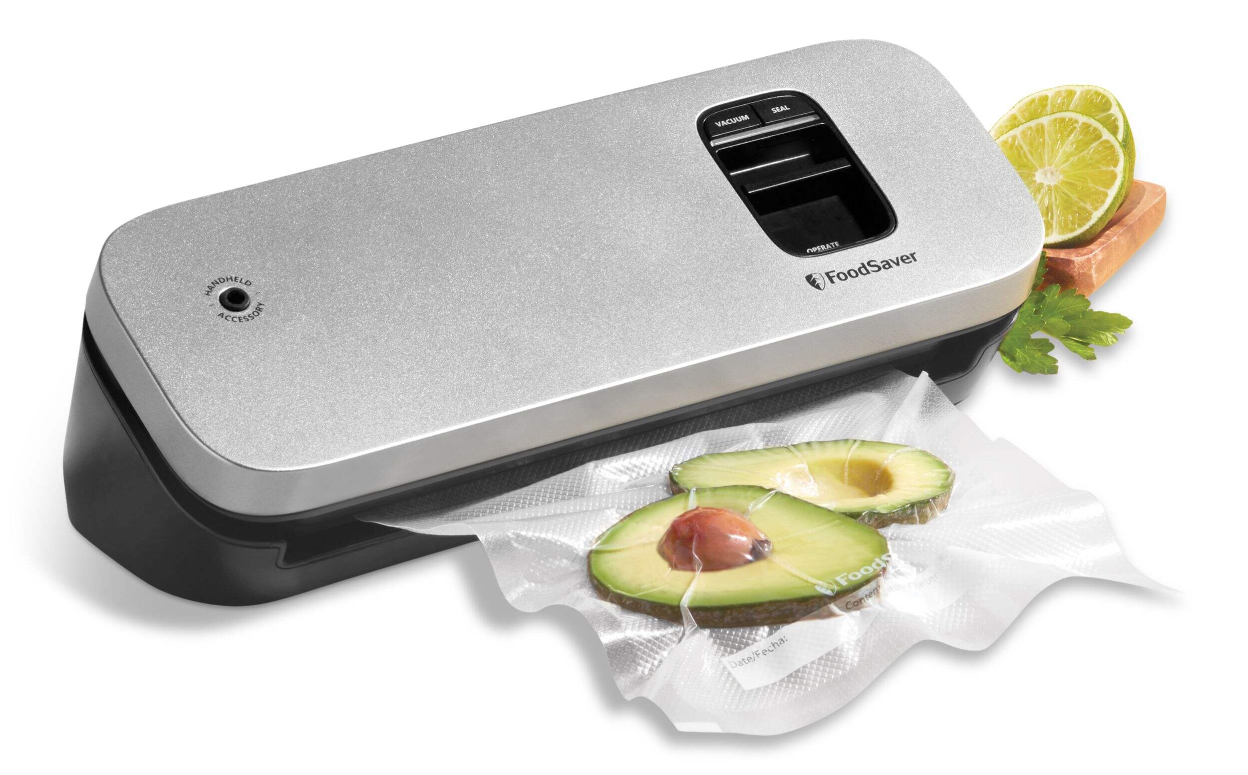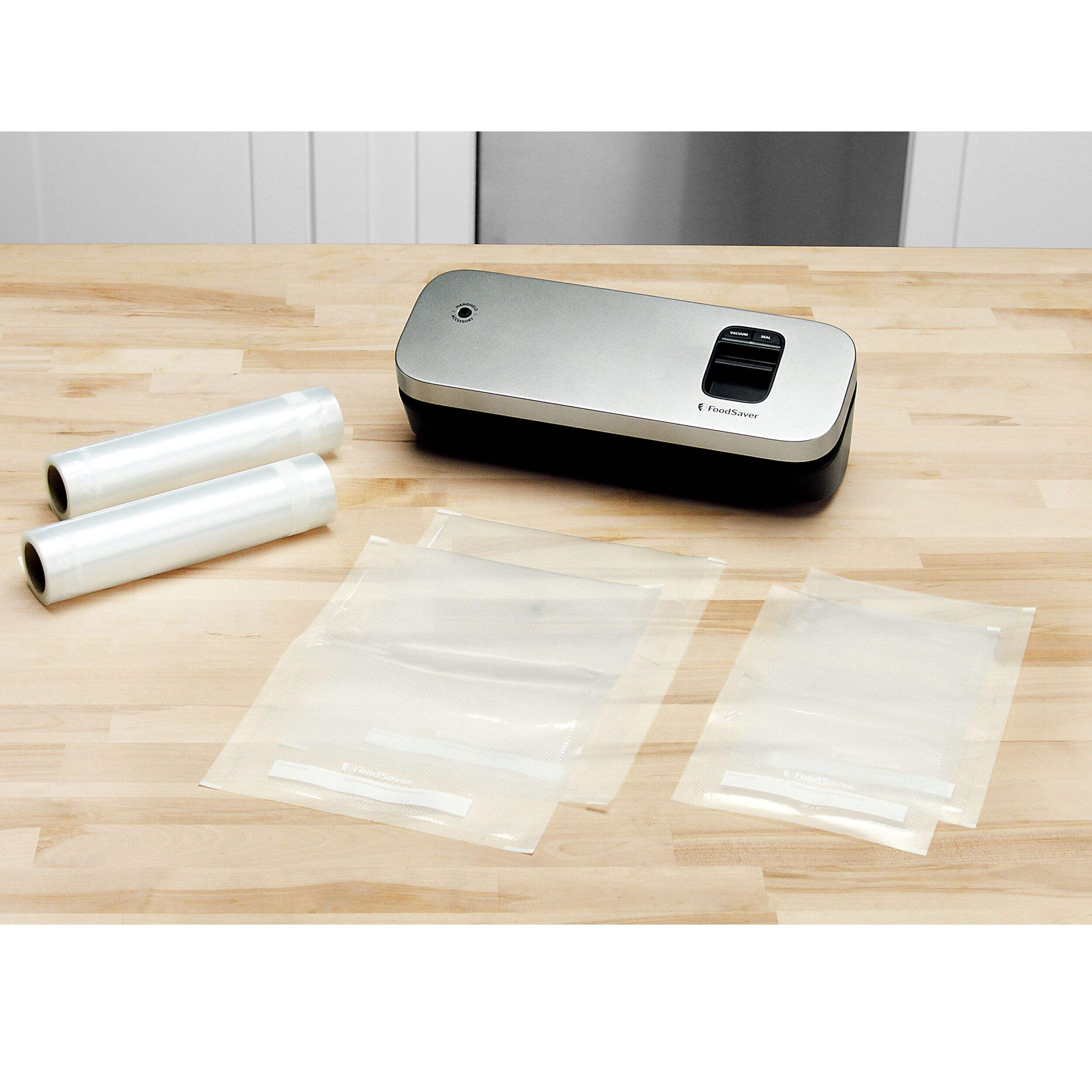 Compatible with FoodSaver 8" vacuum seal rolls and 1-quart and 1-pint vacuum seal bags, and when used with Handheld Sealer attachment (sold separately) works with FoodSaver Zipper Bags and Fresh Containers