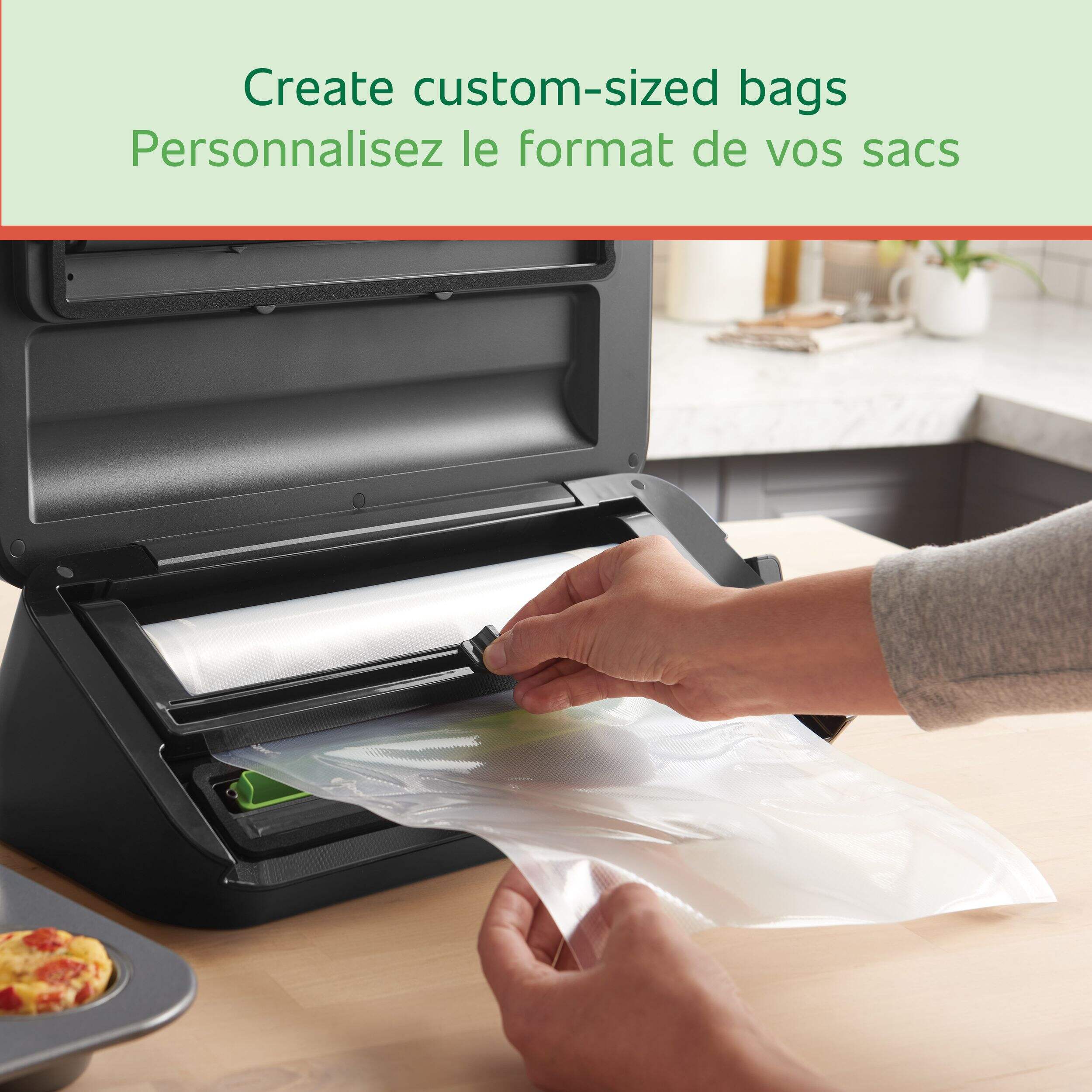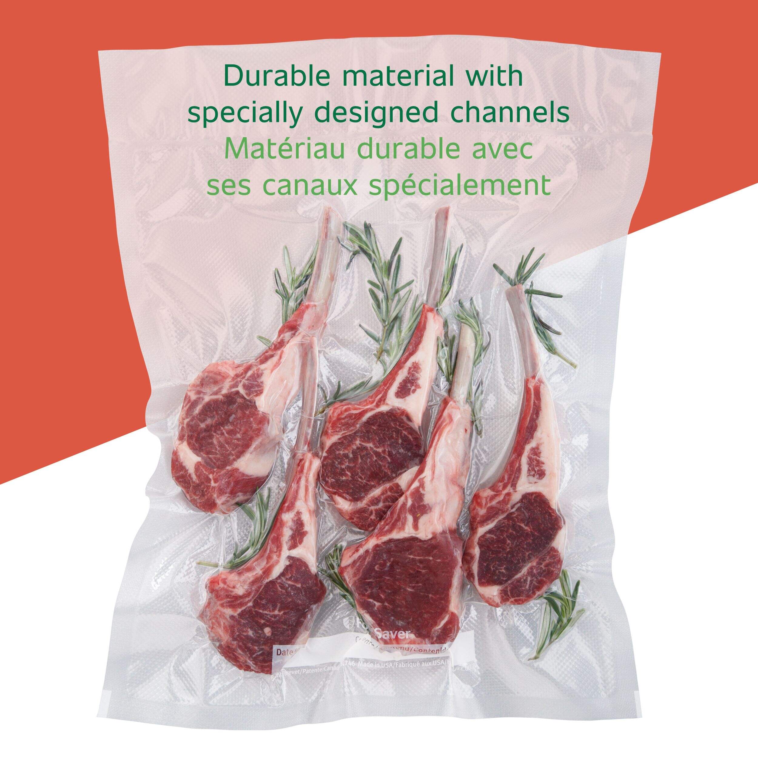 These handy FoodSaver Vacuum-Seal Rolls let you create custom-sized bags to package and protect food and non-food items using your FoodSaver Vacuum Sealing System. Made from the exact same material as our bags, FoodSaver Rolls give you great flexibility. Simply cut a piece to your desired length, seal one end, fill and then vacuum seal. Channels allow complete air removal and multi-layer construction blocks moisture and oxygen and makes the bags strong enough to simmer and microwave.