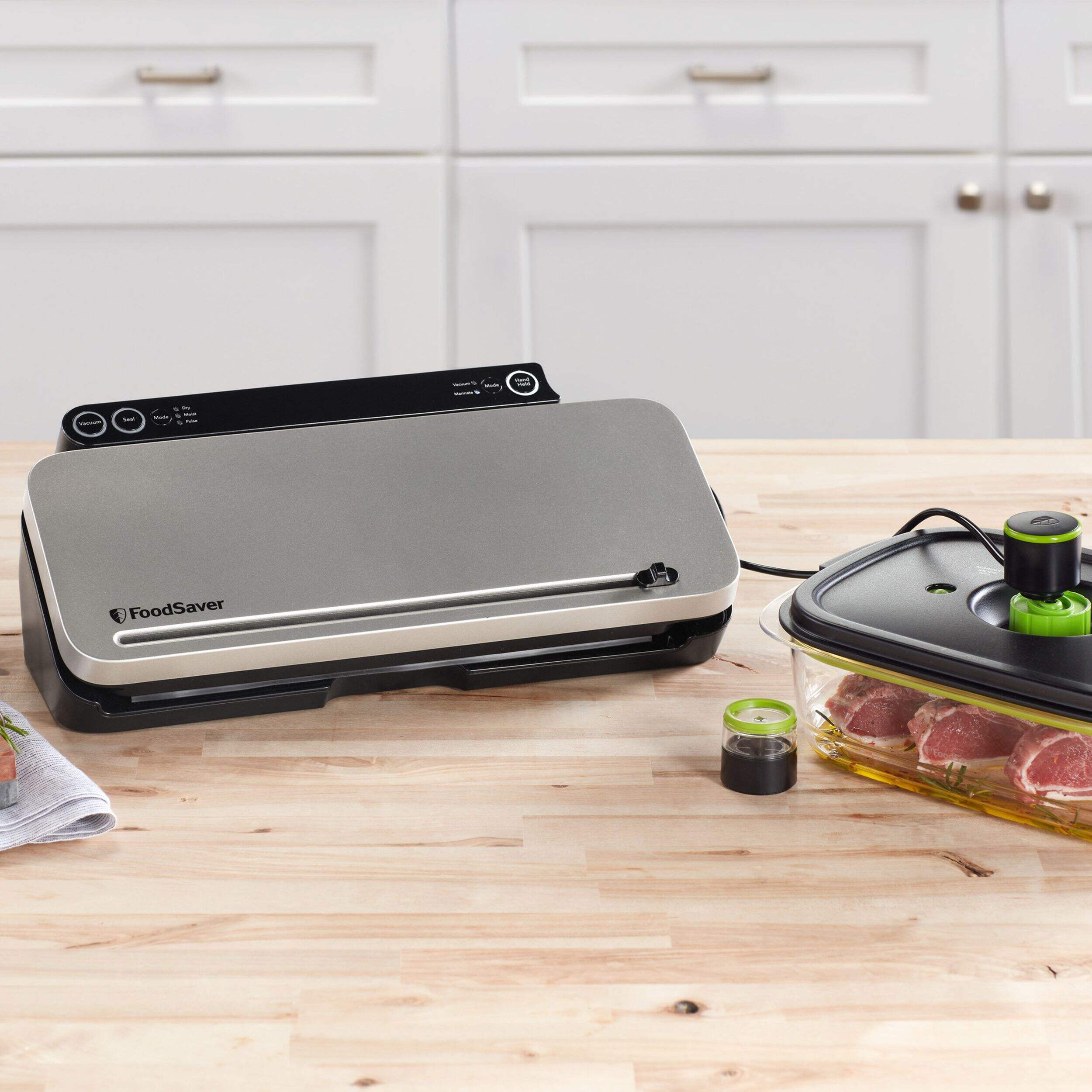 The FoodSaver Food Preservation System combines the power of a heat sealer with the convenience of a handheld vacuum sealer in one unit. Use the heat seal strip for long-term preservation in the freezer, and the handheld sealer for short-term preservation in the fridge or pantry. This unit's sleek, modern design features a charcoal stainless steel finish that looks great in any kitchen.