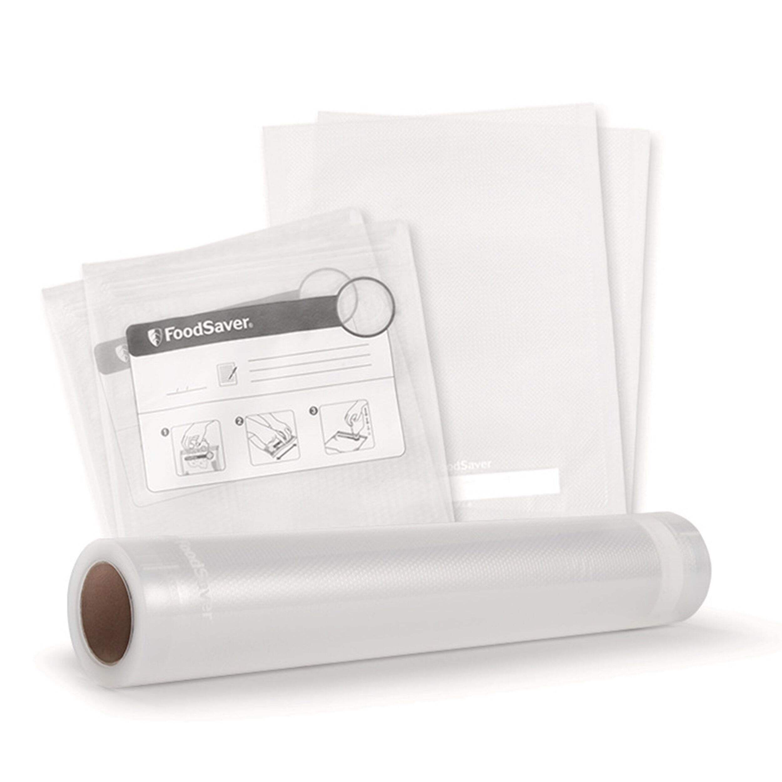 Includes one VS3160 Vacuum Sealer with built-in handheld sealer, one 11" x 8' roll, two quart-size vacuum seal bags, and two quart-size vacuum seal zipper bags