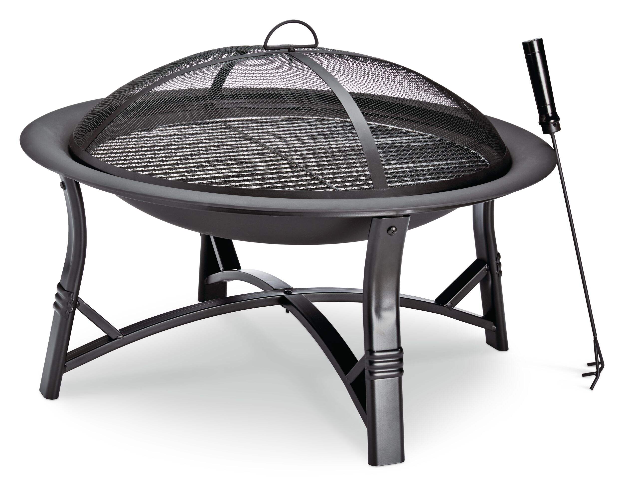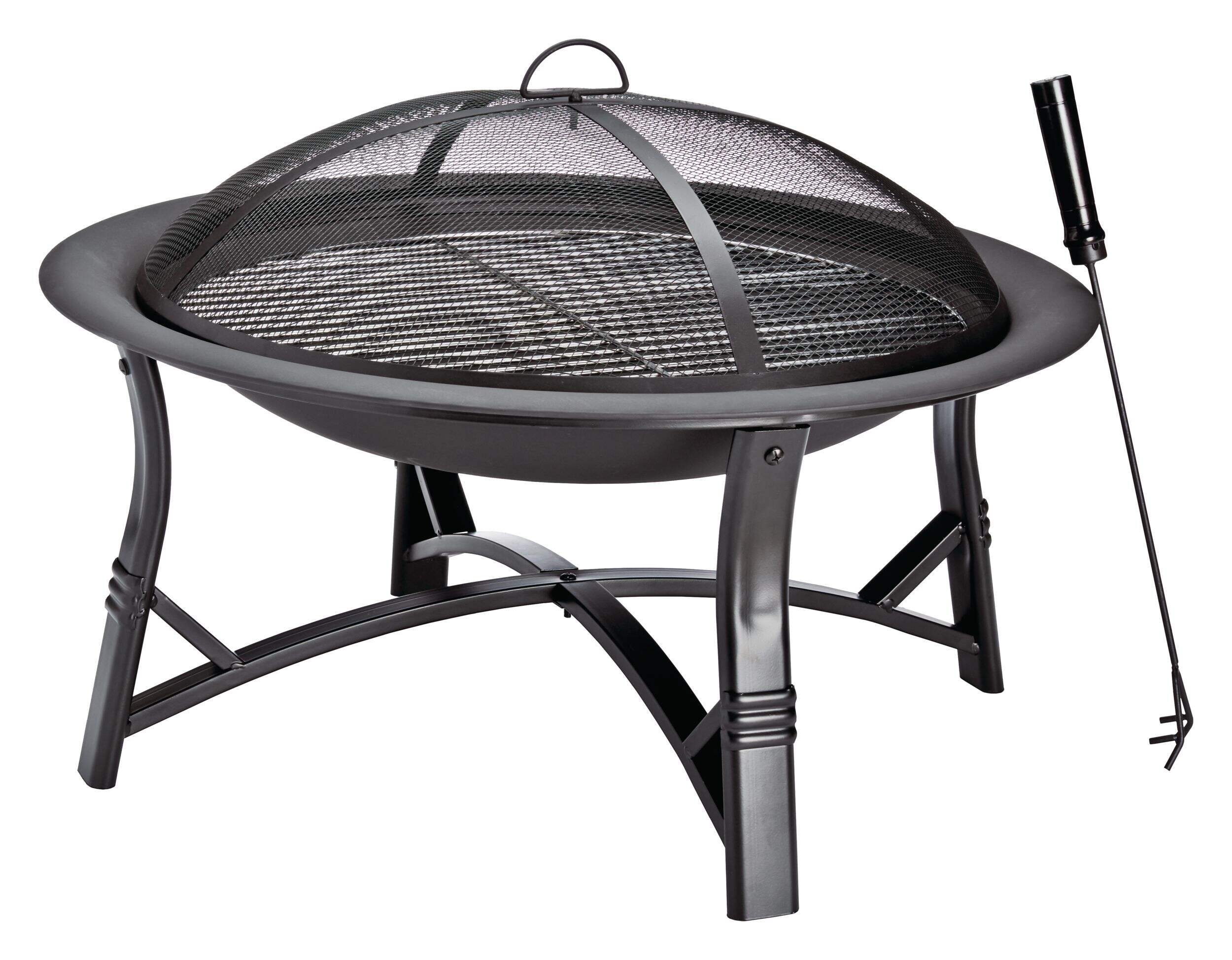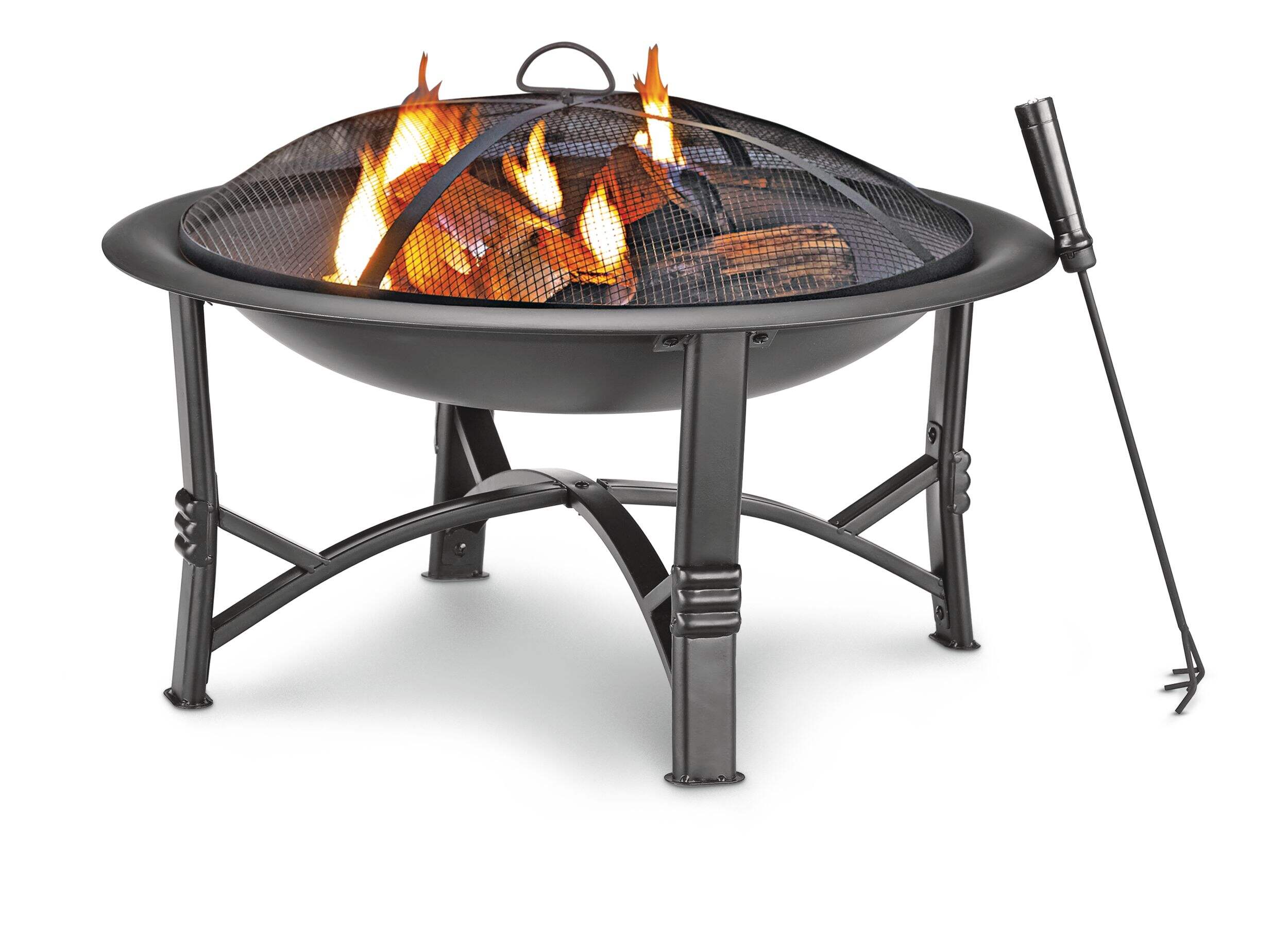 Includes fire poker and mesh screen