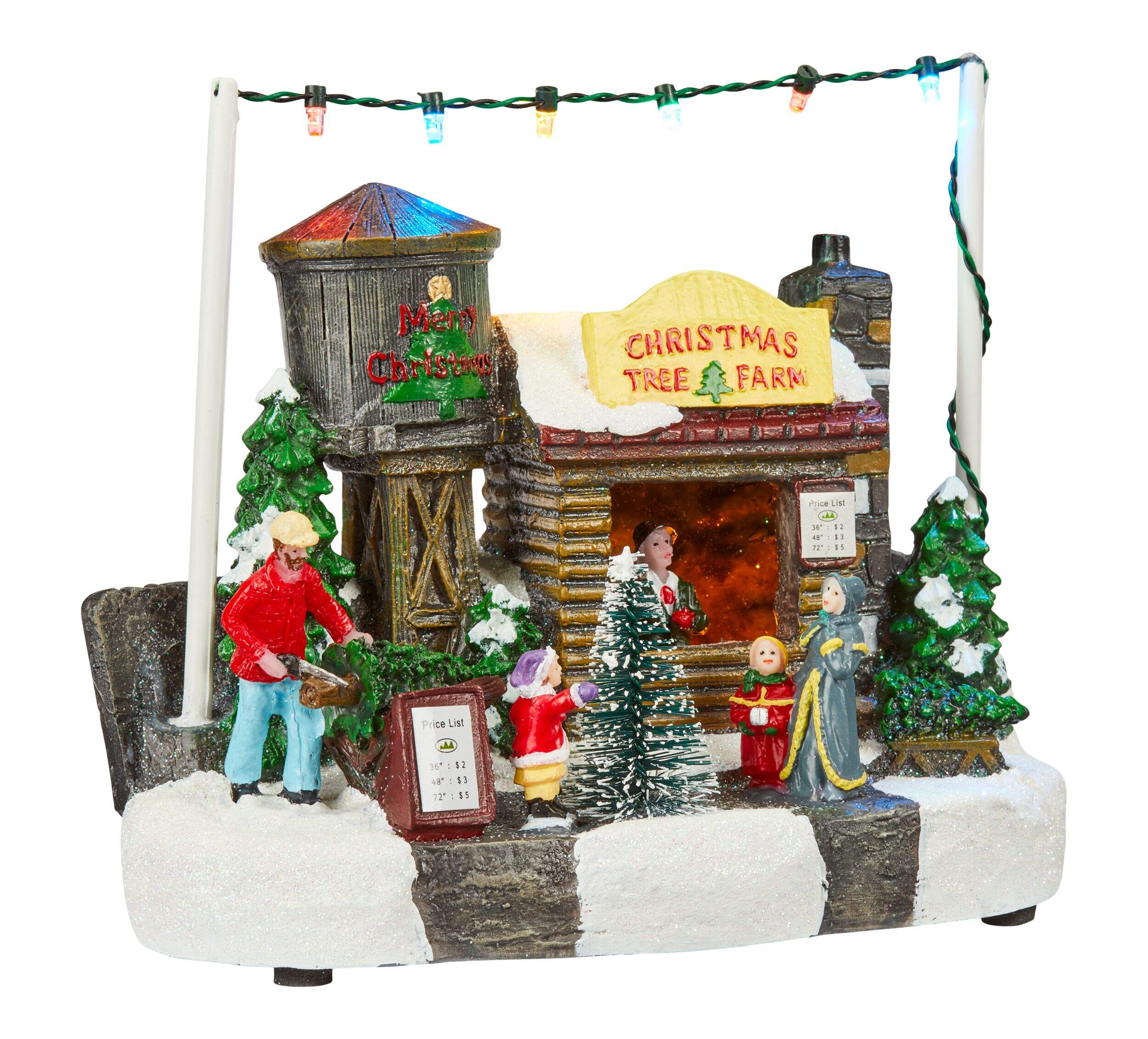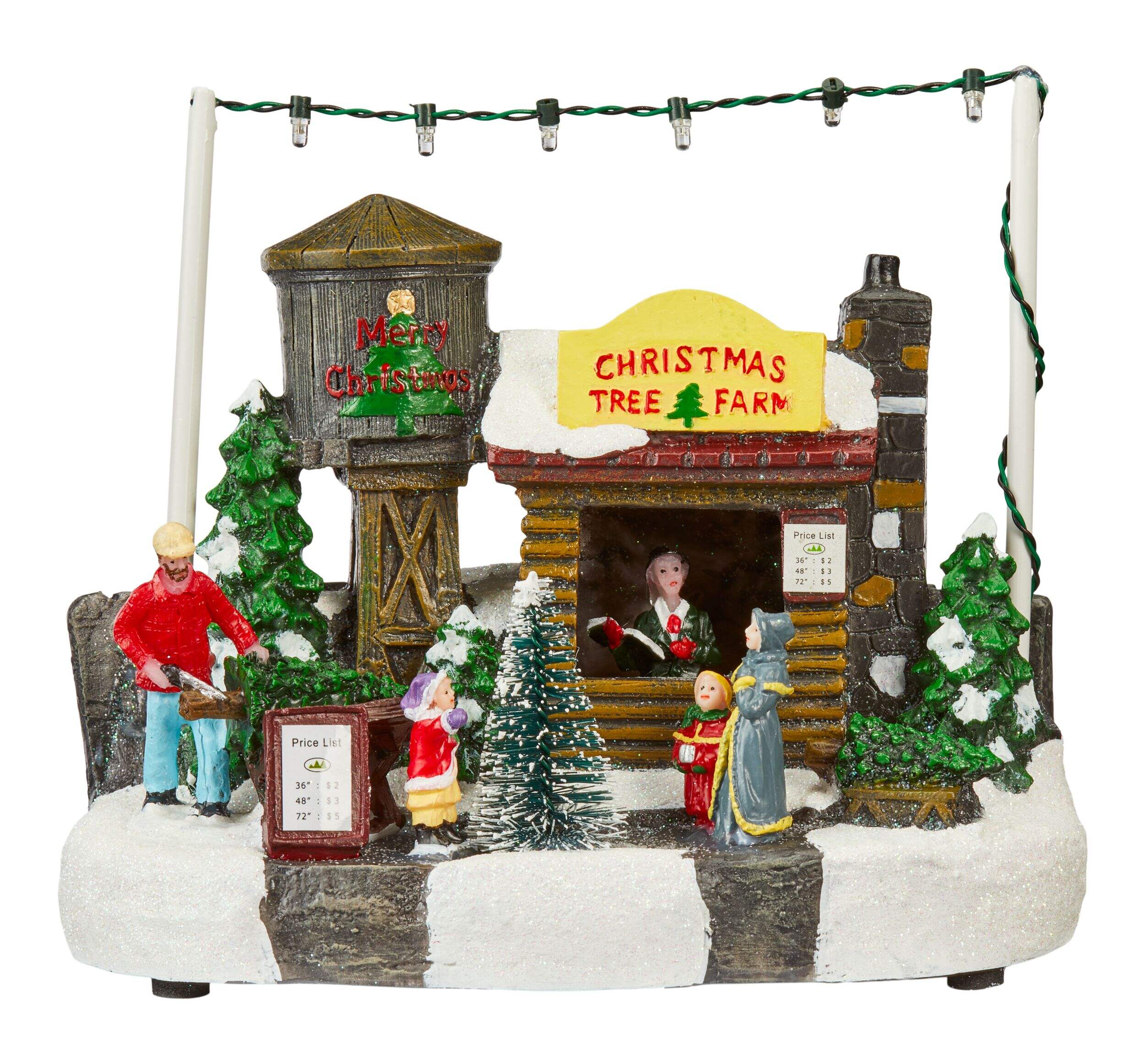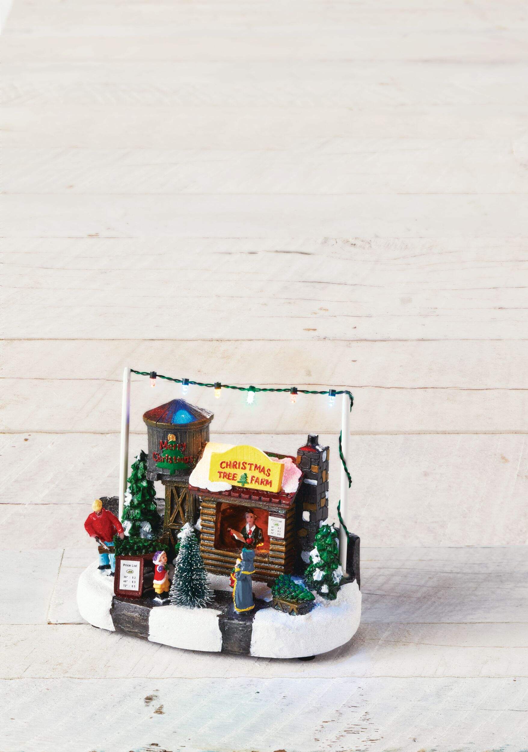 Bring a festive touch to any tabletop or mantle with the For Living Christmas Collection Battery Operated Green Ceramic Tree. This Christmas tree farm scene features 7 multi-colour LED lights that illuminate with the flick of a switch, creating a warm, celebratory ambiance. Crafted with meticulous detail, the miniature trees and surrounding elements come together in an enchanting display. With its compact size and battery-powered lights, this Christmas tree farm is ideal for indoor use only. Effortlessly set the holiday mood by incorporating this whimsical tree farm into your seasonal decor.