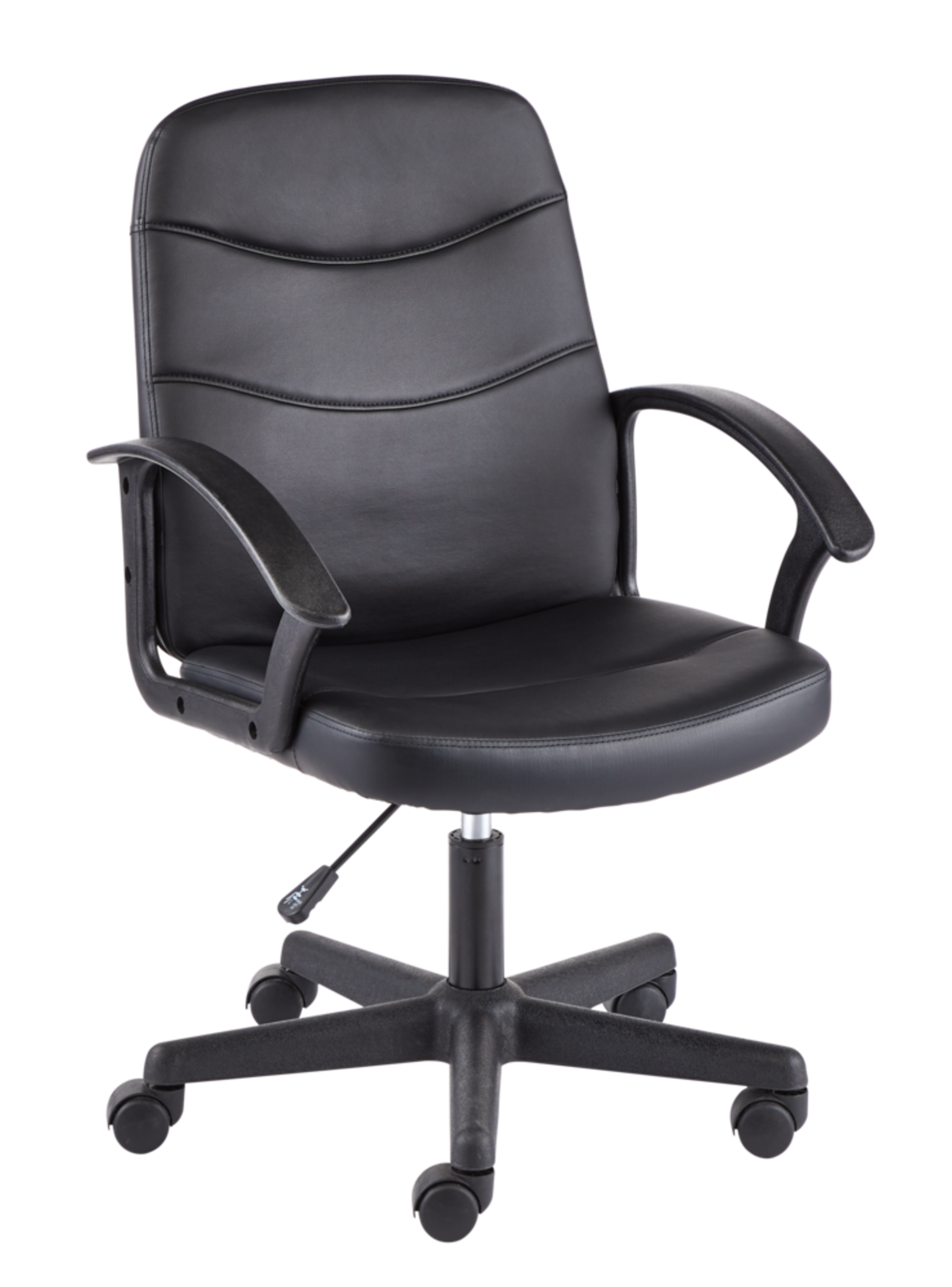 The For Living Faux Leather Adjustable Office Chair is designed to enhance your comfort throughout long workdays. Its sleek faux leather upholstery complements any office decor, while the cushioned seat provides essential support. The chair features loop arms for added convenience and adjustable height for personalized comfort. Smooth-rolling castors allow for easy mobility, and the supportive backrest helps you stay comfortable during extended periods of sitting. Perfect for improving any home or office workspace.