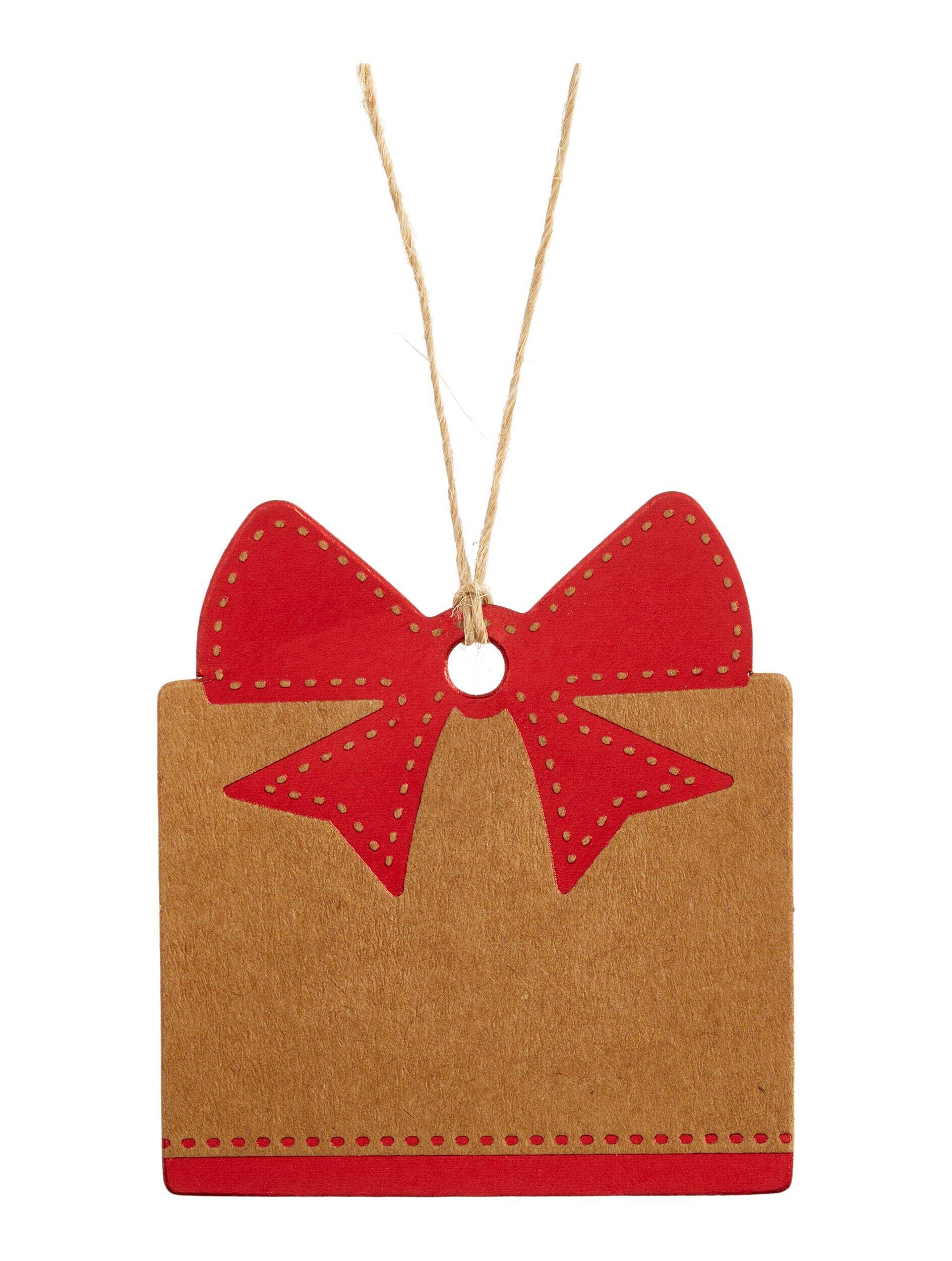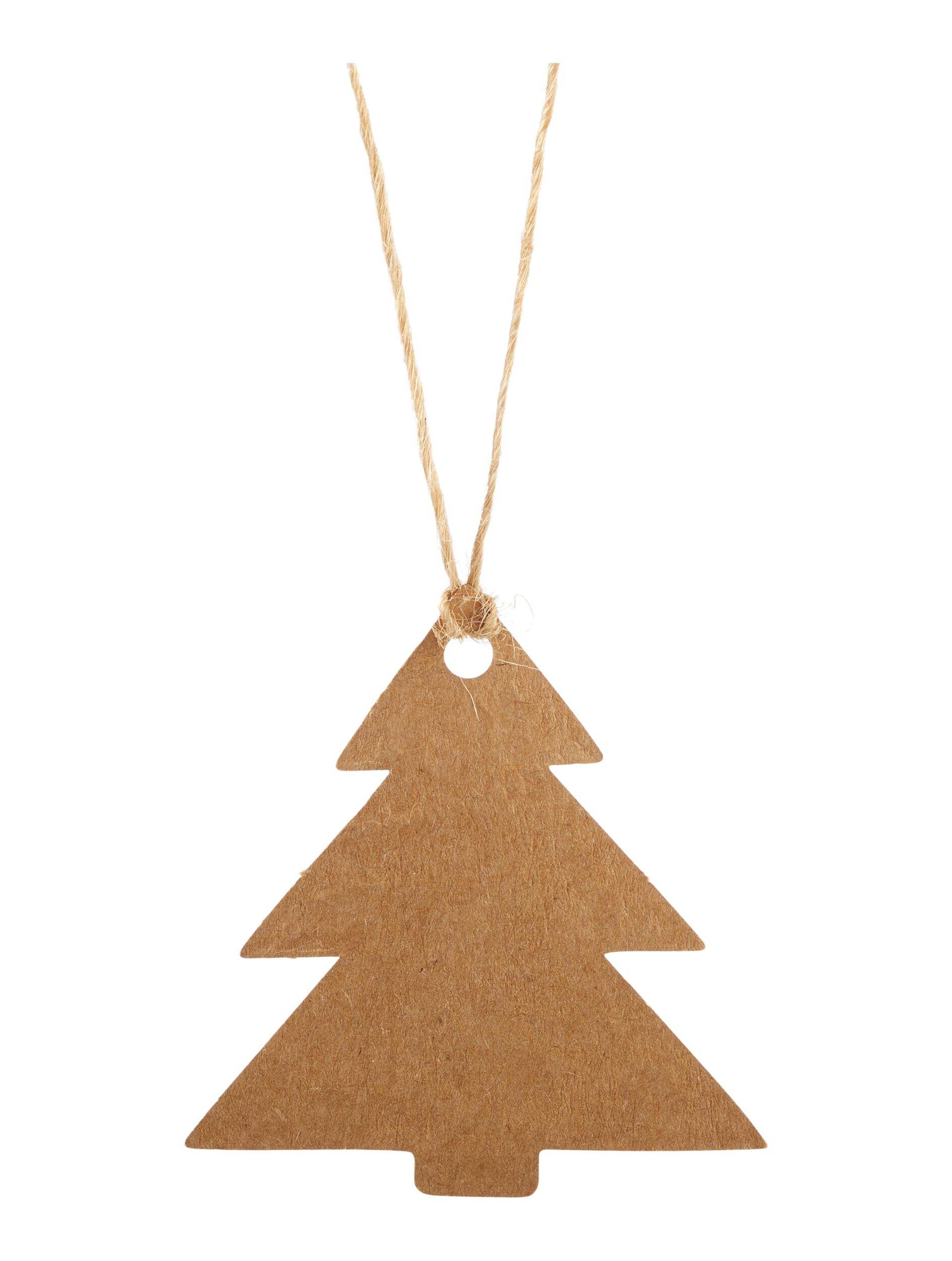 Festive tags shaped as Christmas trees, stars, presents, and ornaments