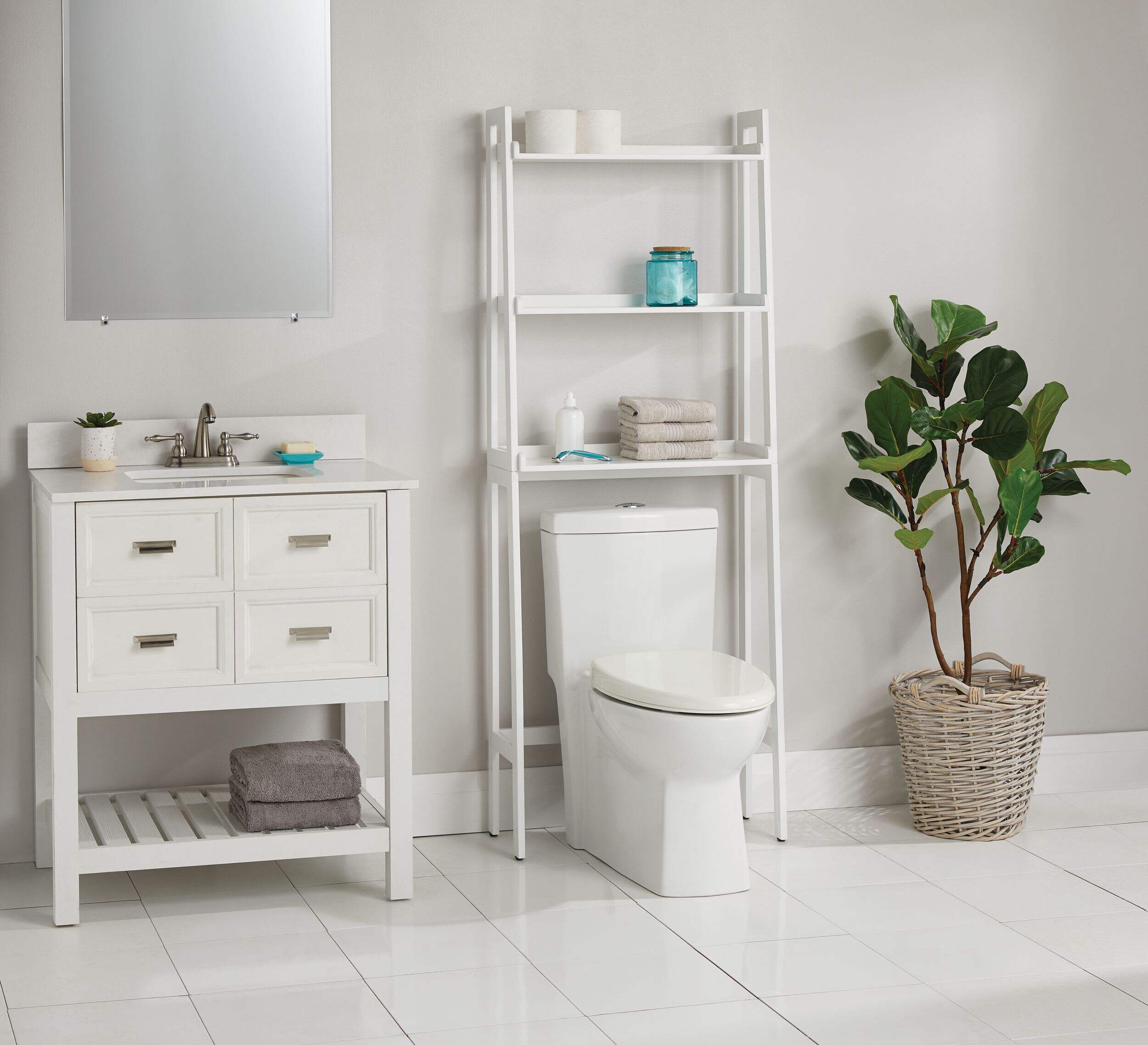 Fits above most toilet tanks, making efficient use of vertical space