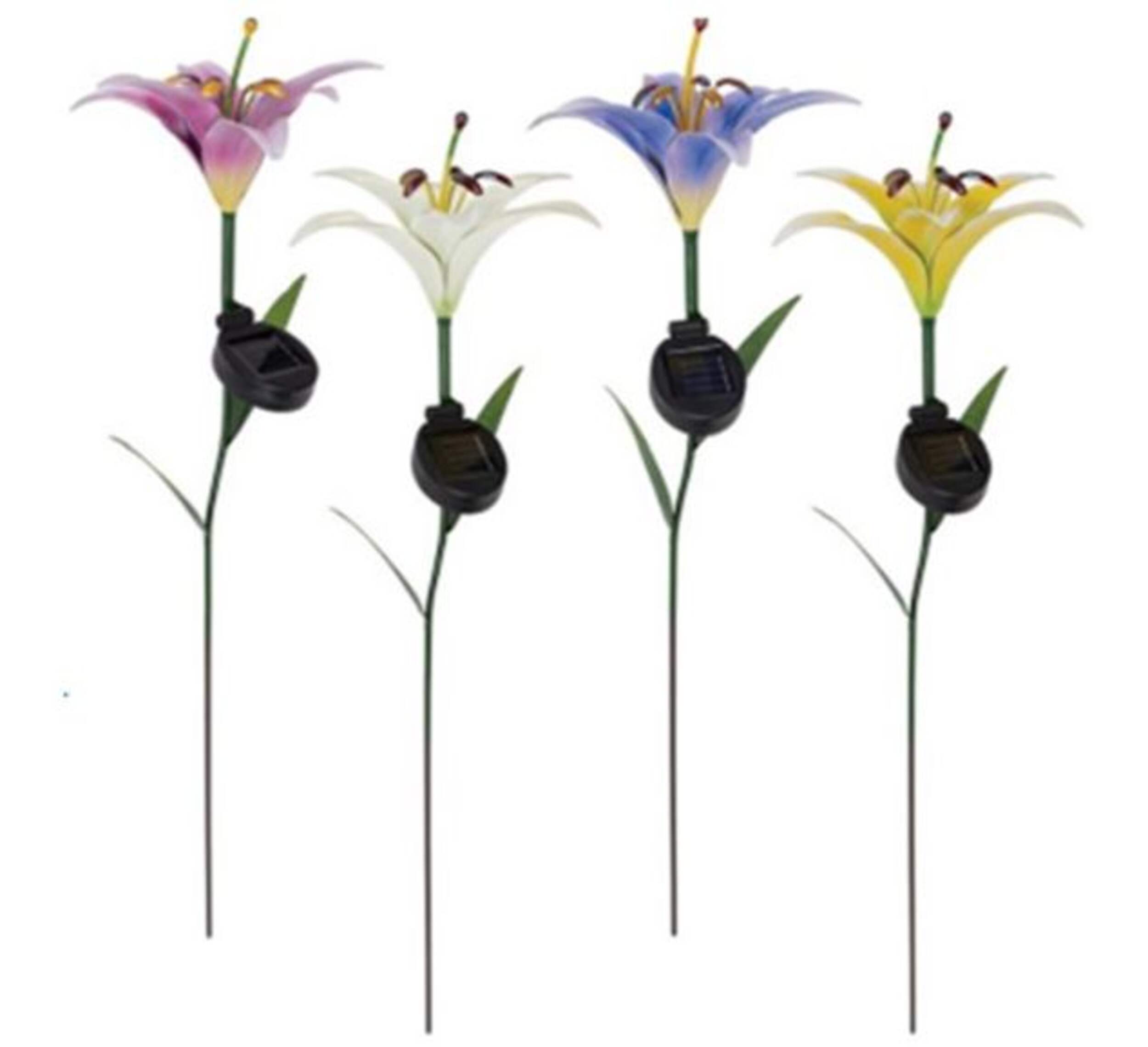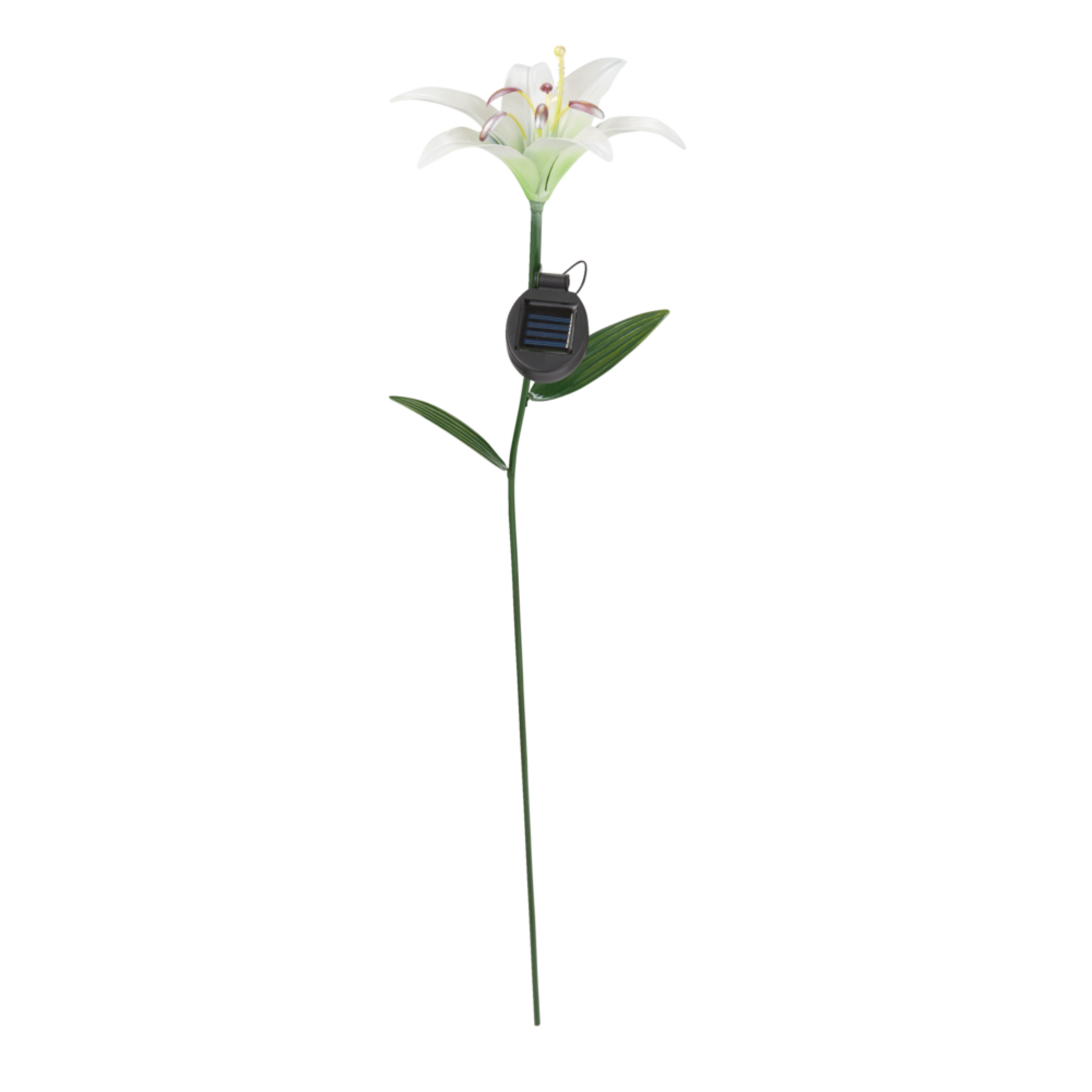 Give your pathways or garden added style with these For Living Lily Garden Stake with MicroDot LEDs. These lily garden stakes are design to resemble the real flowers for a chic, elegant look, and include warm white LED lights to illuminate your landscaping and enhance your home's outdoor aesthetic. Easy to use, these solar lily garden stake lights charge via sunlight, turn on automatically at dusk, and fit neatly into the ground for no-fuss installation.