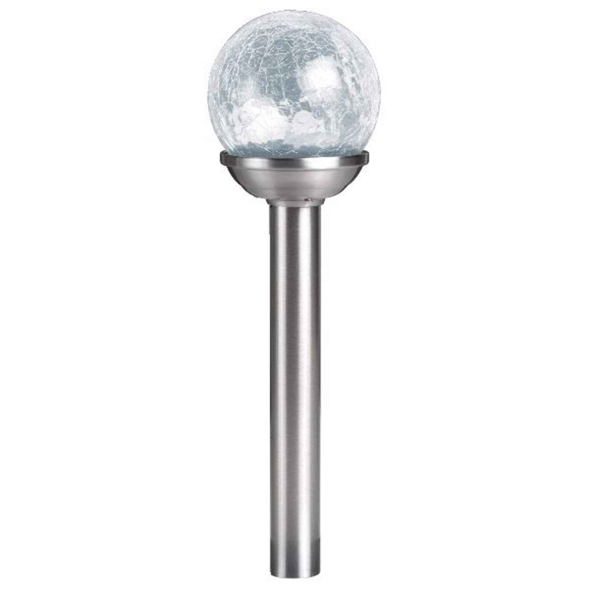 For a more conscious outdoor lighting option, choose this For Living Crackle Solar Light. It charges and runs via solar power. Designed for gardens and yards, this stake light adds decorative accent lighting to enhance your outdoor aesthetic. Additionally, place it along pathways for better visibility after sunset. Stylish and functional, this glass solar light extends an elegant look that compliments your decor and landscaping.