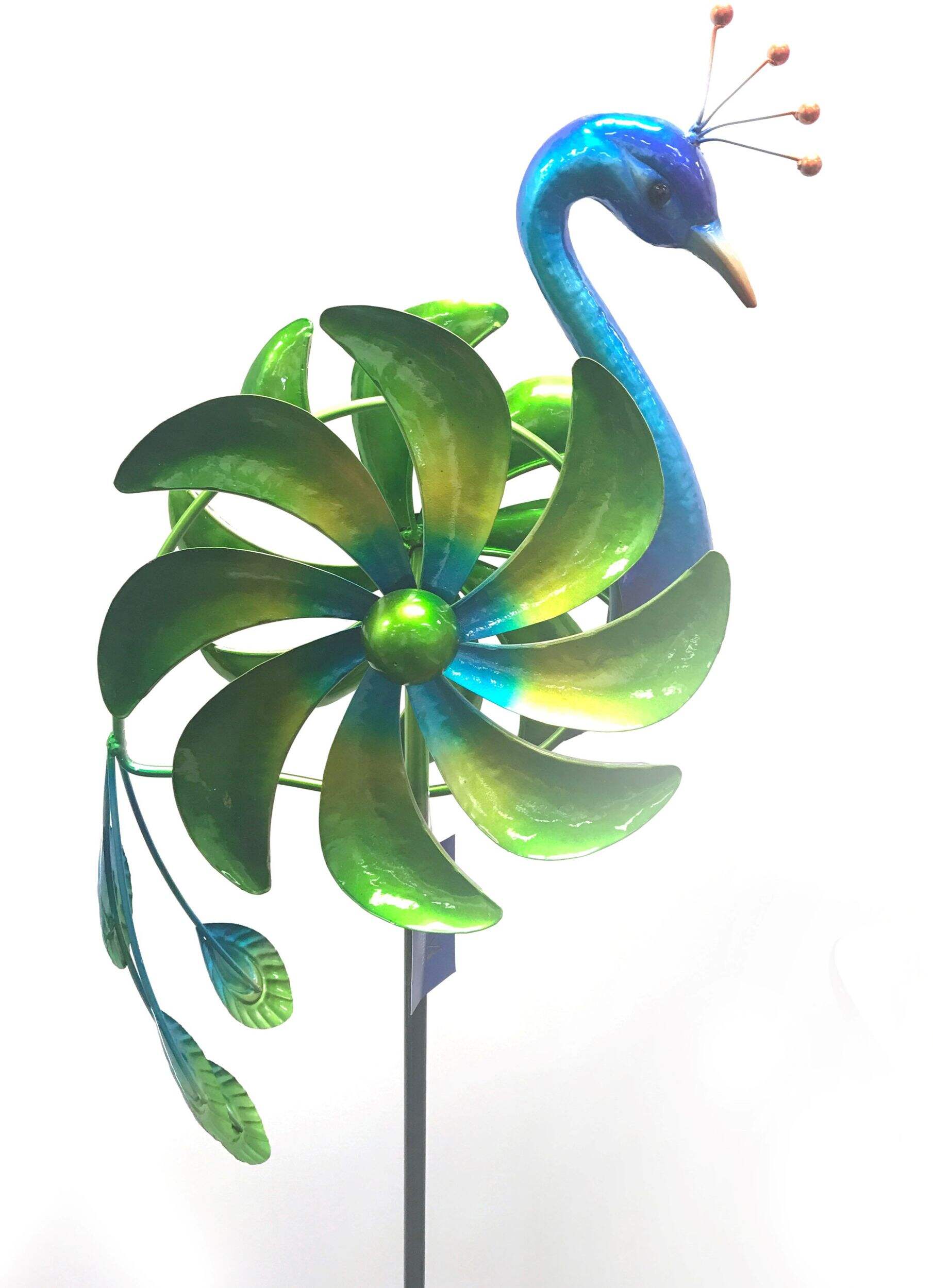A must-have for any backyard or outdoor living space, the For Living Peacock Wind Spinner & Garden Stake features a sturdy coloured metal construction and weatherproof design for long-lasting outdoor use. This peacock wind spinner showcases a bright, colourful peacock along with two wings that spin 360-degrees in the wind. The two-pronged stake at the bottom makes for easy installation in your lawn, providing a bright and vibrant aesthetic sure to impress.
