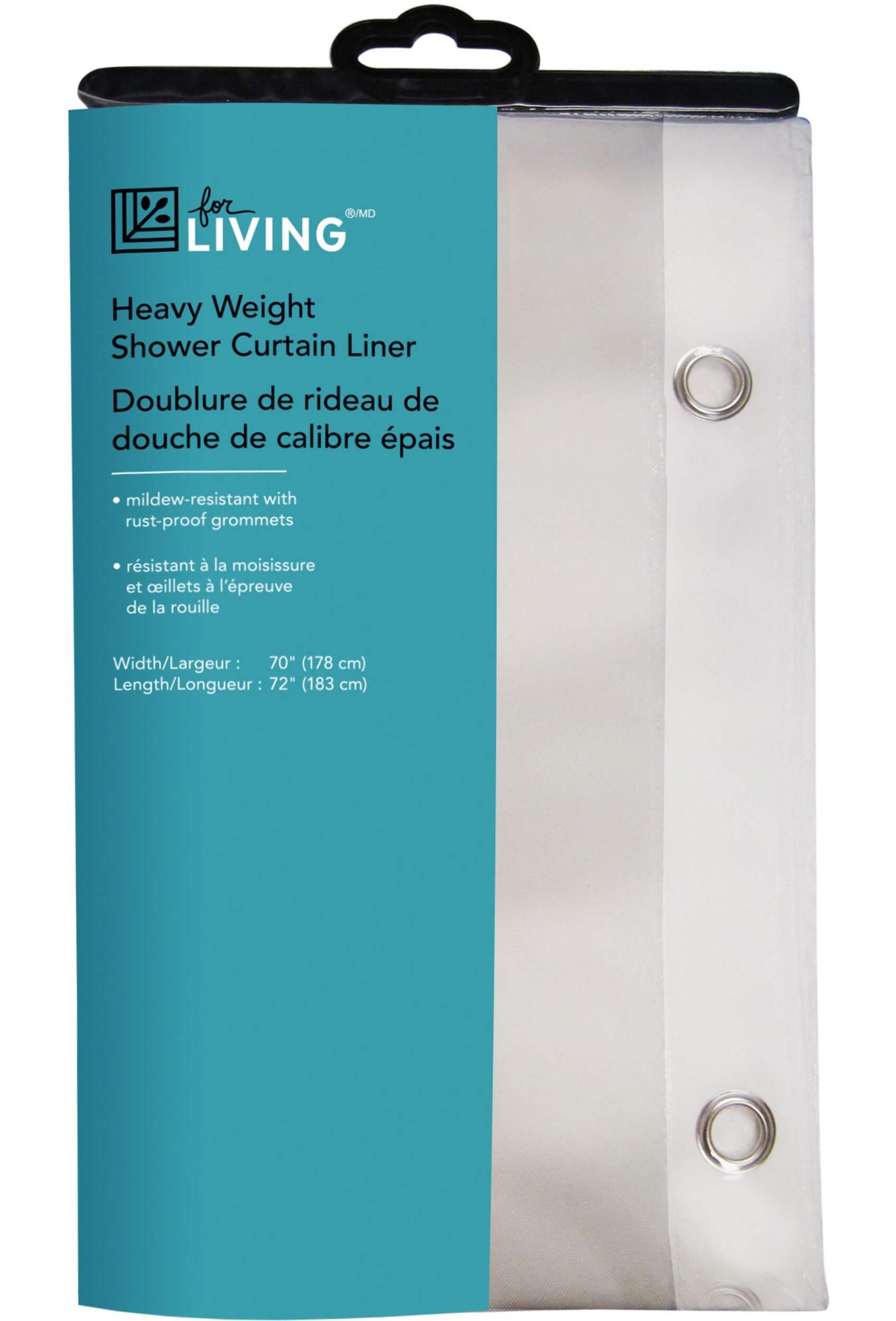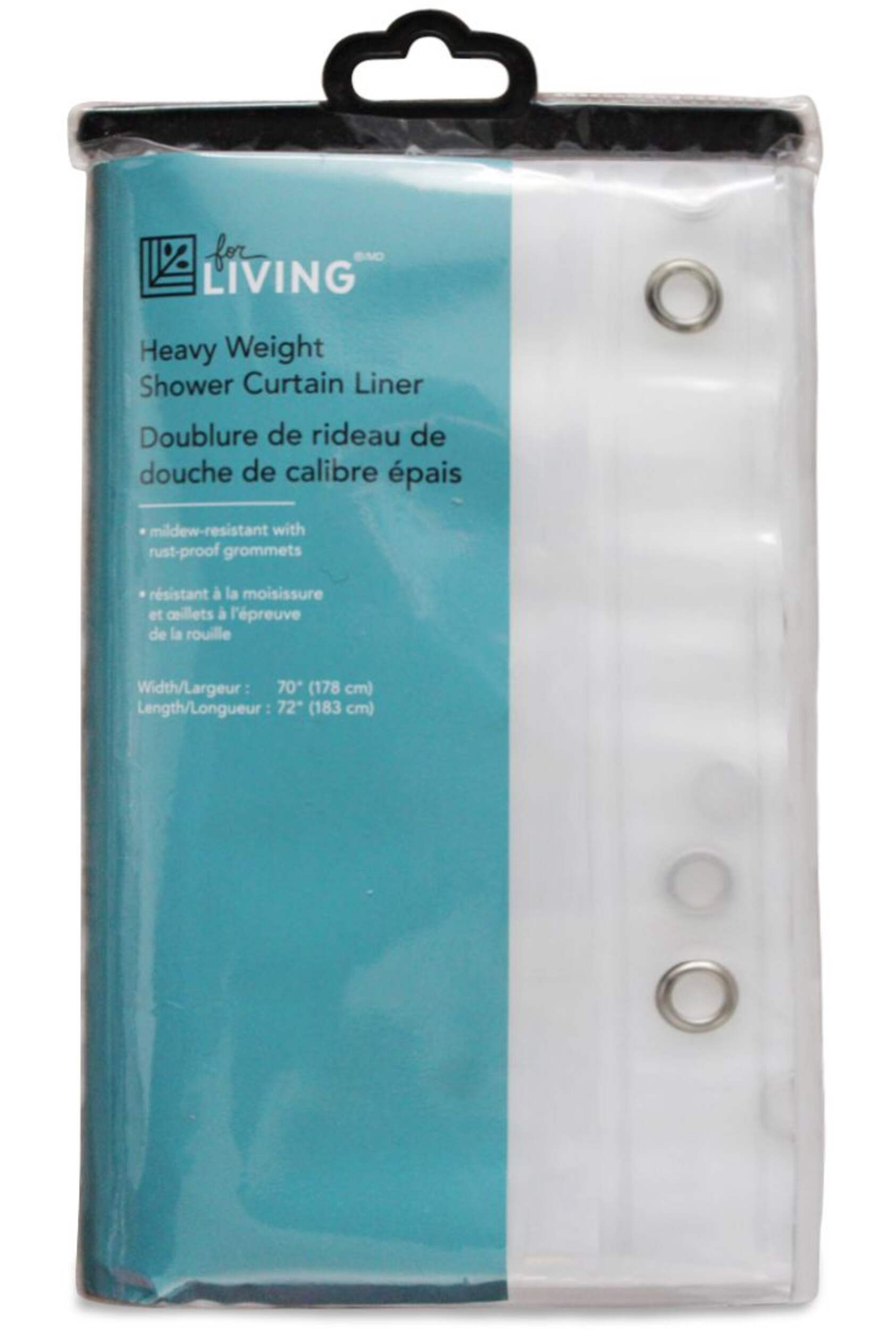 The For Living Heavy Weight PEVA Shower Curtain Liner helps keep your shower curtain protected and your floors dry. This chlorine-free, mildew-resistant shower curtain liner is an eco-friendly and practical choice for any bathroom. It's equipped with rust-proof grommets for easy and secure hanging on shower curtain rings as well as magnetic weights to secure it to the side of your tub. This white curtain liner is a versatile accessory that will effortlessly complement any shower curtain.