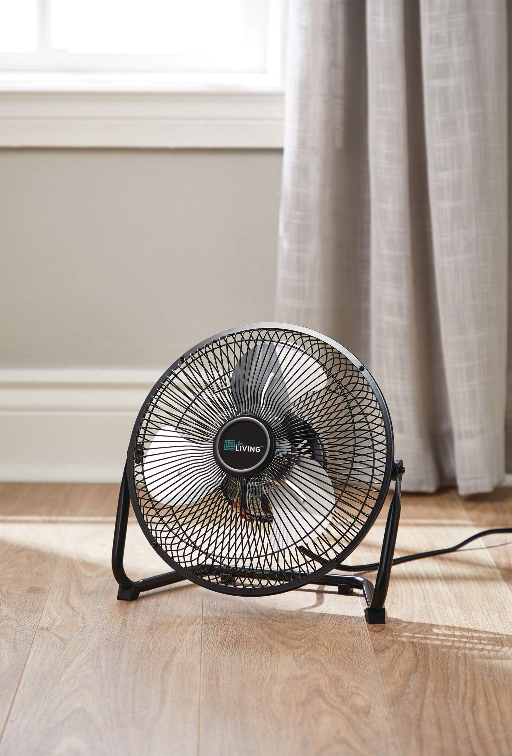 Bring a cool breeze wherever you go with the portable For Living Portable Oscillating Box/Floor Fan. This compact 9" black floor fan comes with carry handle so you can bring it from room to room, while the sturdy base allows you to set it on the floor, table or countertop. Featuring three speeds and a 360° pivoting head, the indoor floor fan circulates air evenly through a room at low, medium or high power.