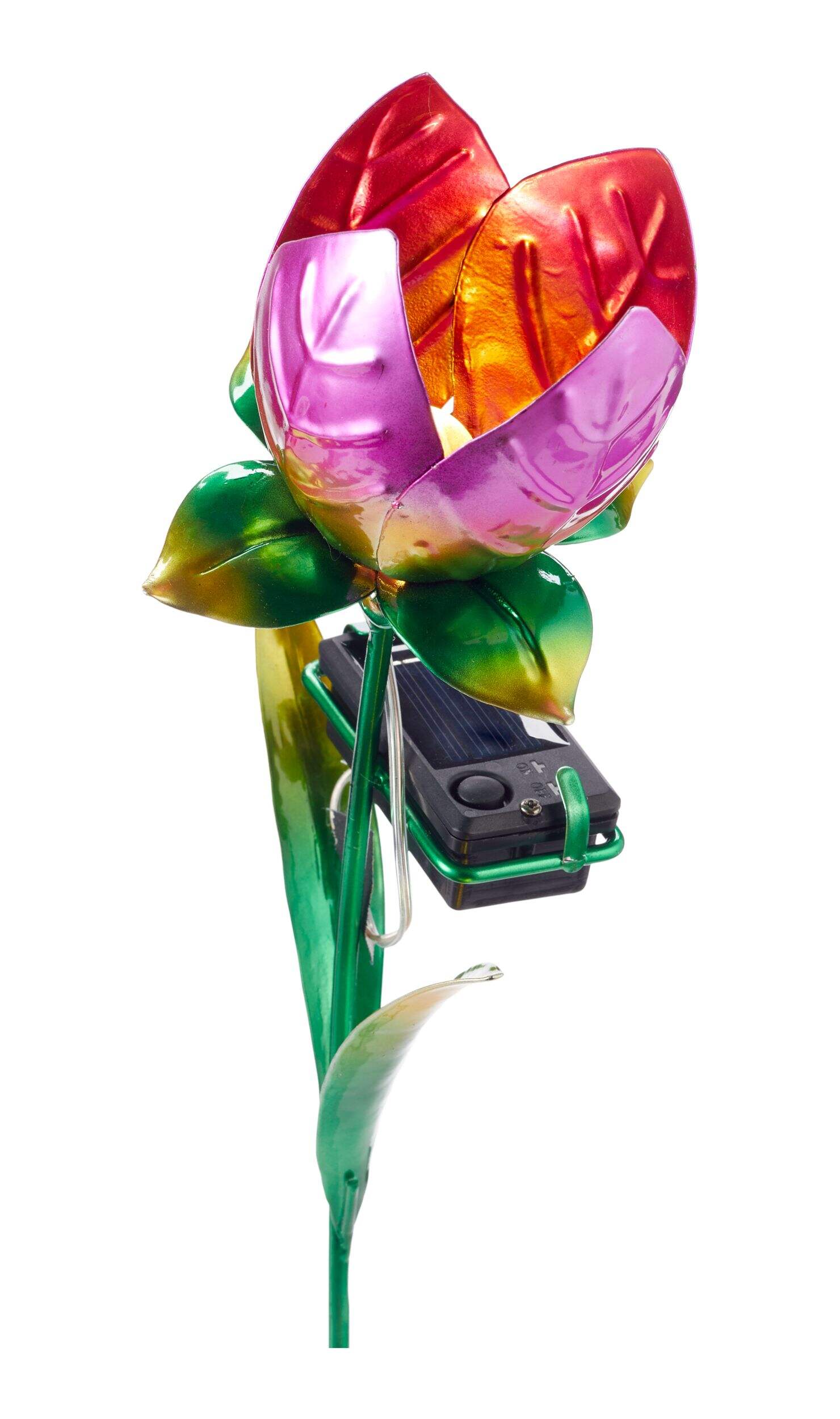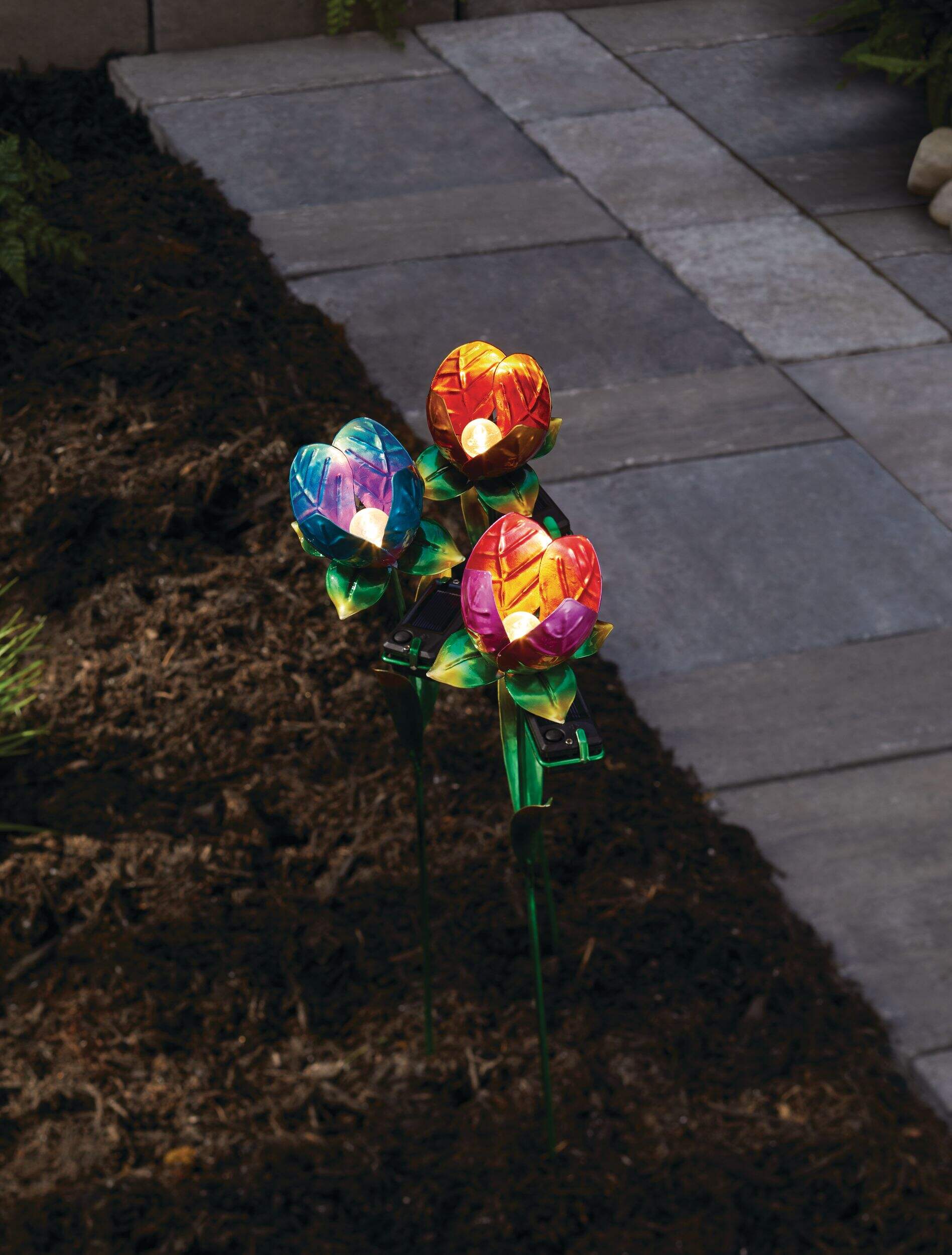 For Living Solar-Powered Tulip Stake Light features assorted painted metal tulips that add colour to your garden décor