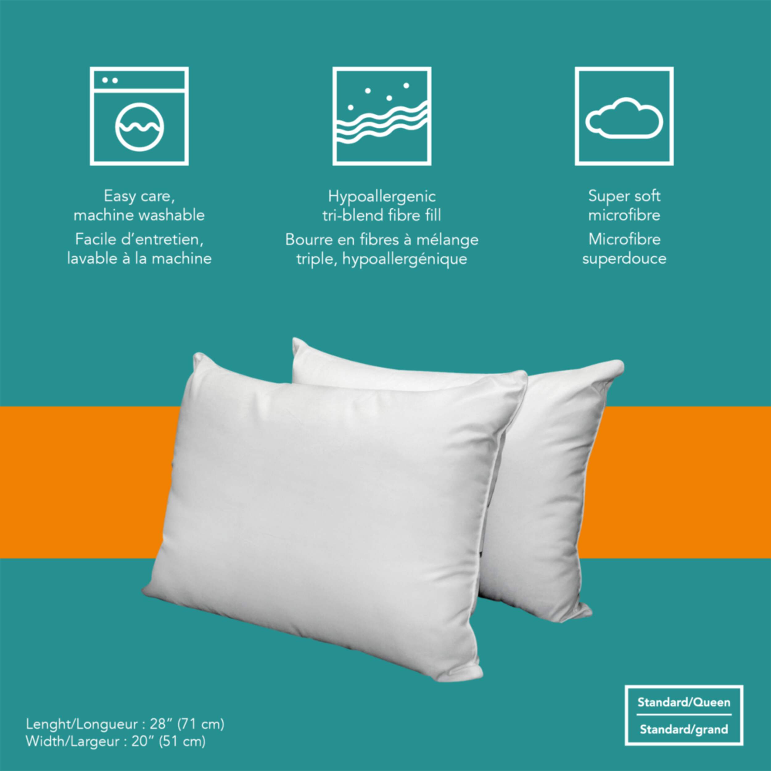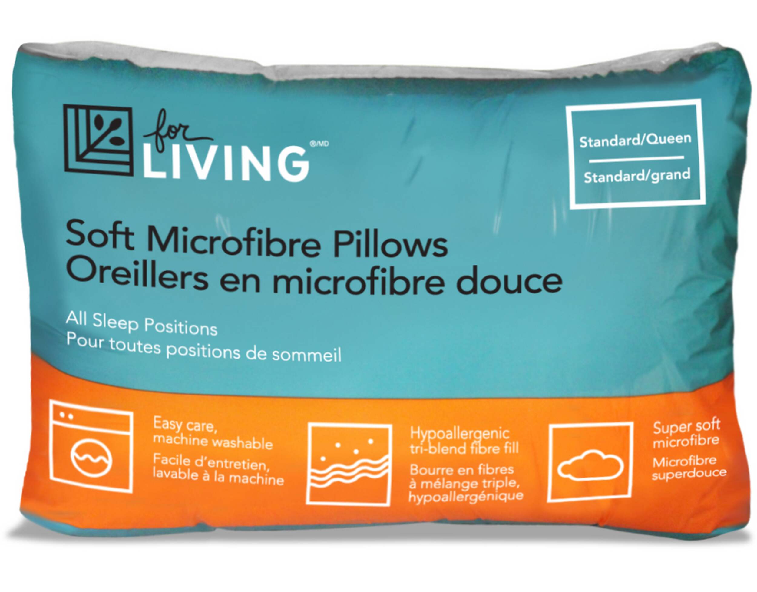 If you're tired of tossing and turning, sleep more soundly with the comfy head and neck support of these For Living Soft Microfibre Pillows. These hypoallergenic pillows offers a great night's rest in all sleeping positions. Built to conform to your body shape, these comfortable and versatile bed pillows are sized to fit any mattress. Available in a convenient pack of two, these pillows are a handy choice for couples, guestrooms, or people who like to sleep with more than one pillow.