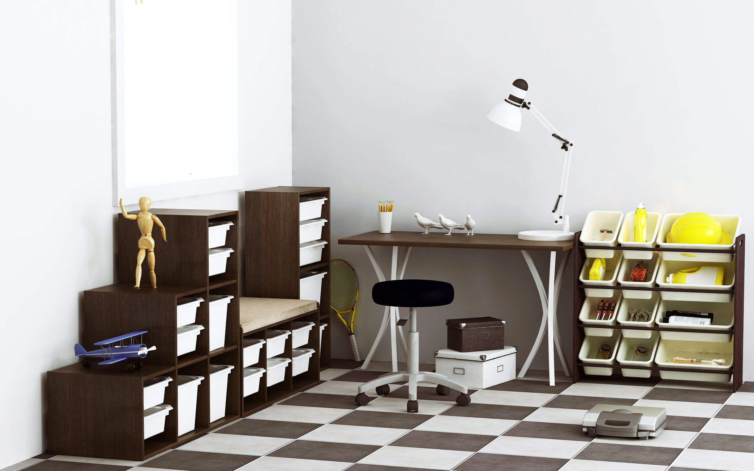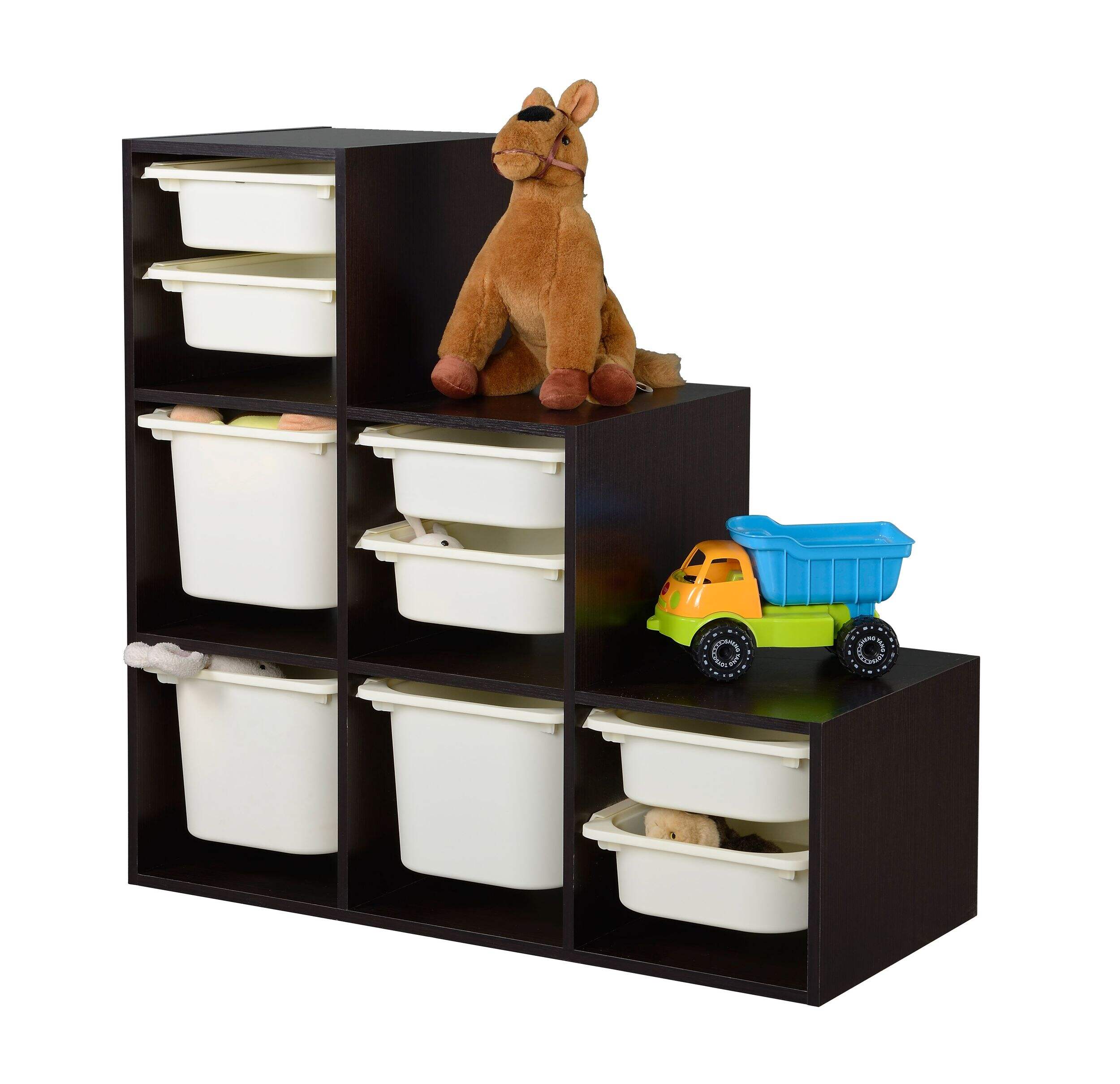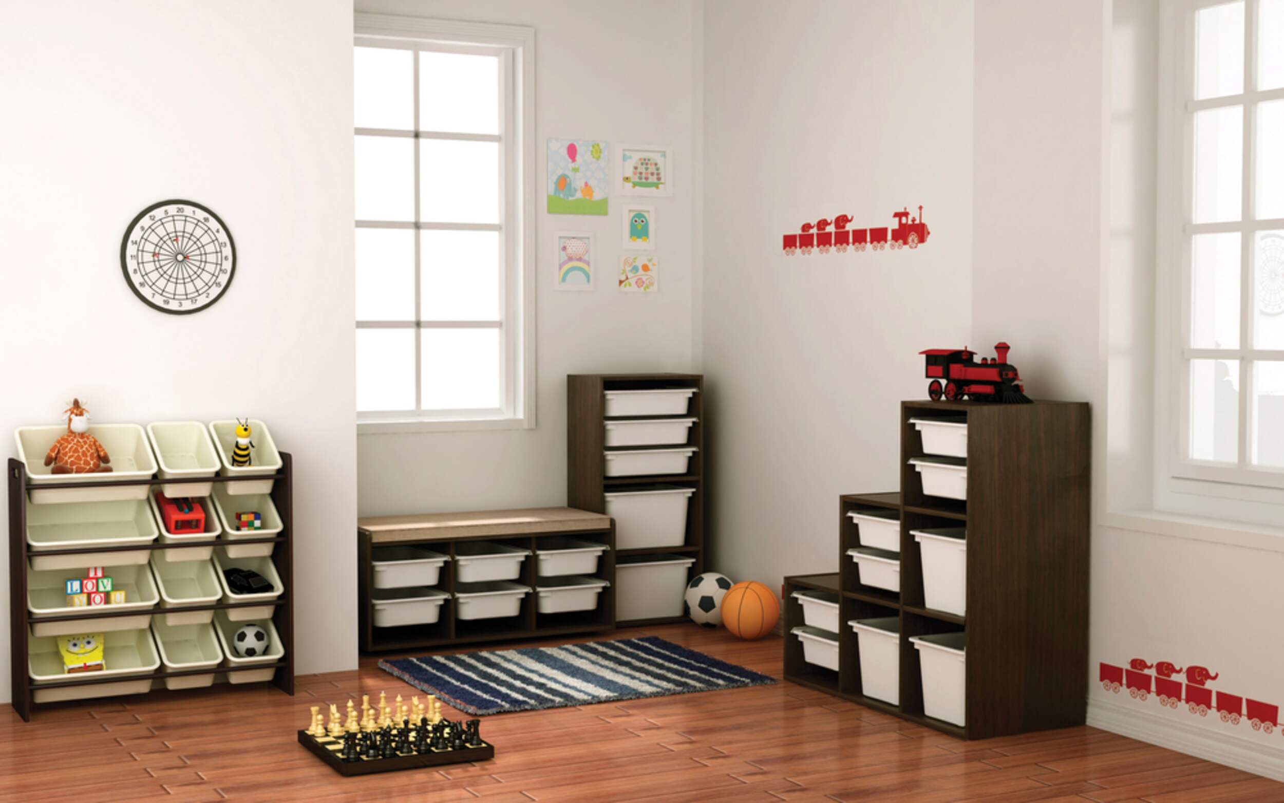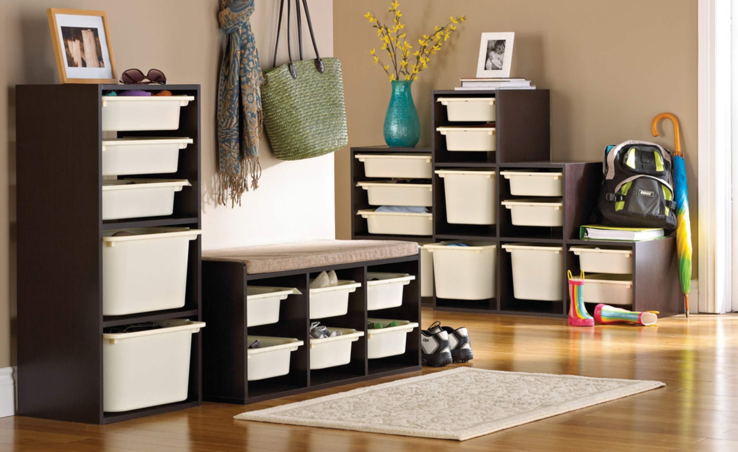 Tiered Bin Storage includes bins that can be removed and used as shelving