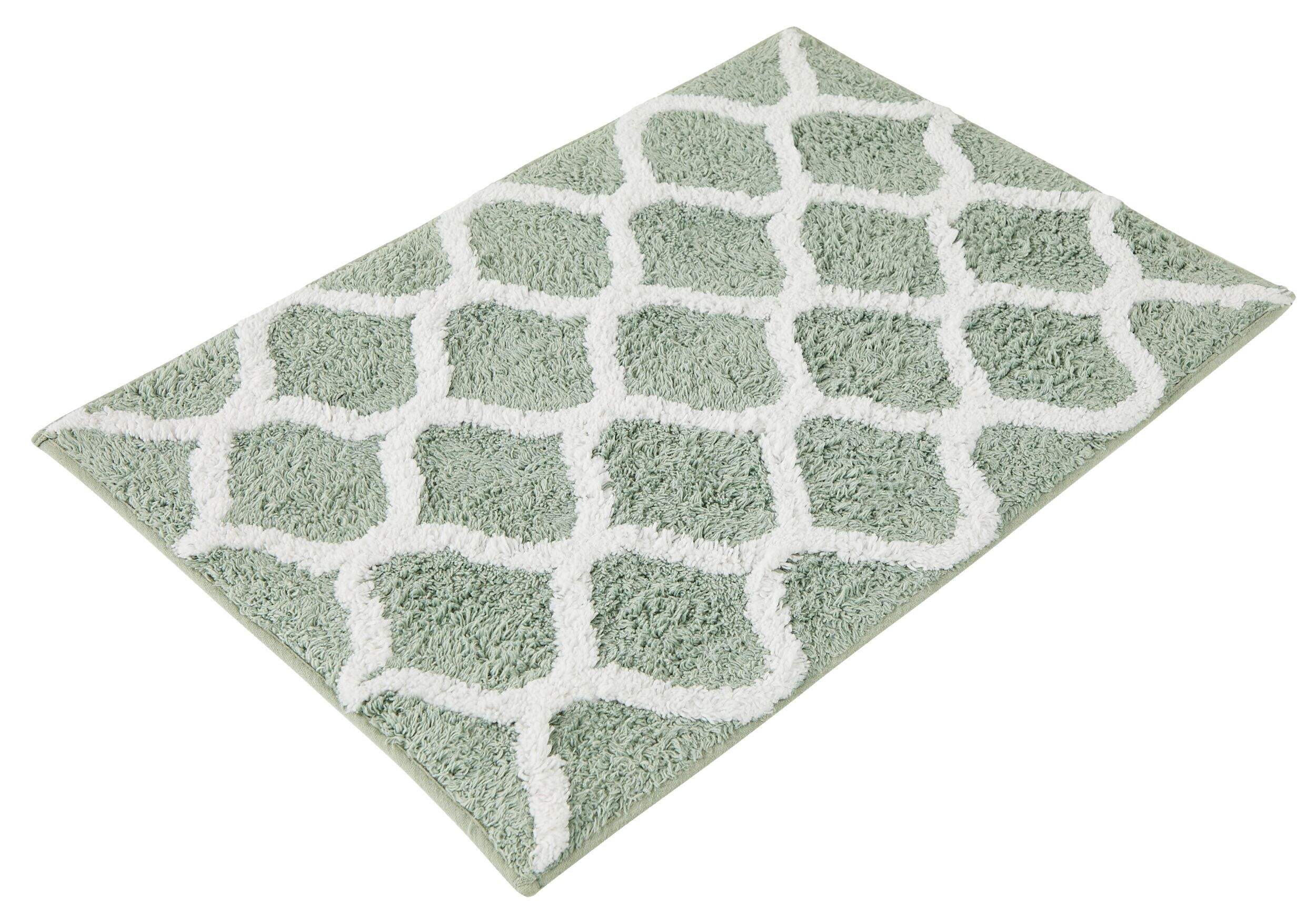 Enhance your bathroom decor with the For Living Tufted Bathroom Mat in Aqua. This stylish mat offers a soft and lightweight feel, making it a comfortable addition to your space. Its high water absorbency ensures your floors stay dry, while the non-slip backing keeps it securely in place.