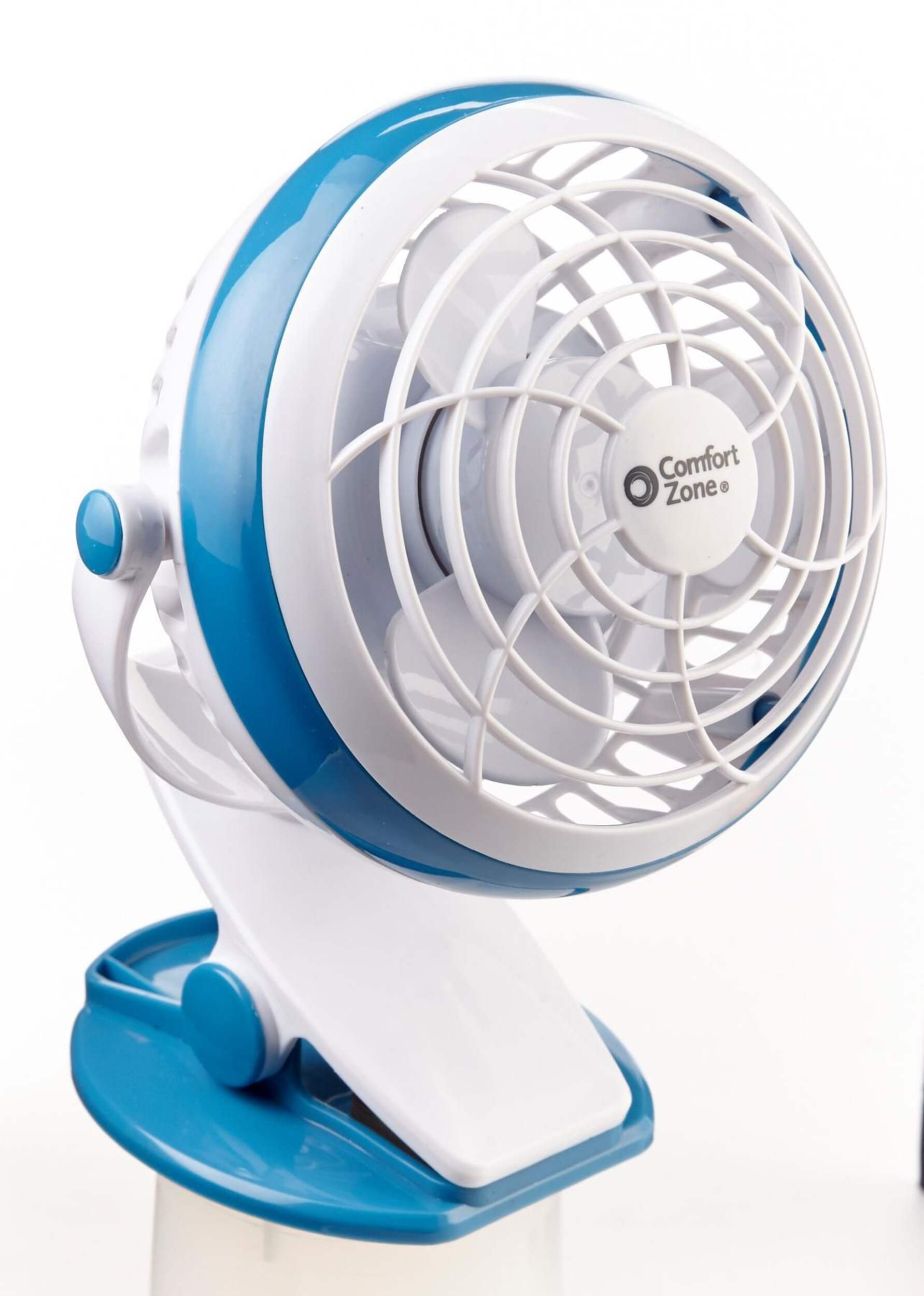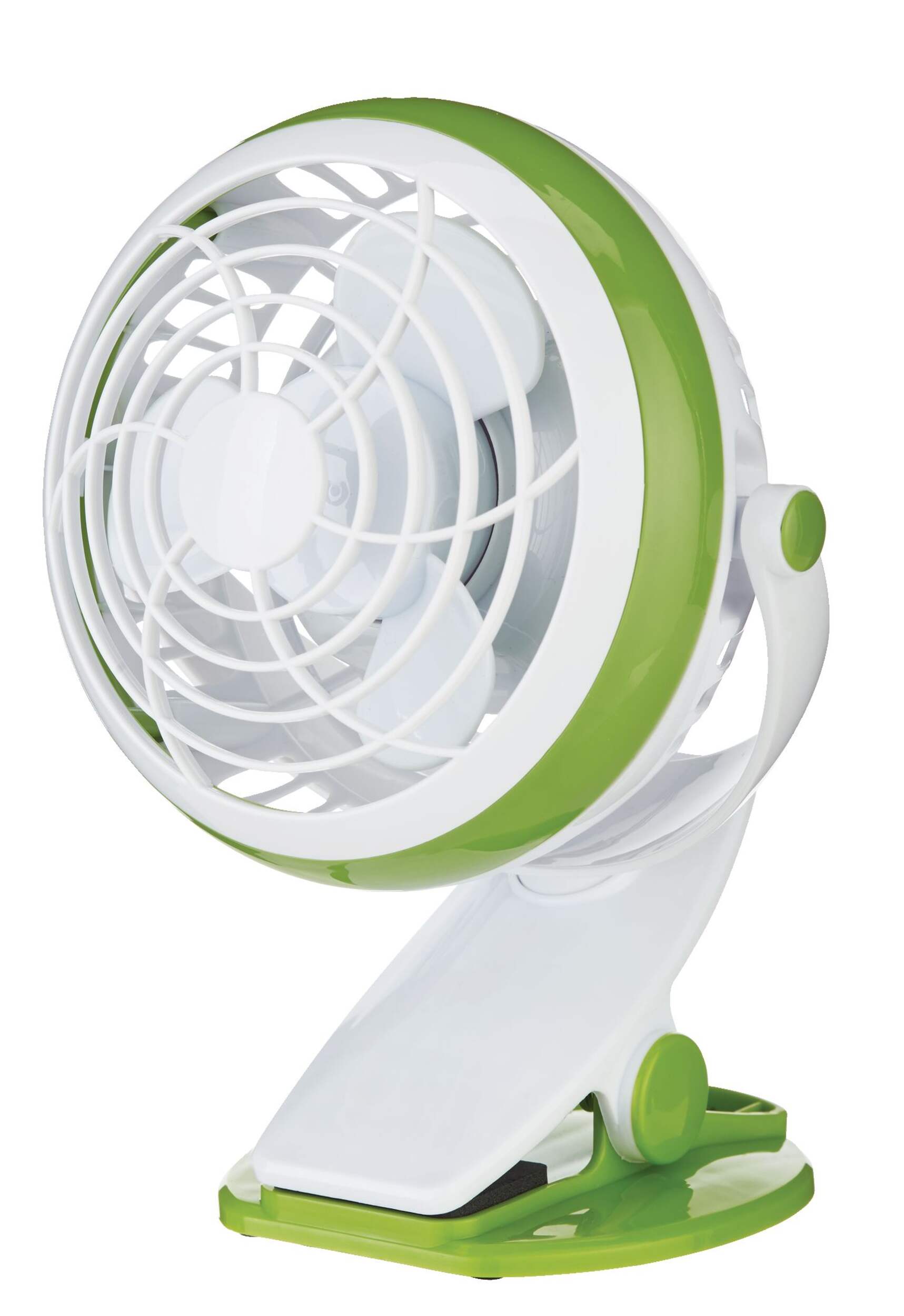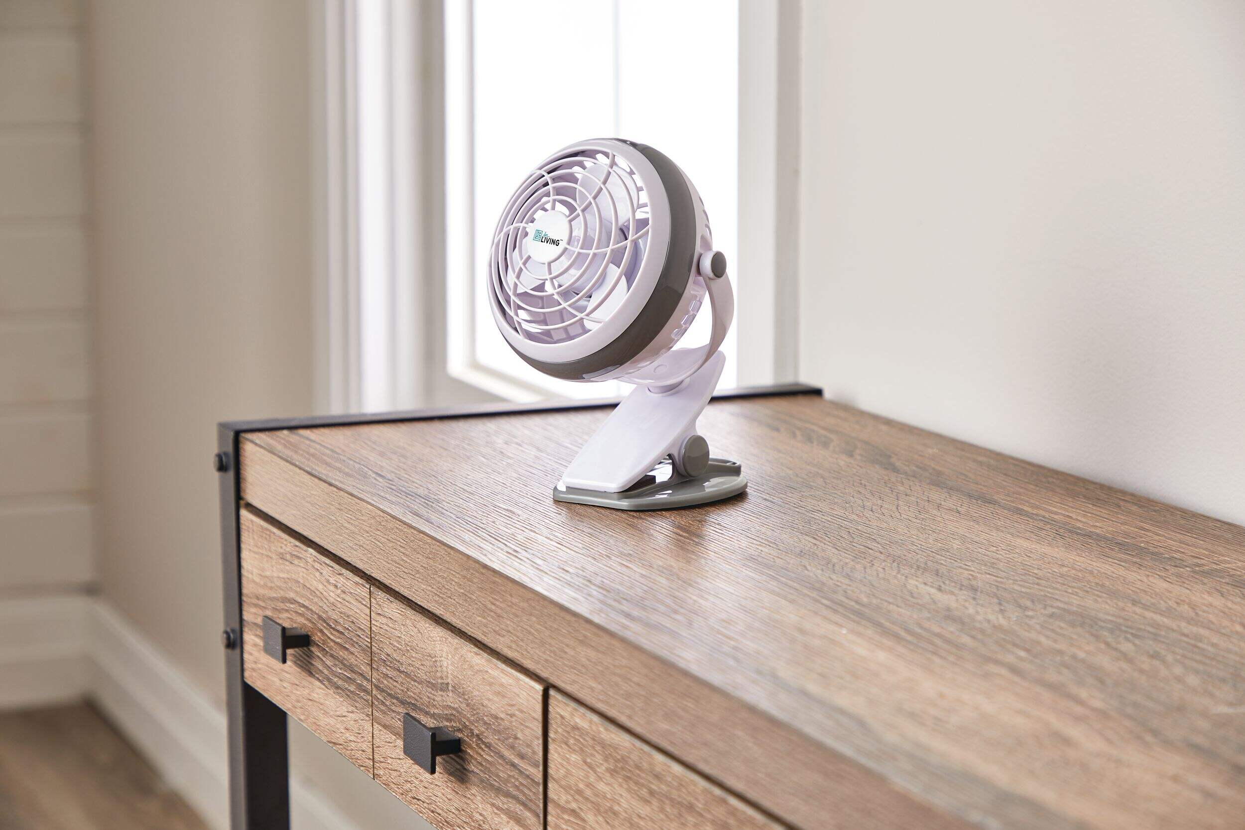 The personal-sized For Living USB & Battery Table/Desk Fan with Clip is designed to cool you down at your desk. This home desk fan adjusts 360ᵒ to direct airflow wherever you want it and features a two-way clip to firmly secure itself to tabletops.
