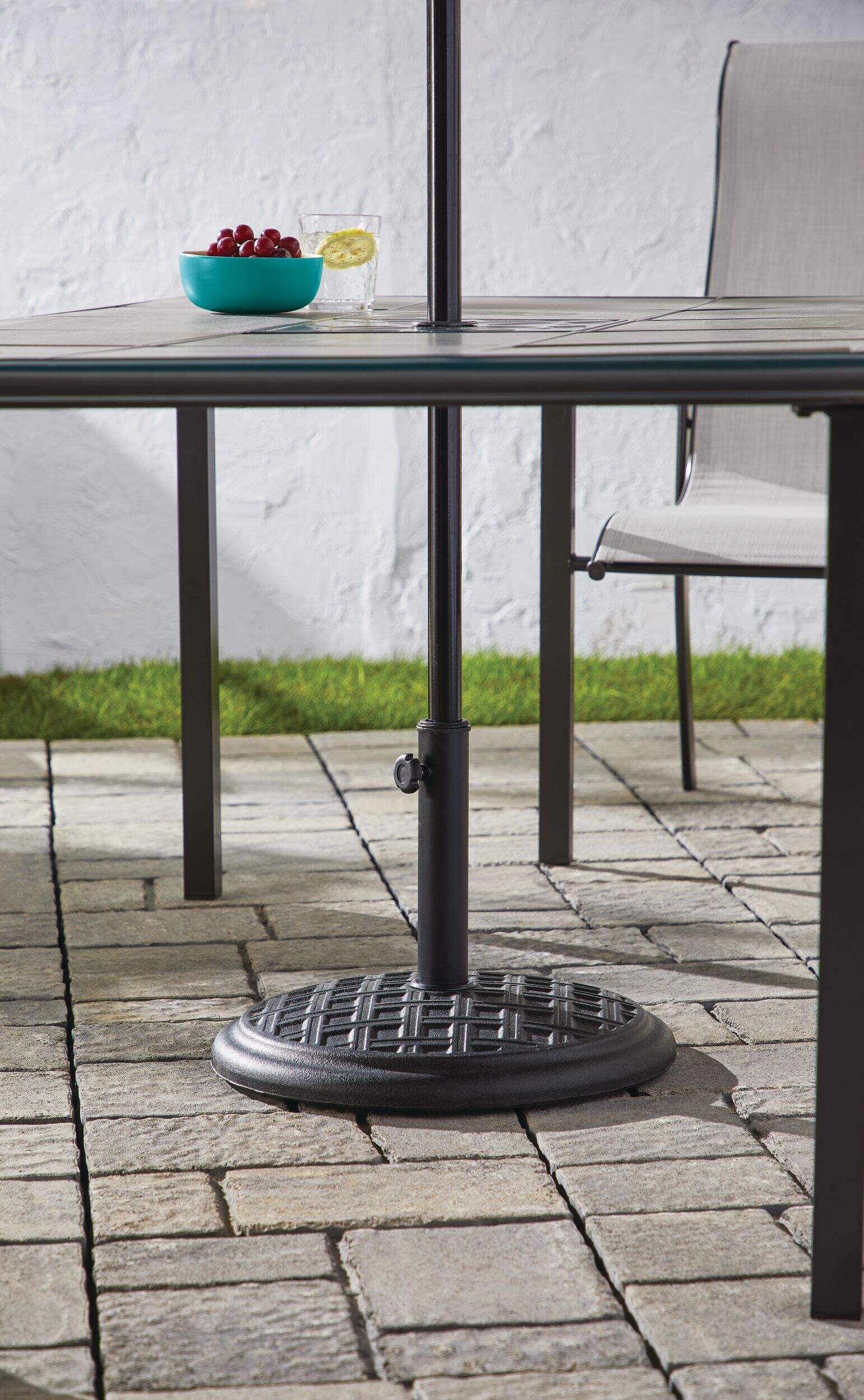 For use with patio table only (available separately), must be paired with patio umbrella and table with umbrella hole for required stability