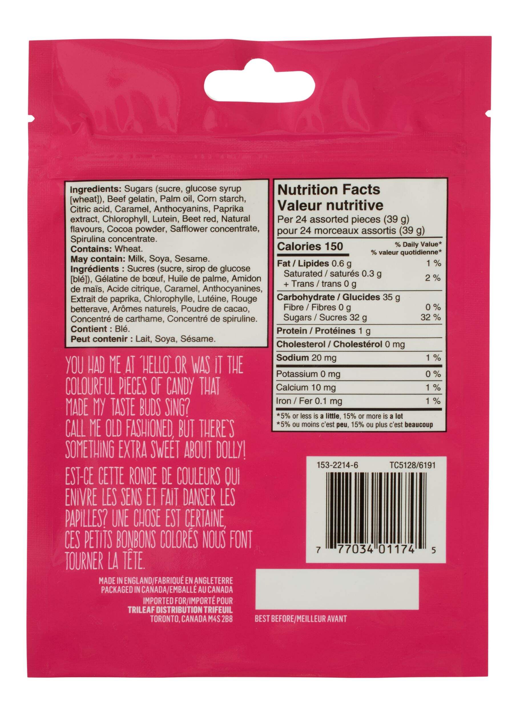 The FRANK All Natural Dolly Mix Jelly & Fondant Candy, 200-g, provides a cheery mix of retro-style candies in natural fruit flavours. With no artificial colours or flavours, you can feel good about indulging in this blend of jelly babies and fruit fondants. Take a step back in time as you unwrap these old-fashioned favourites to experience nostalgic childhood tastes in every bite.