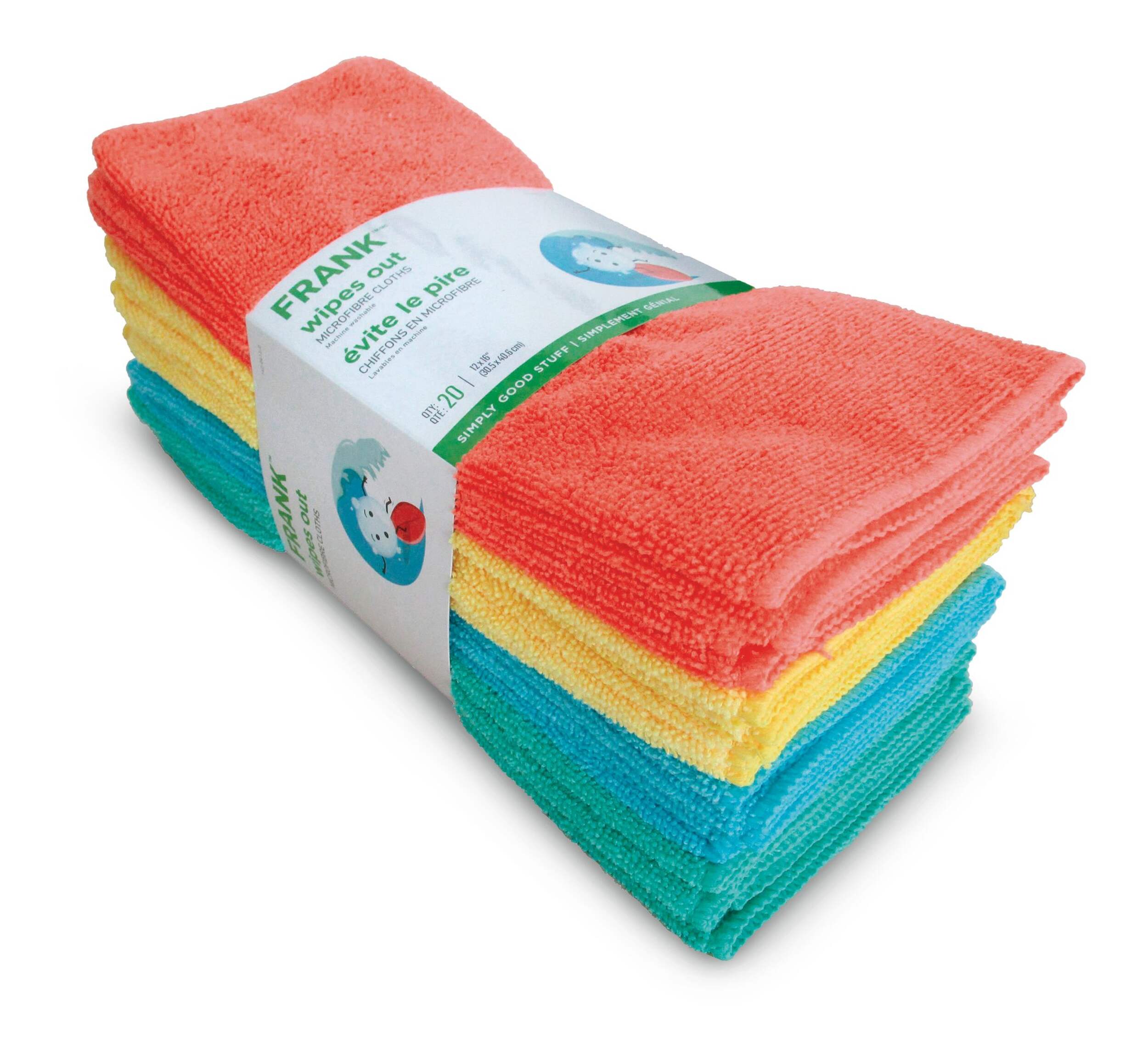 FRANK All-Purpose Machine Washable Microfibre Cloths, Assorted Colours, 20-pk