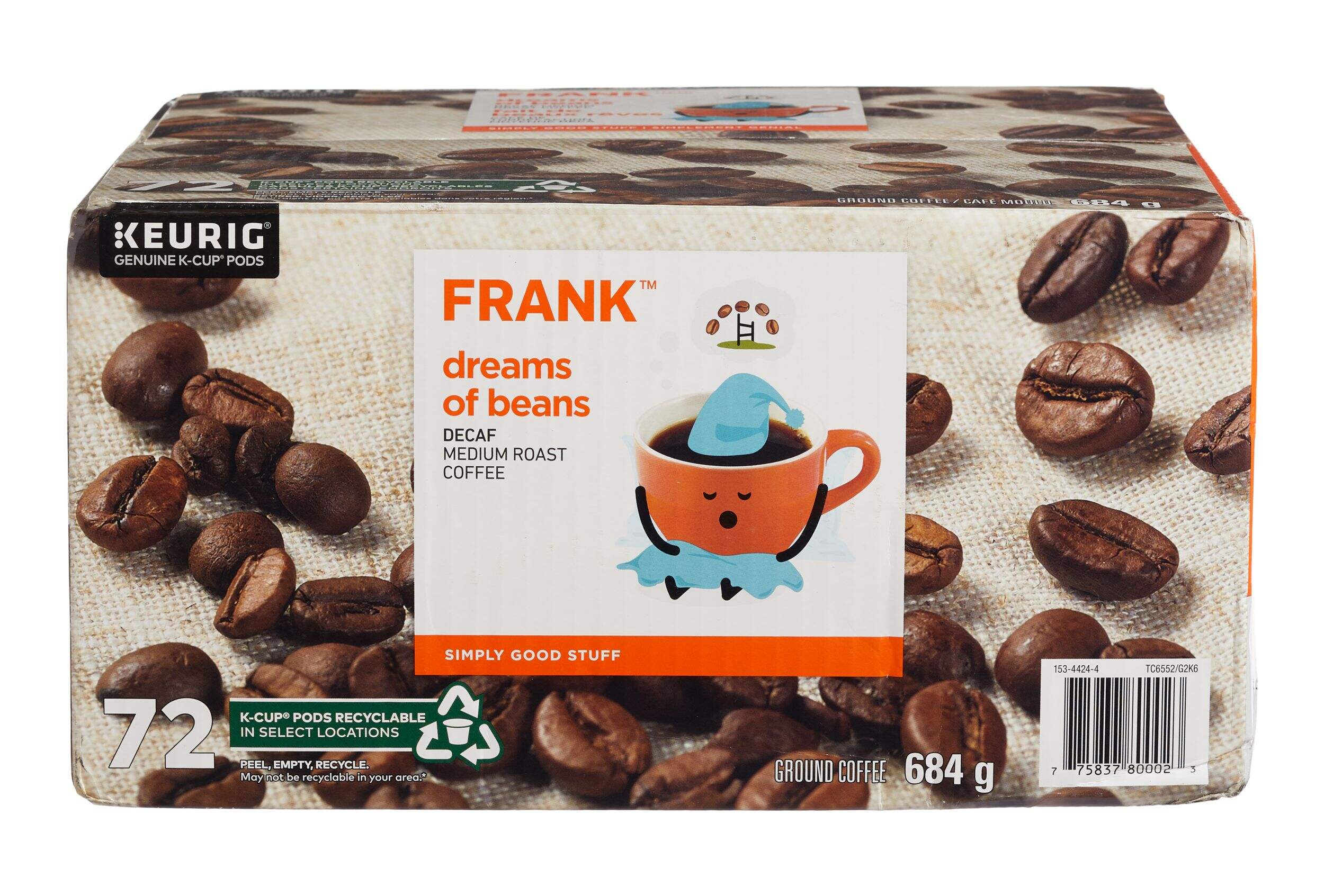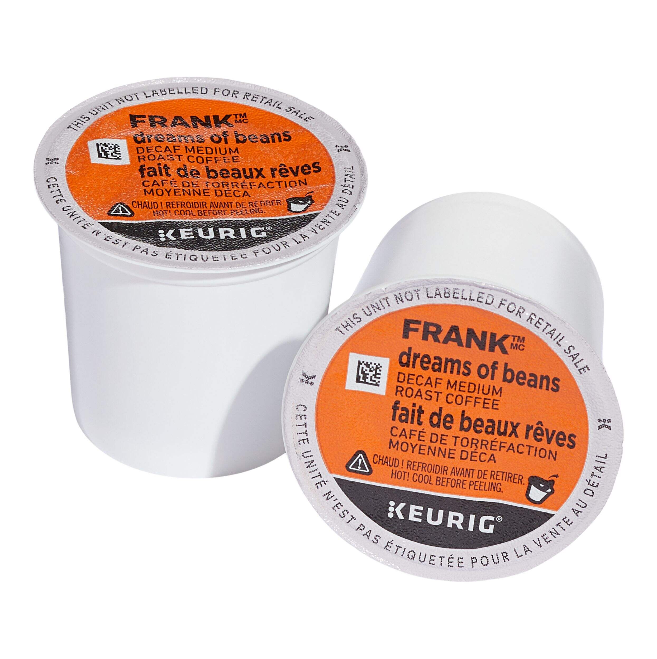 Enjoy a serene coffee experience with FRANK Dreams of Beans Decaf Medium Roast K-Cup® Coffee Pods. Specially crafted for coffee drinkers who appreciate a fine cup without the caffeine, these pods provide a delectable, flavourful cup of coffee and a perfect start to your day. Made with 100% Arabica beans and decaffeinated so you can enjoy a cup anytime without the extra stimulation of caffeine. Whether it's part of your morning start or a late-night indulgence, these pods are a welcome addition to your home or office pantry.