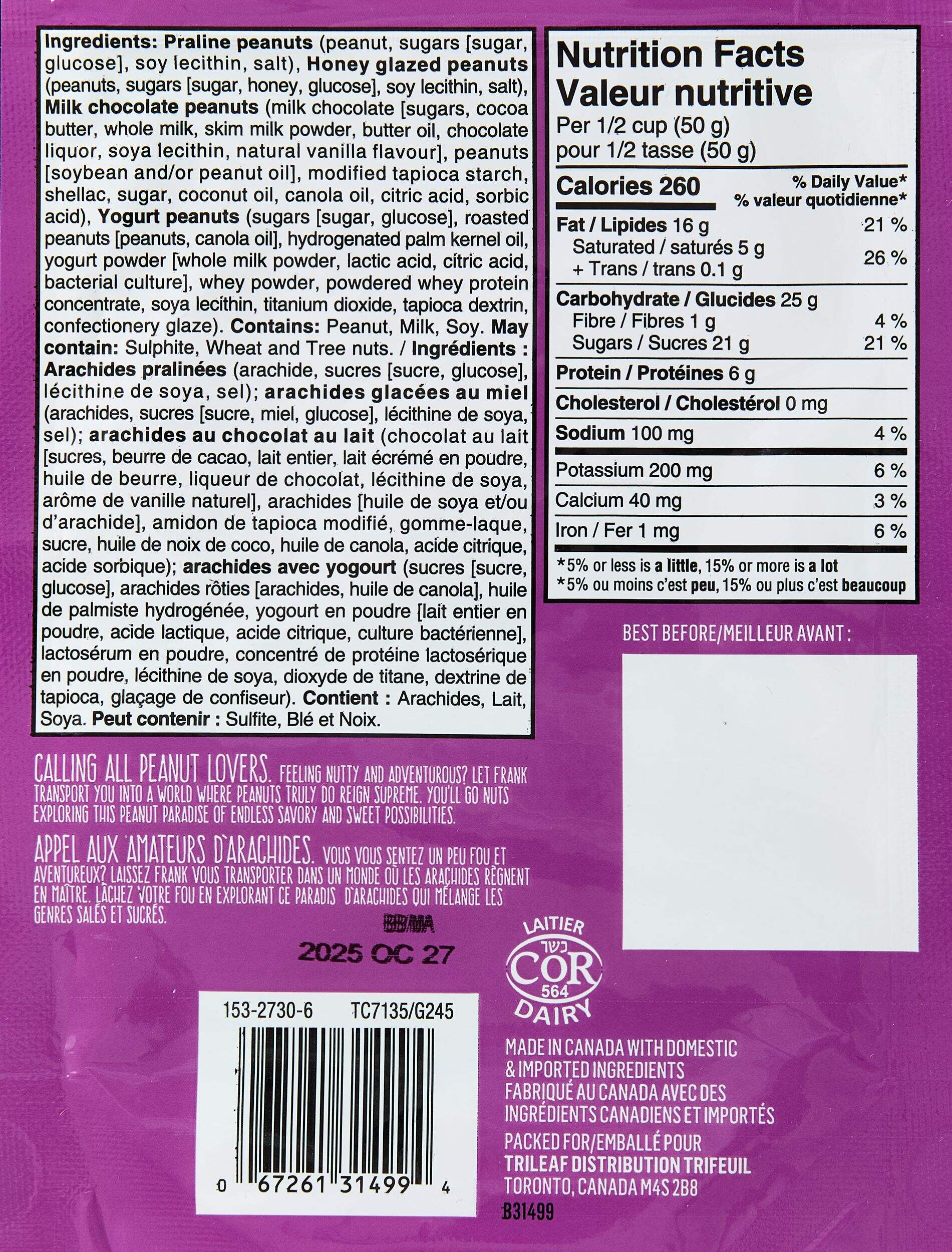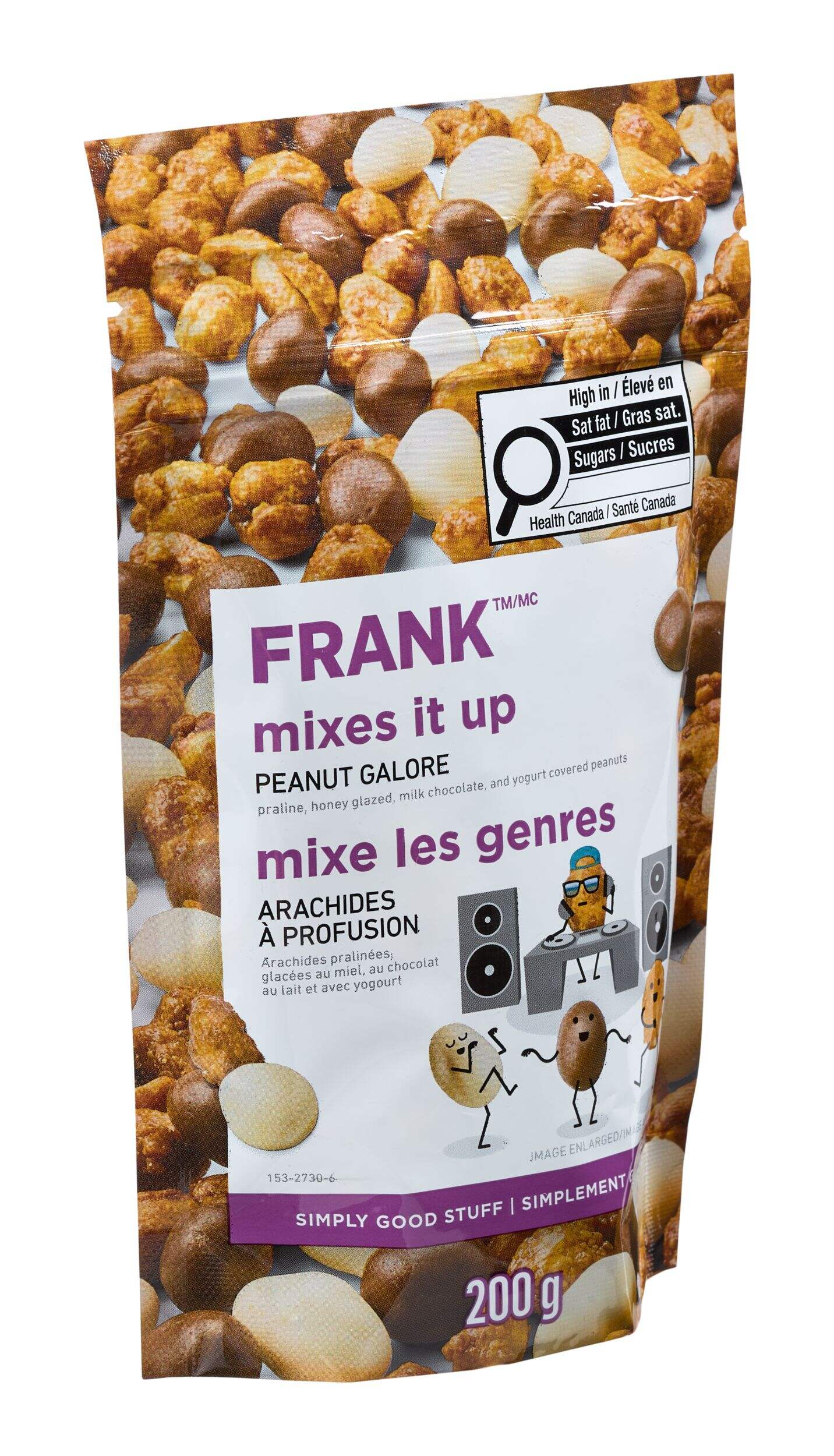Indulge in the delightful FRANK Mixes It Up Peanut Galore Snack Mix. This tasty blend features peanuts covered in sugar, chocolate and yogurt, making it a perfect snack treat for any occasion. Ideal for sharing or enjoying on-the-go, this snack mix is a must-have for your next adventure.