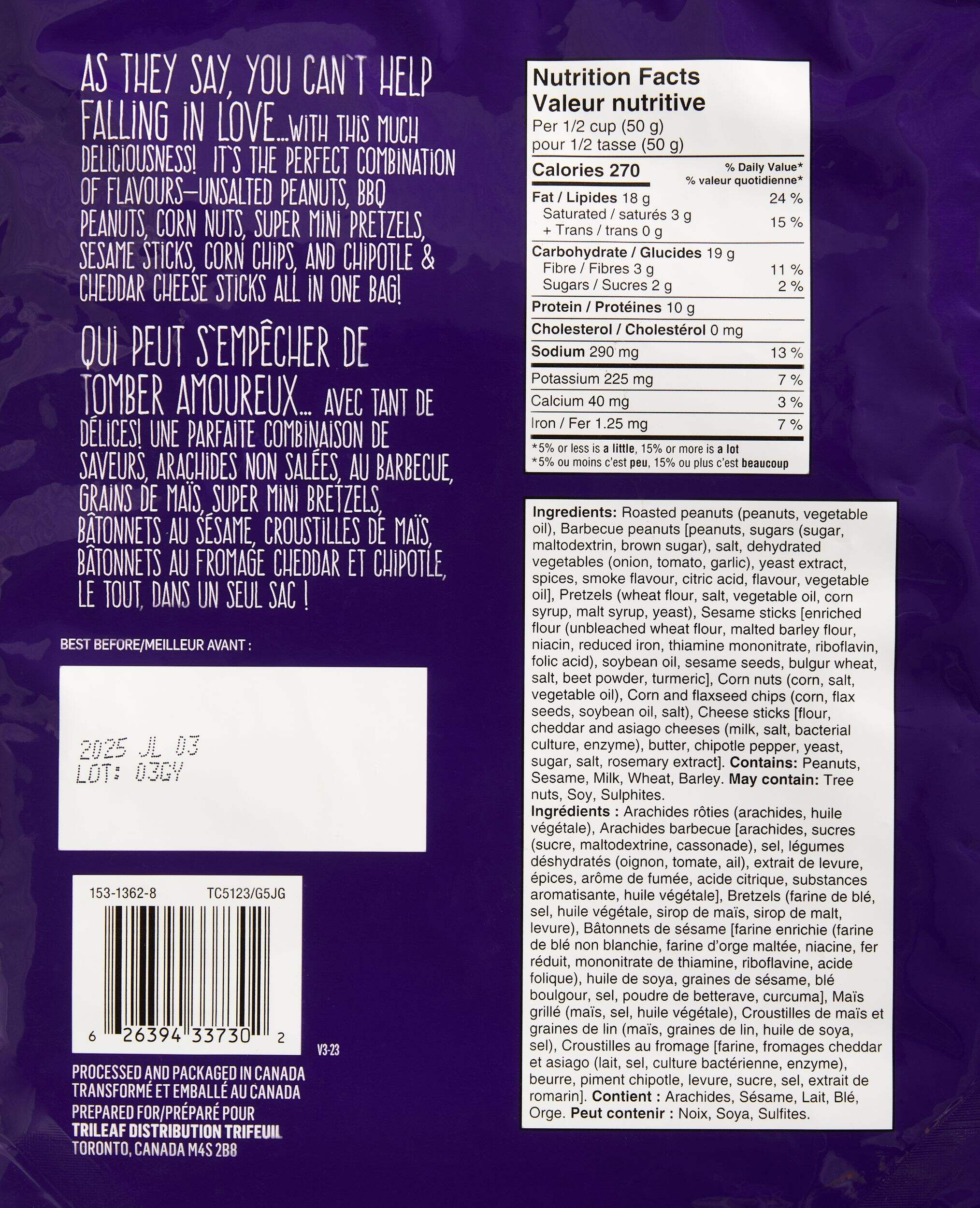 The FRANK Nibbling Snack Mix, 550-g, is the perfect grab 'n' go treat for anyone looking for a variety of flavours in one convenient, resealable bag. With ingredients like corn chips, pretzels, and mini rice cakes, this 550-gram mix of tasty snacks ensures you'll never be at a loss for something to nibble on while watching TV or catching up with friends. Whether you want a salty or savoury crunch, this FRANK mix has you covered. Just open the bag and dig in - no need for a bowl!