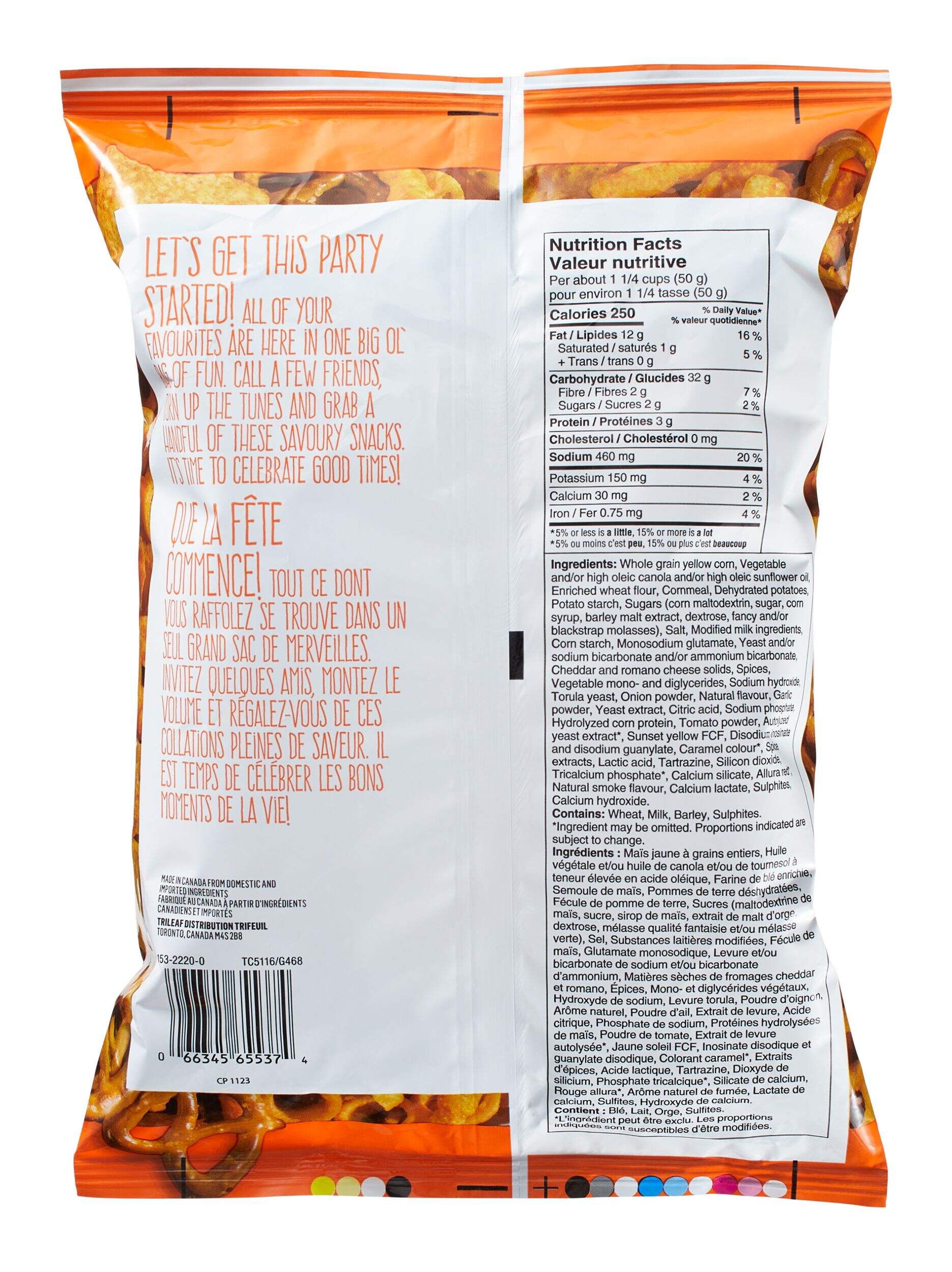 The FRANK Party Mix Snack, 250-g, is a crisp assortment of crowd-pleasing nibbles perfect for movie nights, game days, or any time you need a tasty snack. The mix contains tortilla chips, pretzels, corn chips, and cheesy crackers satisfying enough to share with friends or sneak a handful when no one's looking. Whether you're hosting a party or needing a little pick-me-up between meals, this snack mix offers a crunchy assortment sure to hit the spot.