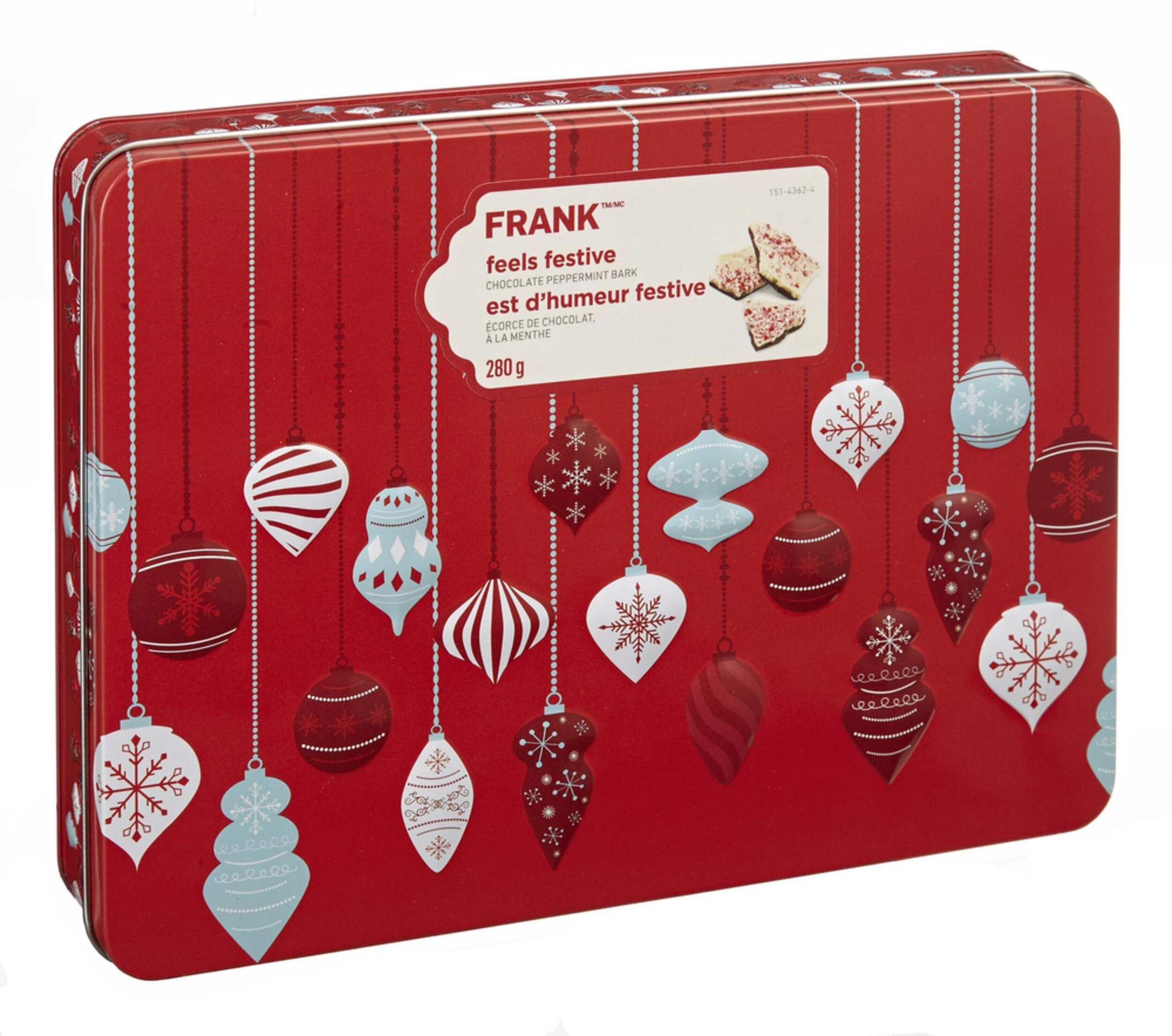 Treat your holiday guests this season with the FRANK Peppermint Bark Tin