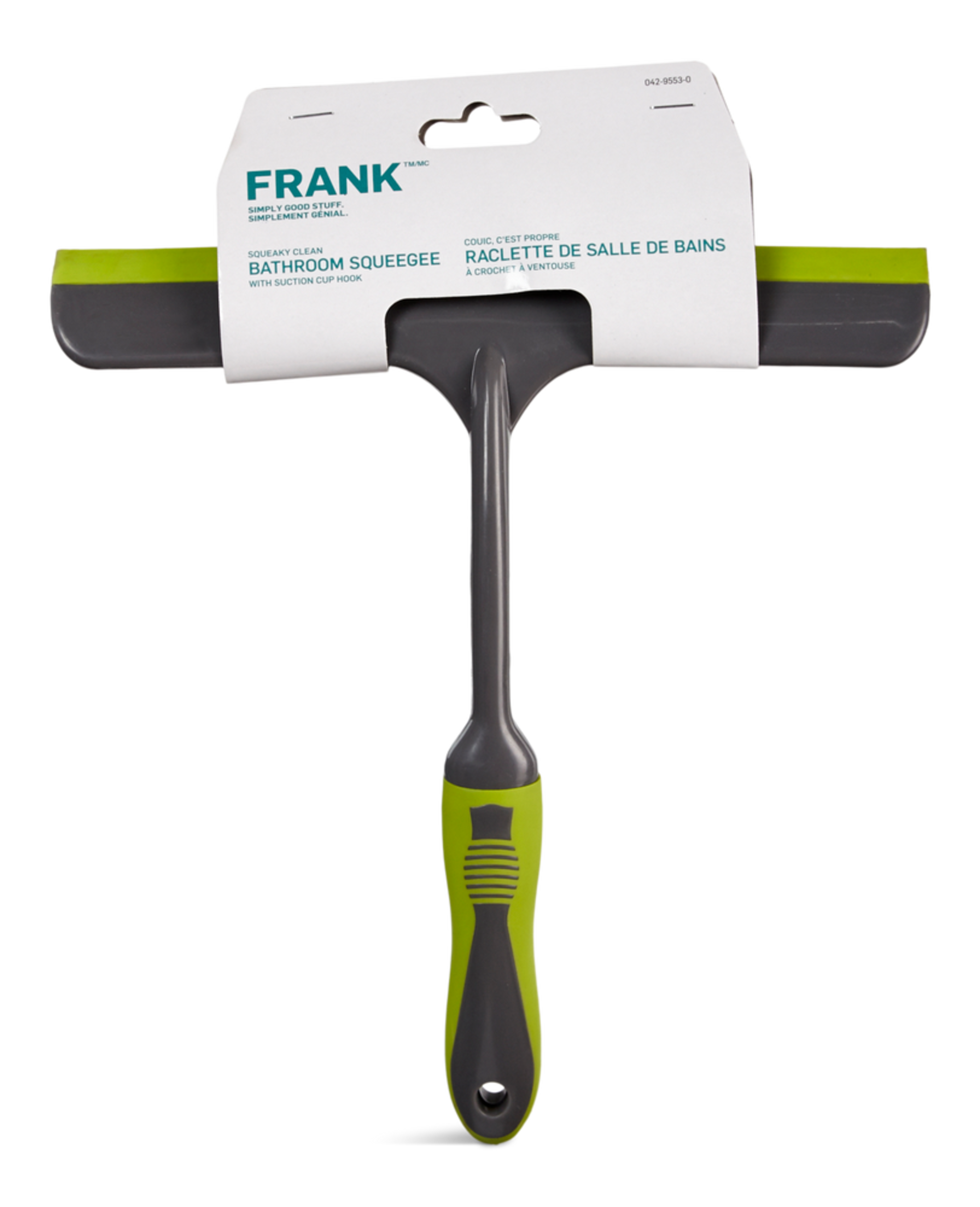 The FRANK Short Handle Bathroom Squeeze with Hook is a must-have for every household. This squeegee comes with a suction cup hook and features a flexible rubber edge that cleans windows, mirrors, glass, tiles or any other flat, hard surface, leaving a streak-free shine.