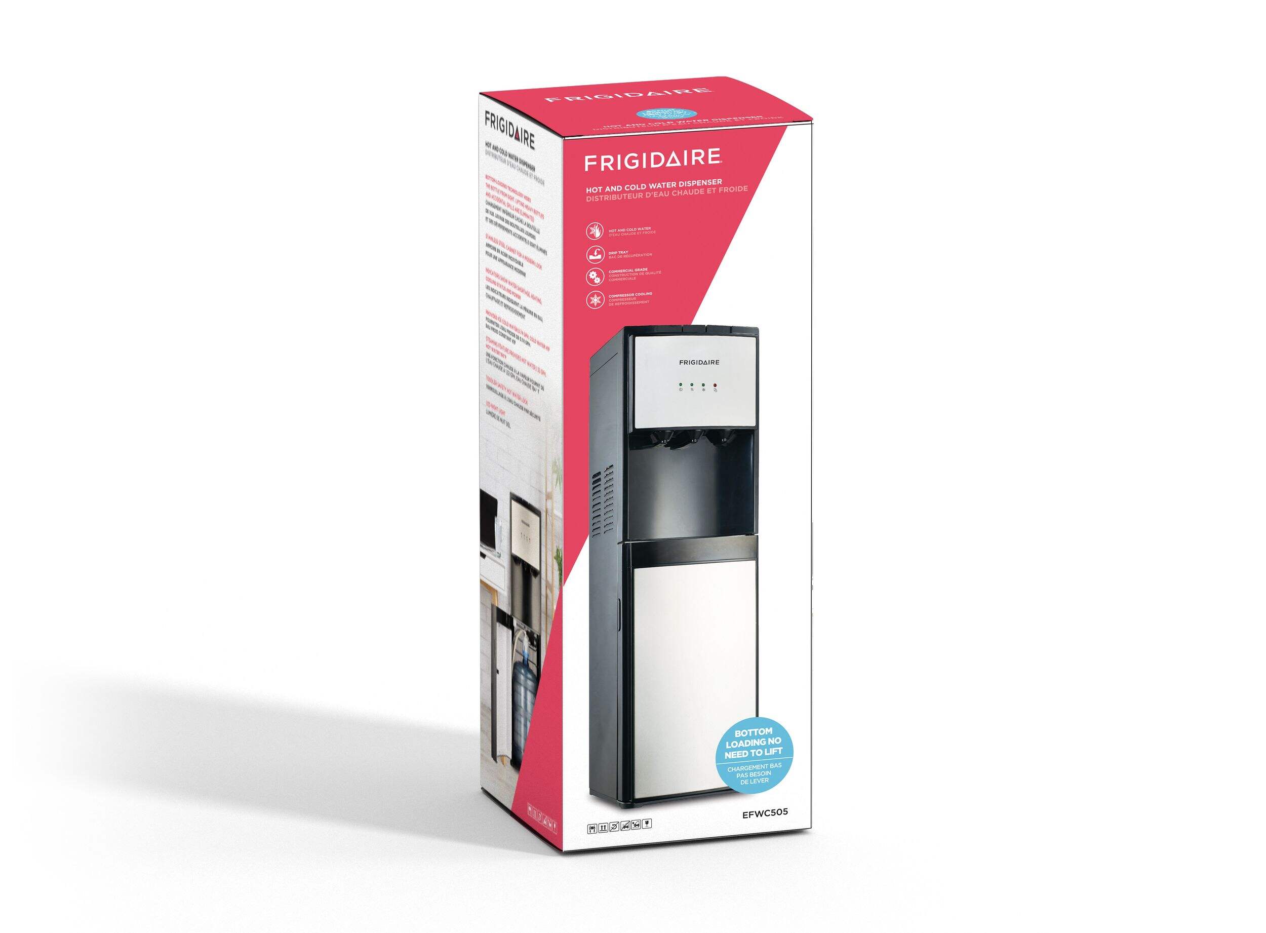 The Frigidaire Bottom Load Hot & Cold Water Dispenser provides 550W and 80W of heating and cooling power respectively. This dispenser can chill water from 6-degrees Celsius to 10-degrees Celsius, and heat water from 88-degrees Celsius to 95-degrees Celsius. Available in a modern stainless steel finish to match any home.