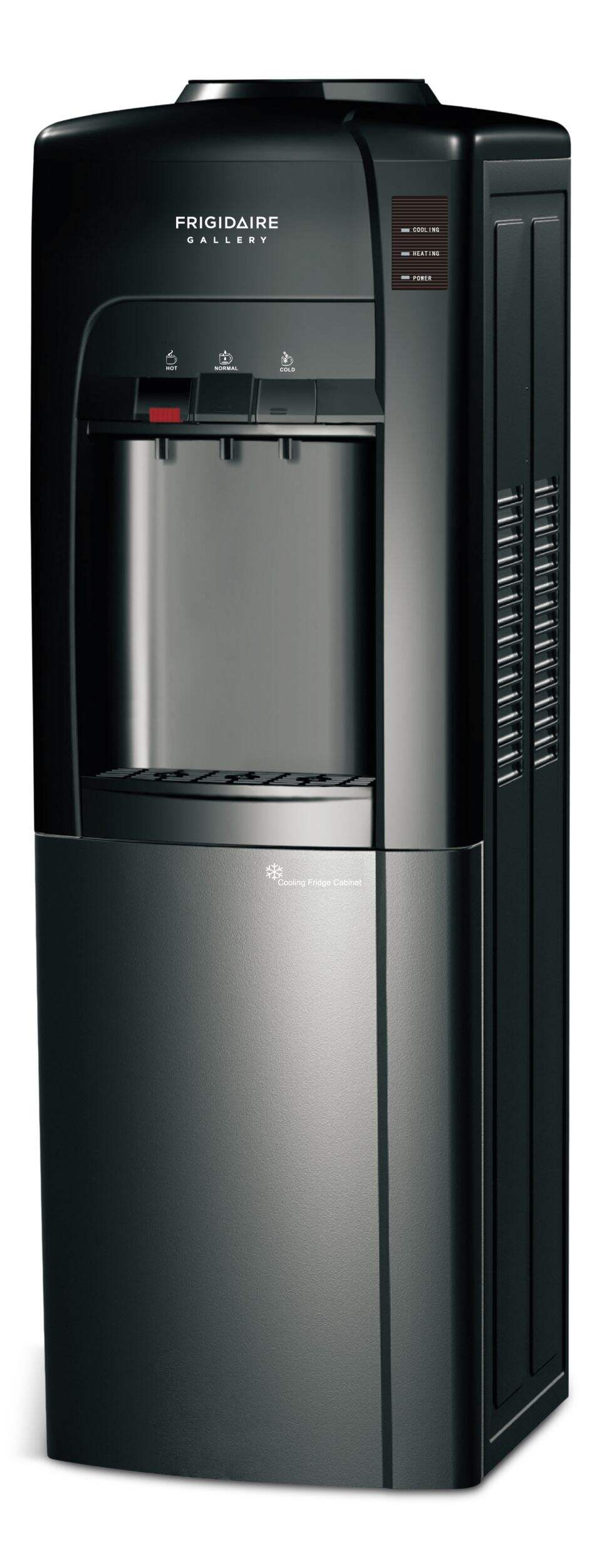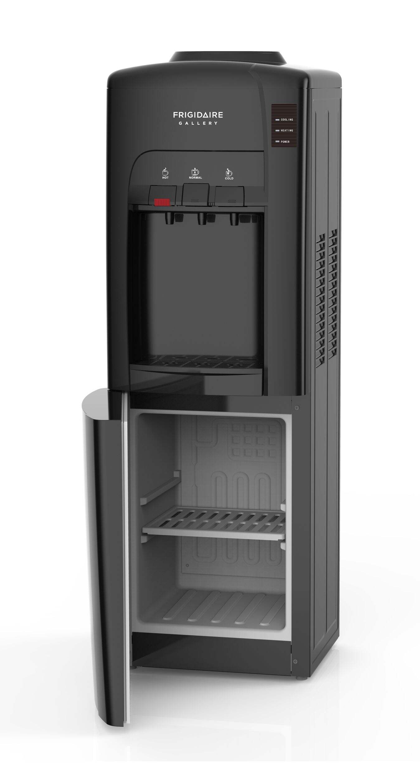 The Frigidaire Top Load Water Dispenser with Built-in Cooler offers a convenient hydration solution. Compatible with standard 3 and 5-gallon water bottles, this top load water dispenser ensures easy refilling. The integrated beverage cooler compartment provides additional storage for beverages and snacks, making it a versatile addition to any space.