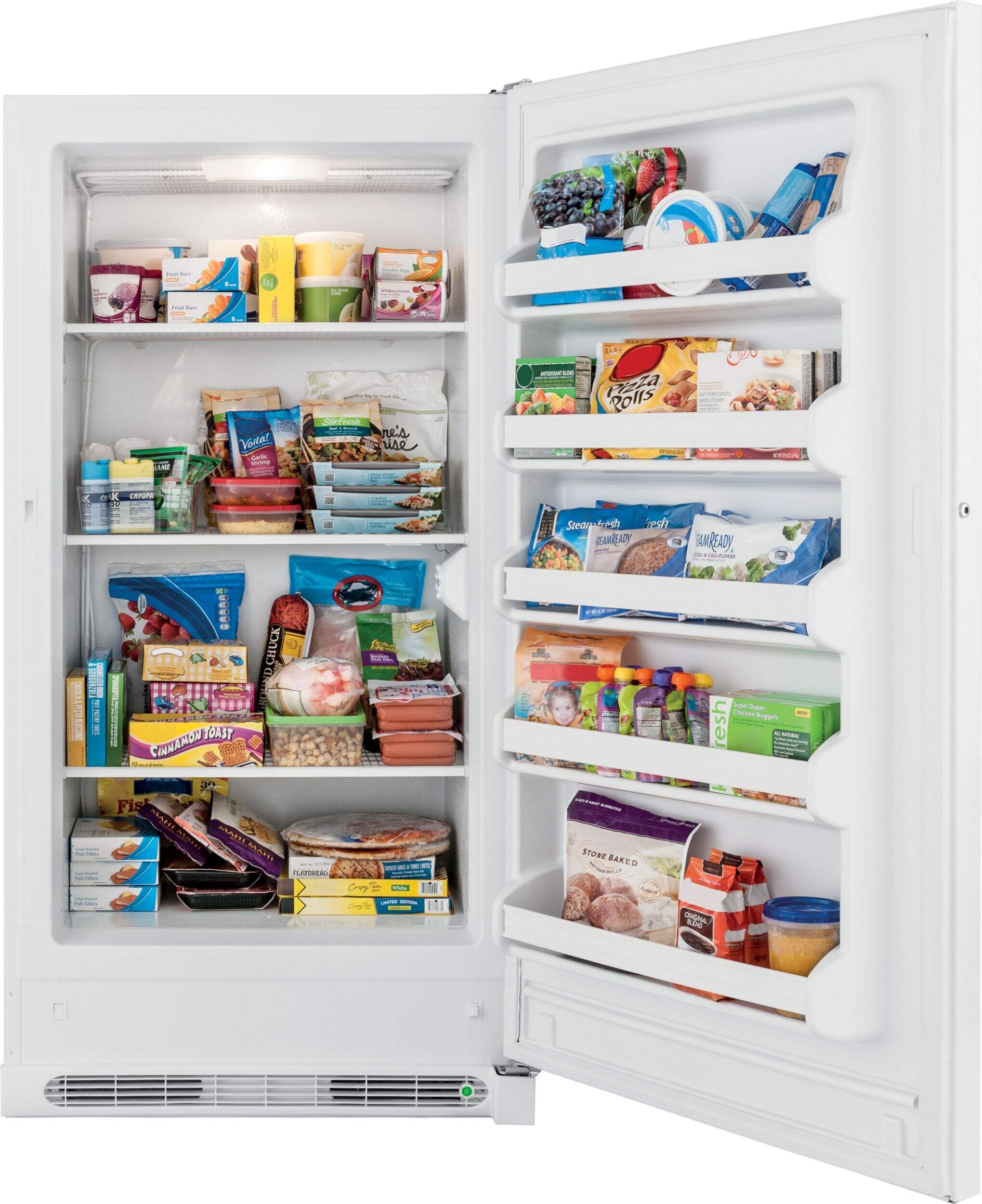 This Frigidaire upright freezer brings dependability to your frozen favourites with its superior tight seal and EvenTemp Cooling System. The tight seal locks in cold air, keeping food frozen for up to two days during a power outage. The EvenTemp system circulates cold air throughout the interior using smart sensing technology that adjusts air flow to maintain a uniform temperature.The flexible organization inside enables easy access to your favourite frozen items with four adjustable wire shelves, a deep bottom basket and five spacious door bins.