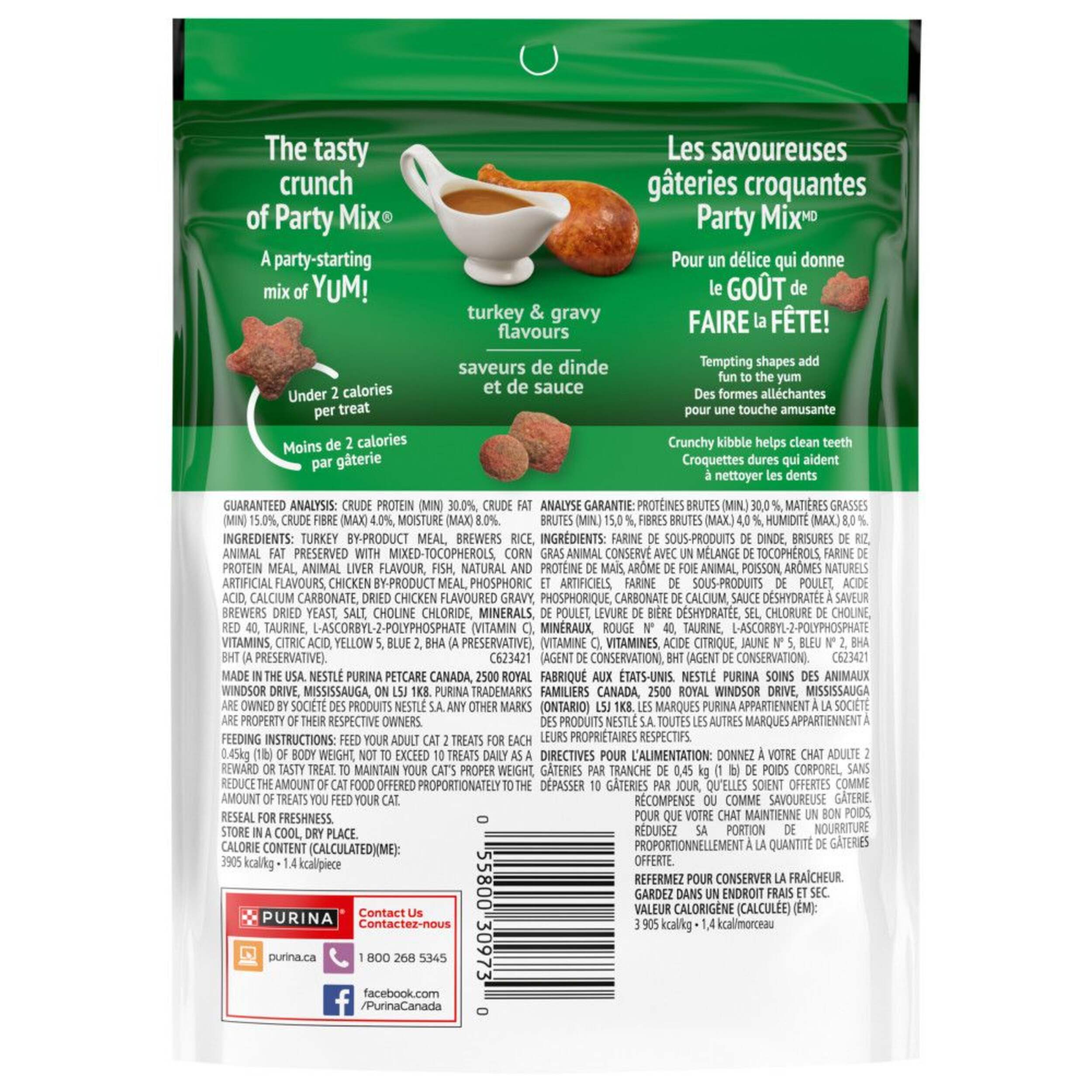 The Friskies Party Mix Crunch Turkey and Gravy Dry Cat Treats feeds your cat's poultry cravings