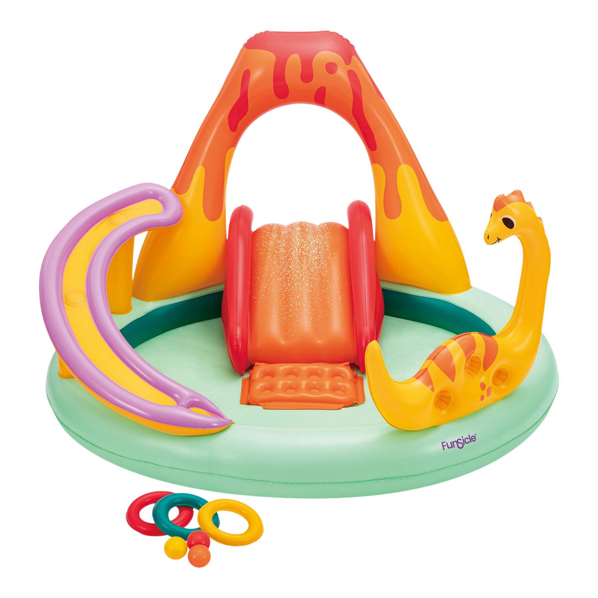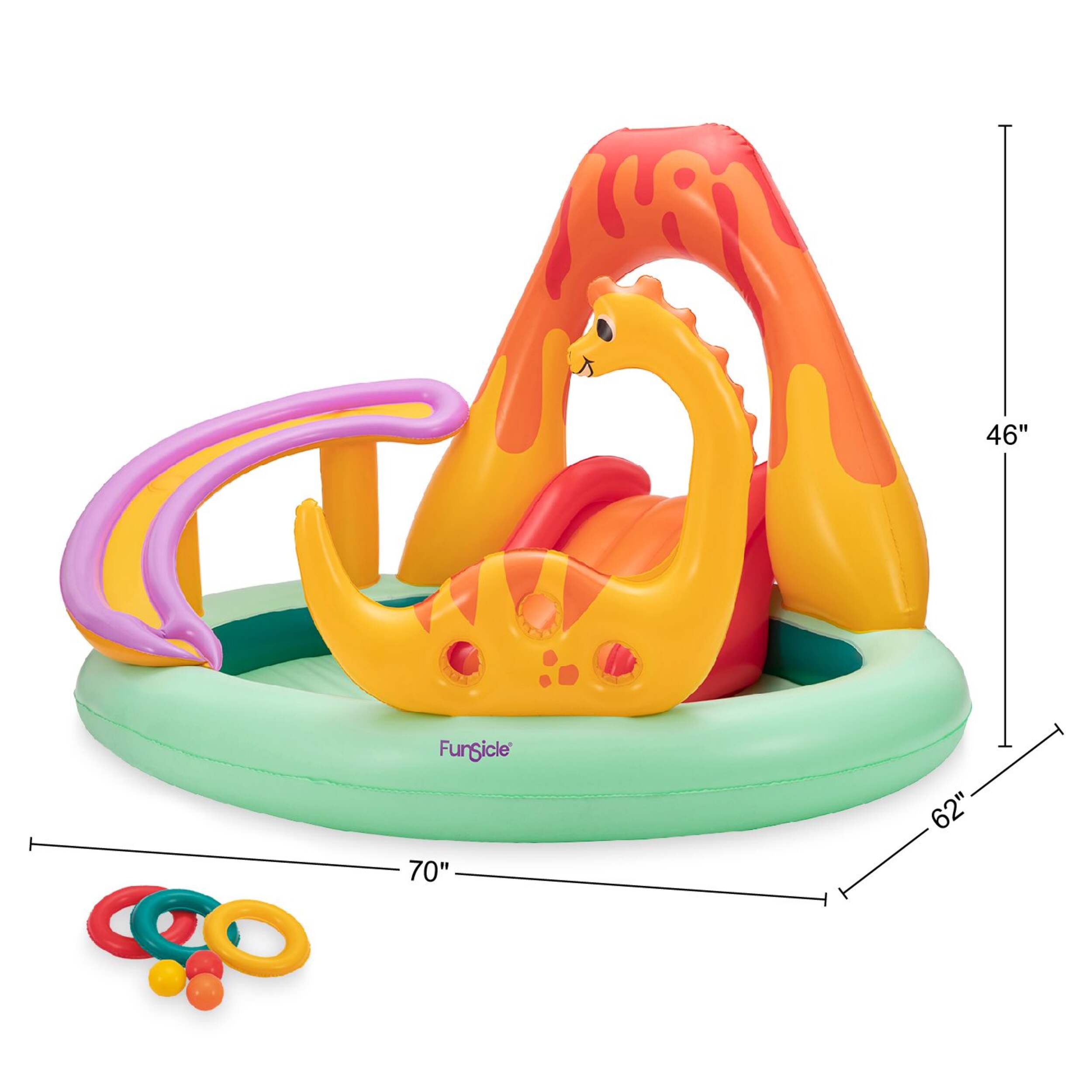 Bring prehistoric fun to your backyard with the Funsicle Volcanic Valley Playcentre. Thanks to maximum leak protection, this playcentre encourages hours of dino-themed adventures. Interactive challenges like ring toss and ball sorting build focus and motor skills. The playcentre’s compact size allows it to inflate in minutes and create a wild wonderland for little ones' imaginations to inhabit.