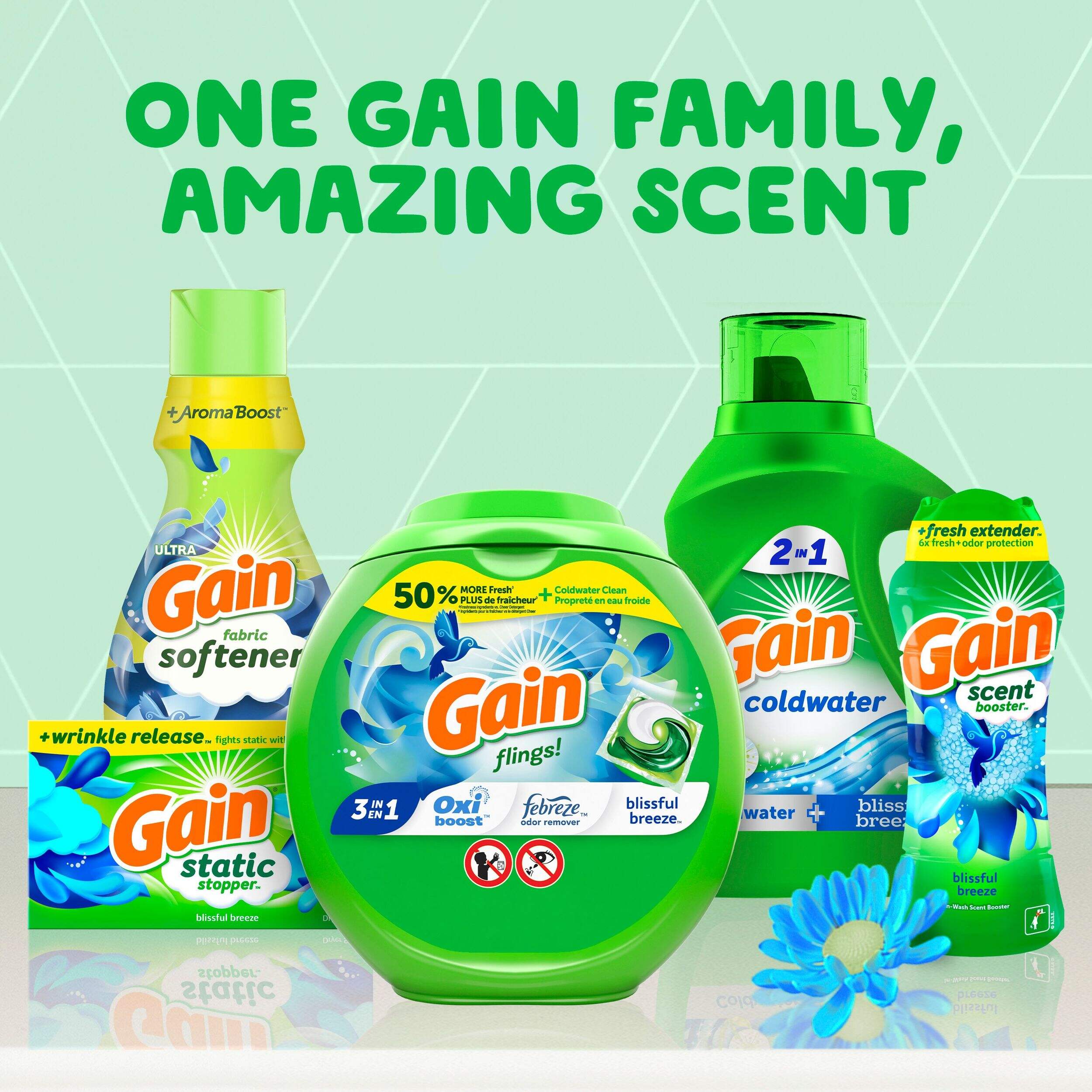The light, delightful scent of Gain Blissful Breeze Liquid Laundry Detergent will make your nose feel fresh. A single sniff of the delightful Blissful Breeze scent conjures feelings of dancing on a breeze-kissed hillside – while dandelions tickle your face under bright Summer sunshine. Equipped with the odour-removal properties of Febreze, this liquid laundry detergent provides you with excellent results wash after wash.