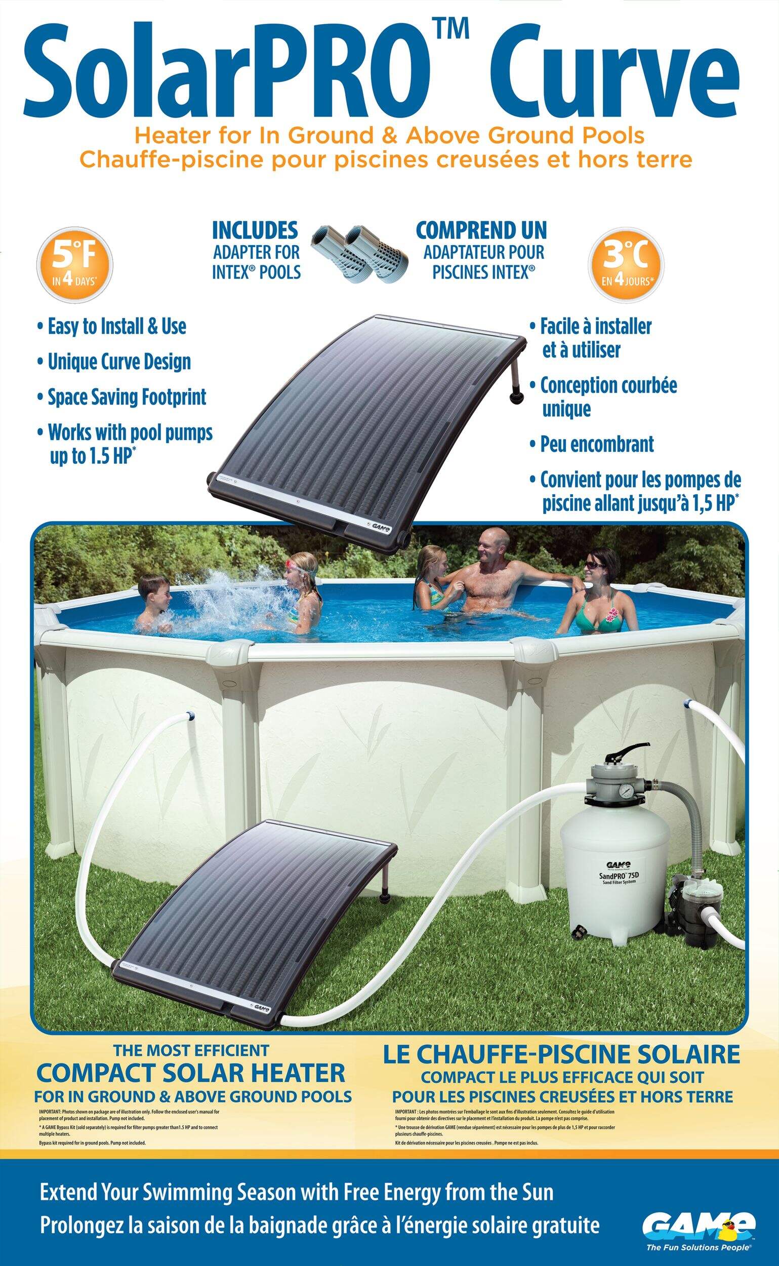 Extend your pool season with the GAME SolarPRO Curve Pool Heater. Its gradual heating system gently raises the water temperature, making it ideal for consistent warmth without needing quick results. The space-saving design features adjustable, foldable legs to maximize sun exposure, and the clear cover helps lock in heat. Compatible with Intex, Bestway, and most pools, it’s a perfect eco-friendly solution for warmer, longer swims.