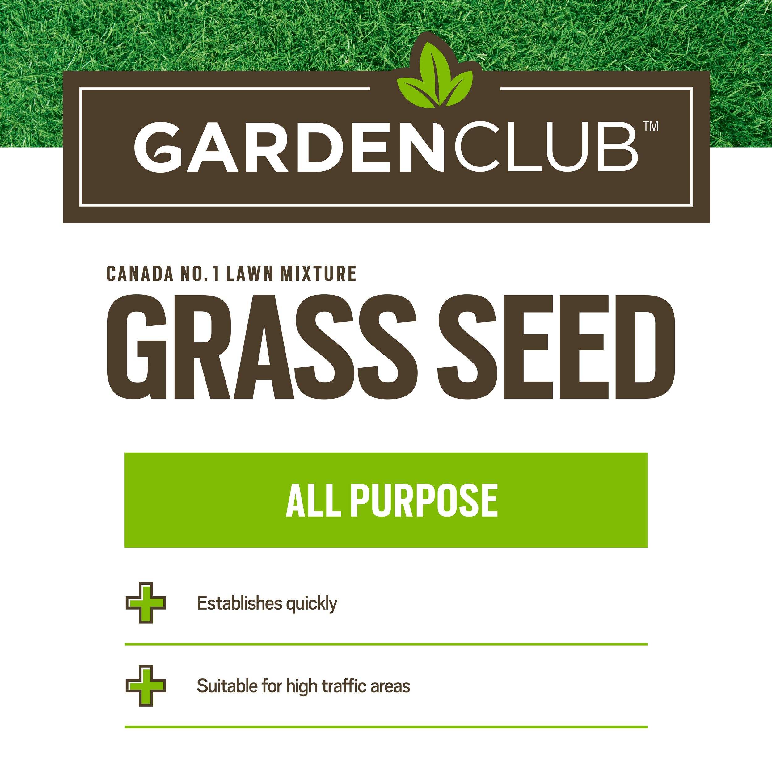Garden Club All Purpose Grass Seed establishes rapidly to produce a lush green lawn. This versatile seed mix is ideal for general landscaping use. The seed's all-purpose formula can readily cover up to 90 m², making it a useful choice to fill in bare spots or overseed your yard. A single bag is enough to seed a mid-sized lawn or garden.