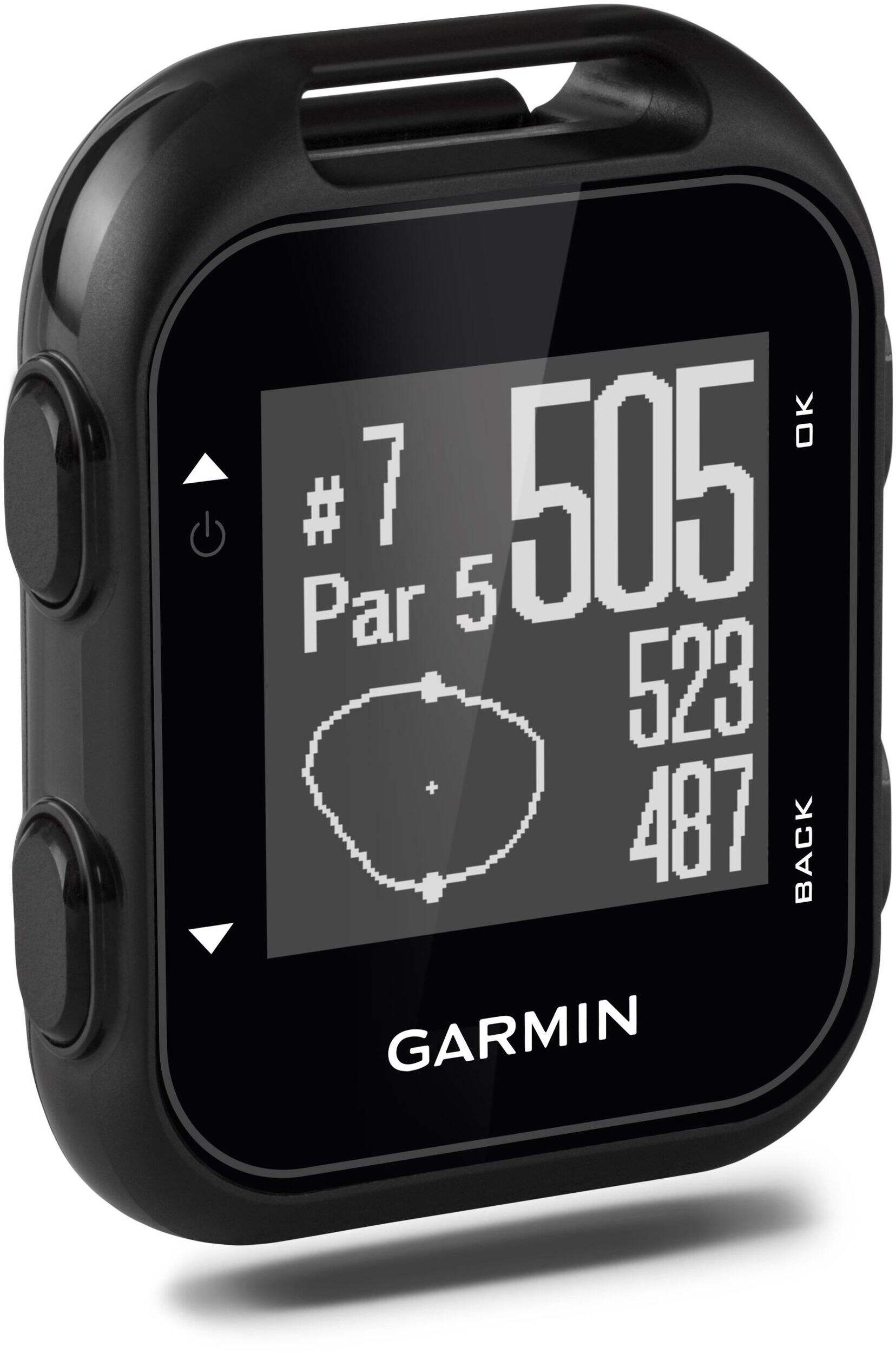 The Garmin Approach G10 GPS watch is for golfers who want to keep an accurate scorecard on their wrist. The lightweight, clip-on design features a readable display that shows distances to the green, hazards and pin positions to help judge your shots. Built-in scoring functions allow you to track your total distance played and time for each round while automatically tallying your score. Preloaded with over 41,000 golf courses worldwide and lifetime map updates mean you'll have the essential course info right on your wrist so you can focus on improving your game. The IPX7 water resistant G10 can handle a splash or two without missing a beat, making it a reliable companion throughout your round.