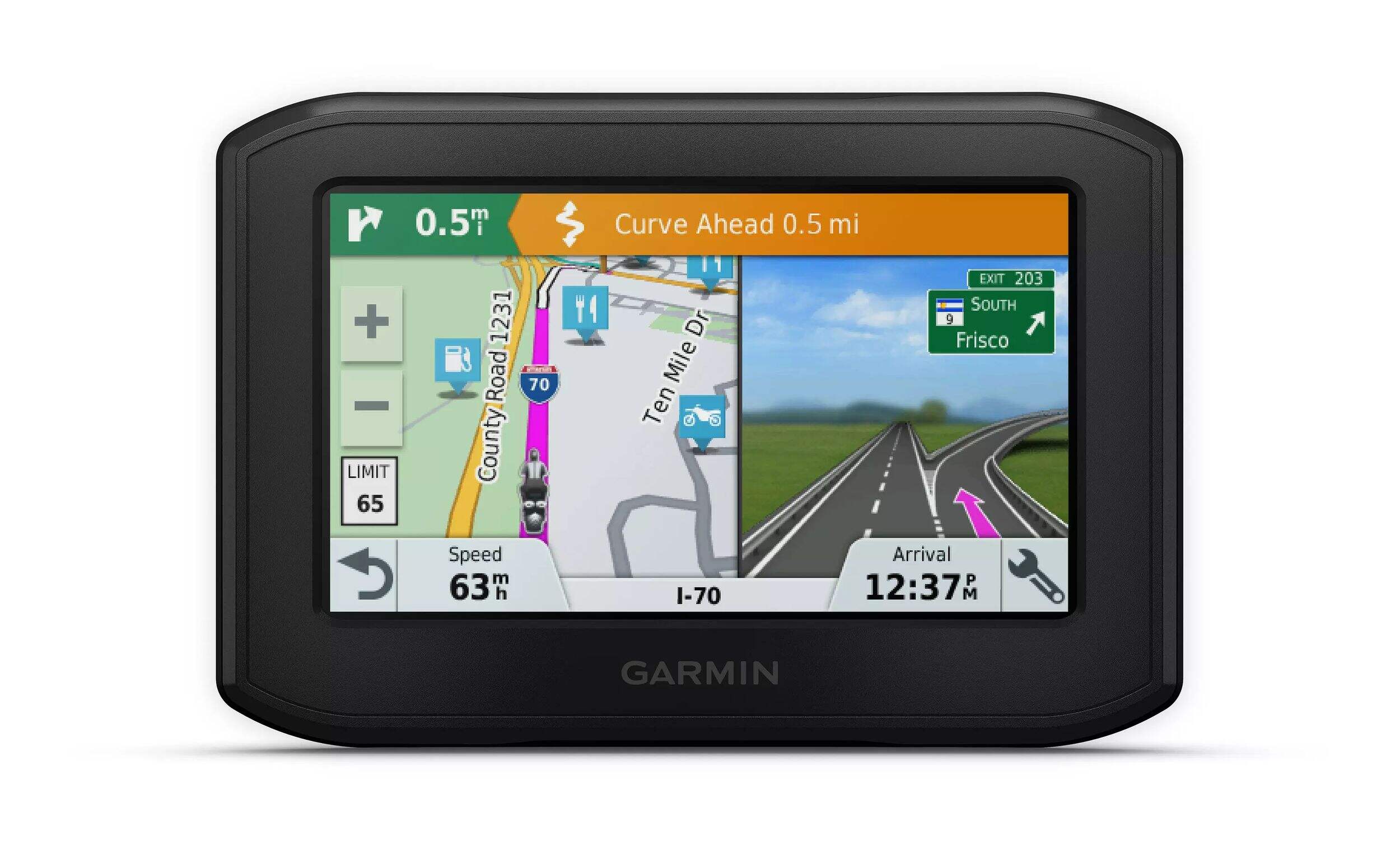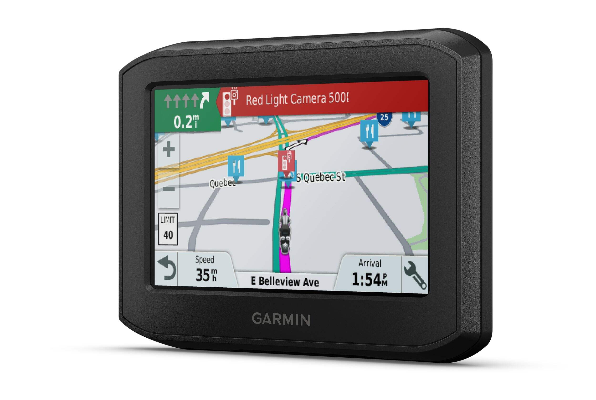 Helpful rider alerts for upcoming sharp curves, speed cameras and more assist in making your trip more safe