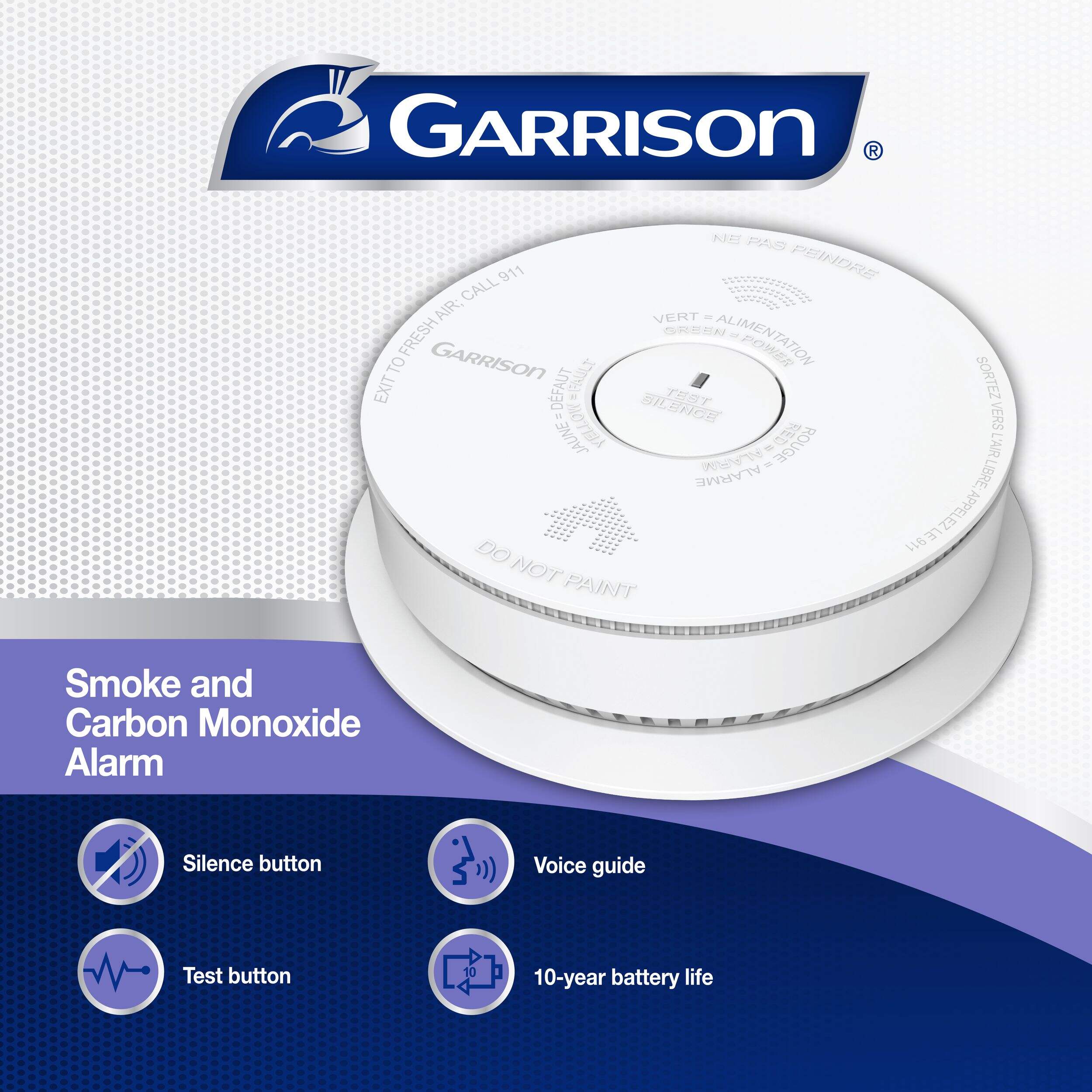 The Garrison Battery-Operated Combination Smoke & Carbon Monoxide Alarm offers comprehensive protection with advanced sensors for both smoke and CO detection. When the sensor detects something, it alerts you with a loud voice alarm and features a self-testing function to ensure reliable operation.