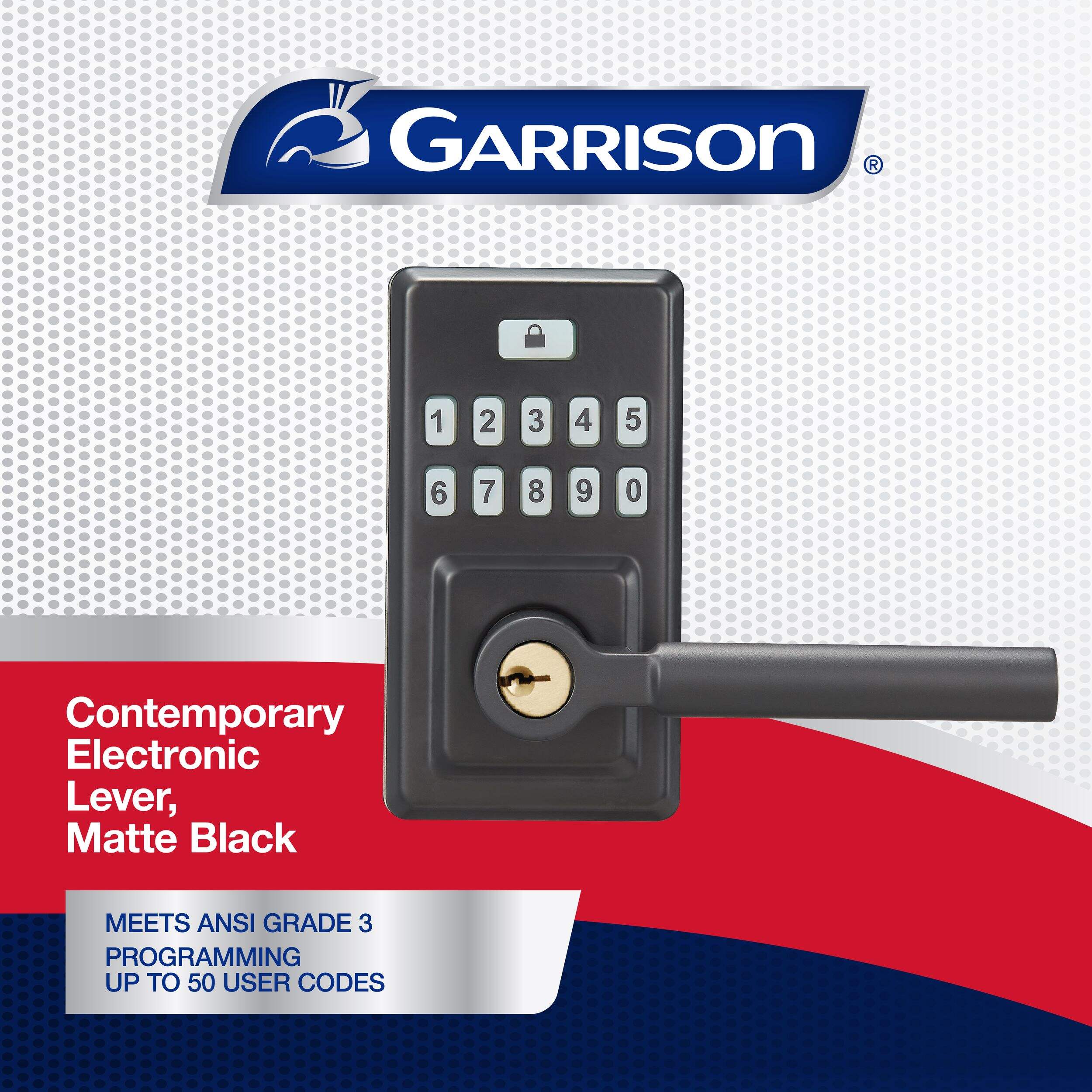 The Garrison Contemporary Electronic Lever offers essential security with its durable design. Its matte black finish provides a clean look, and the lever is designed for easy installation, making it a simple way to upgrade door security.