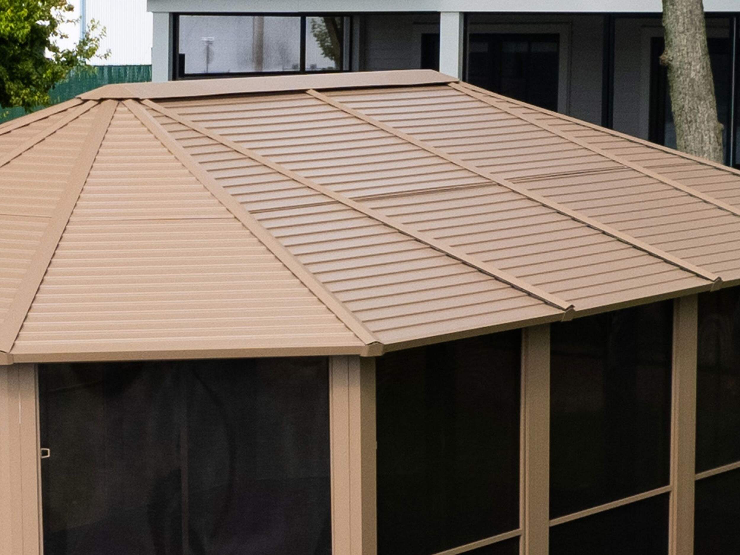 Extend the pleasure of your outdoor space with our Florence solarium. This extension to your home will provide the space to gather all your loved ones for an evening of dining and relaxing, or it can be used as the perfect shelter for your spa. This beautiful addition to your outdoor living space will shelter you from the elements for years to come while adding value to your property. This unit can be left in place all year round, saving you the hassle of setting up and taking down at the end of the season. The Florence solarium is constructed from extruded aluminum and features elegant galvanized steel roof panels, two sliding doors and PVC windows that can slide into 5 different positions. This solarium has been carefully designed to withstand exposure to rain, snow and UV rays.