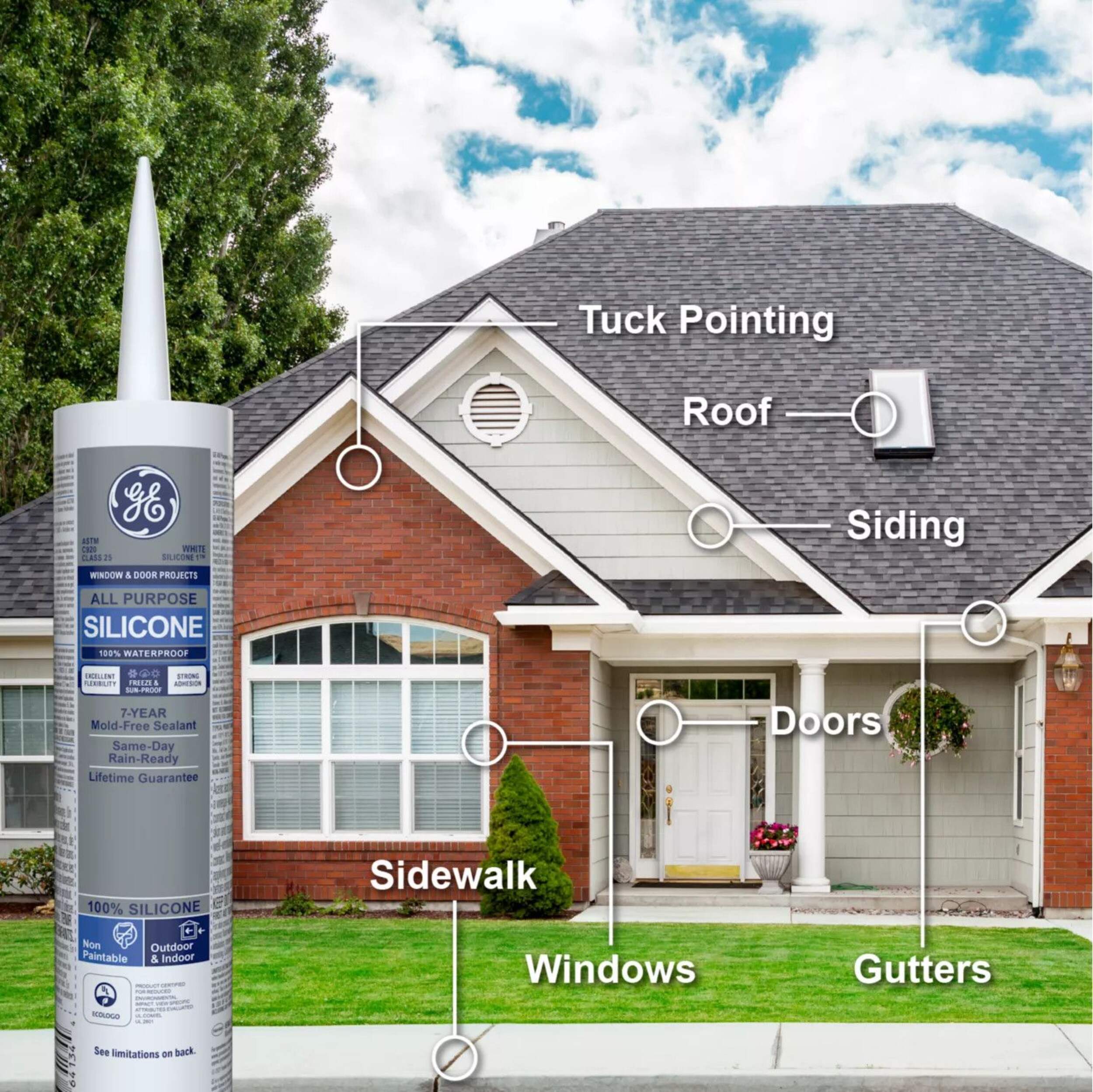 GE Window & Door Sealant White All Purpose is a 100% waterproof, weatherproof, and silicone sealant that offers protection fromwater damage, providing a reliable seal in areas exposed to harsh weather