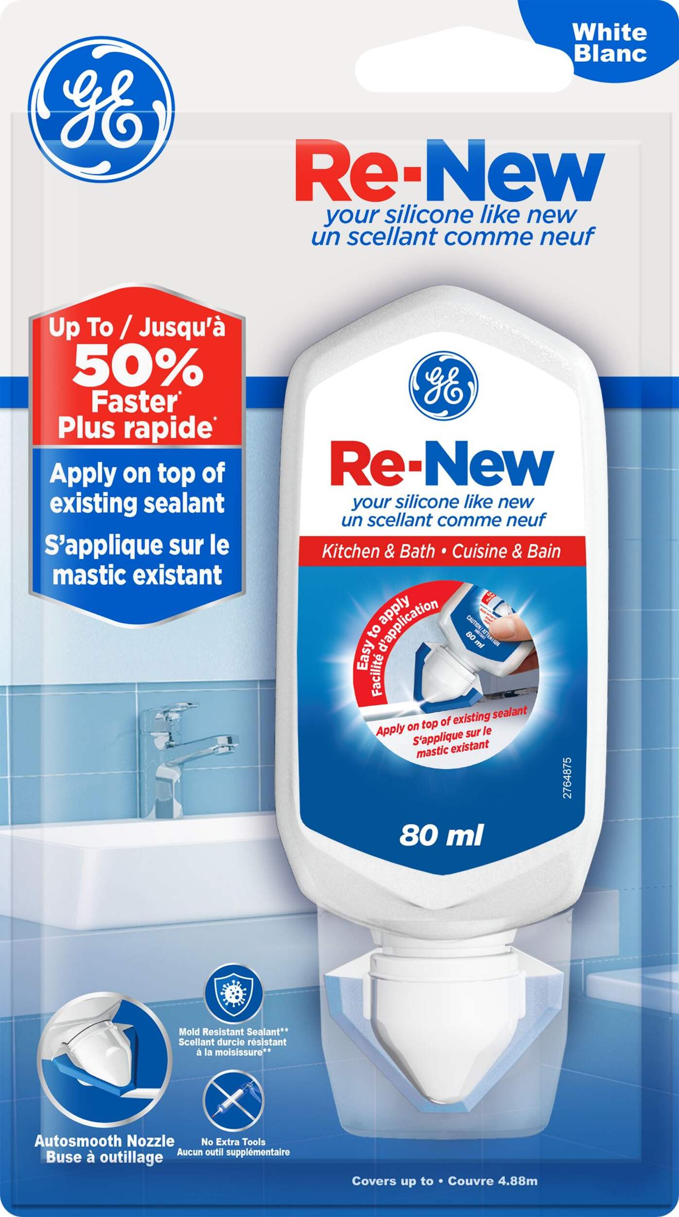 GE Re-New Specialty Silicone Sealant is a go-to solution for repairing ugly-looking caulk in your kitchen or bathroom