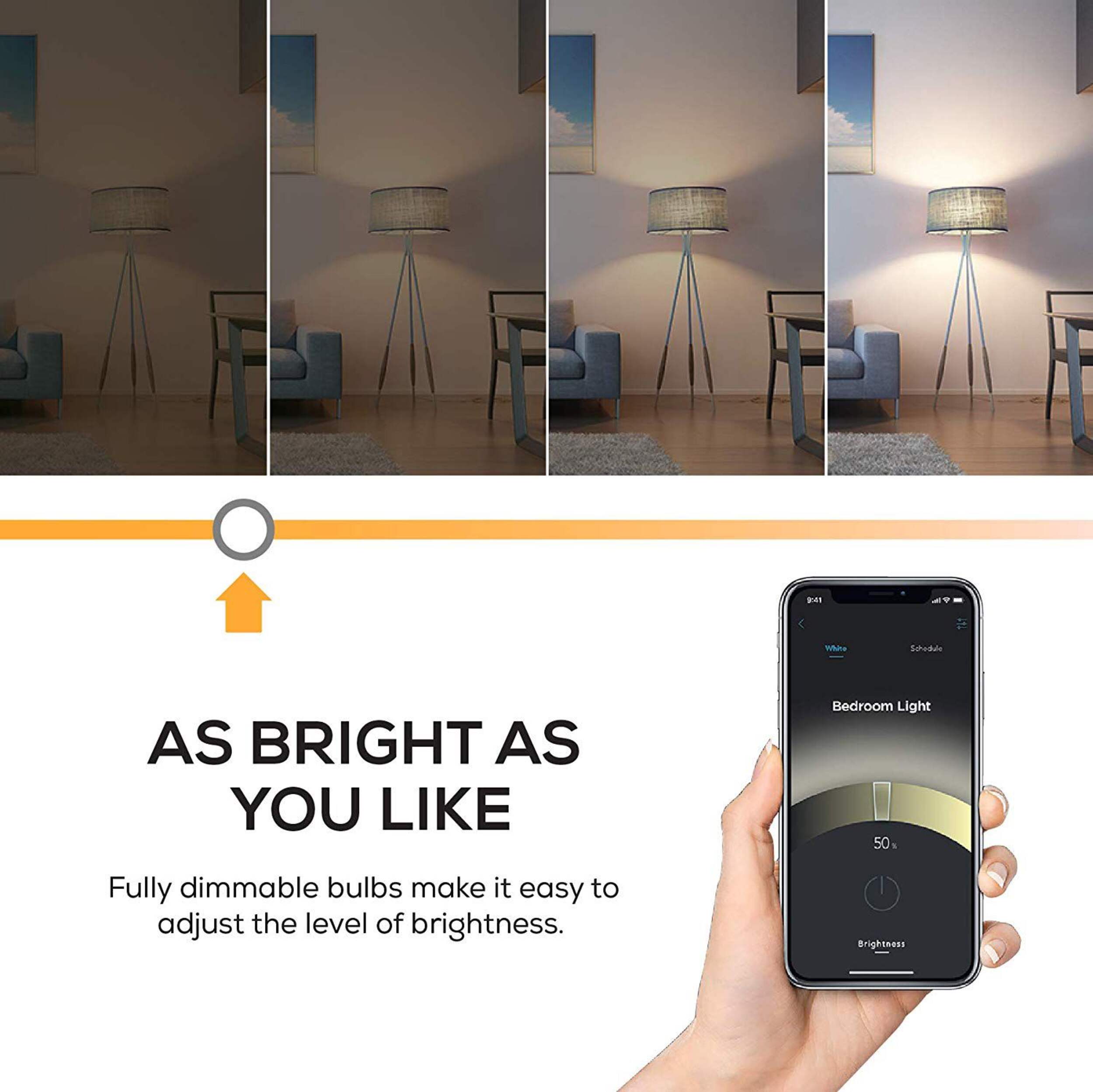 Geeni Dimmable LED Smart Wi-Fi Light Bulb provides warm white light for any mood or occasion