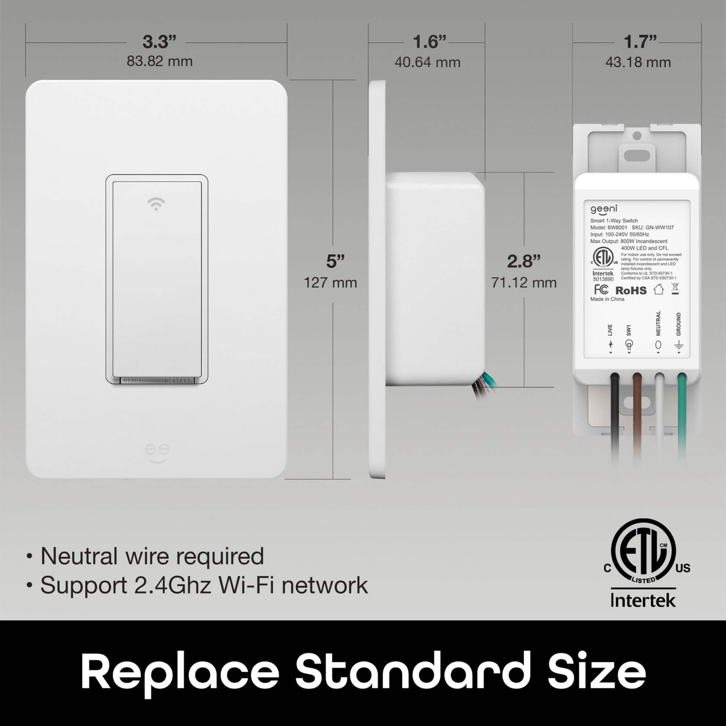 Geeni Wi-Fi Smart Light Switch lets you control household lights, fans, and more from anywhere using the Geeni smartphone app