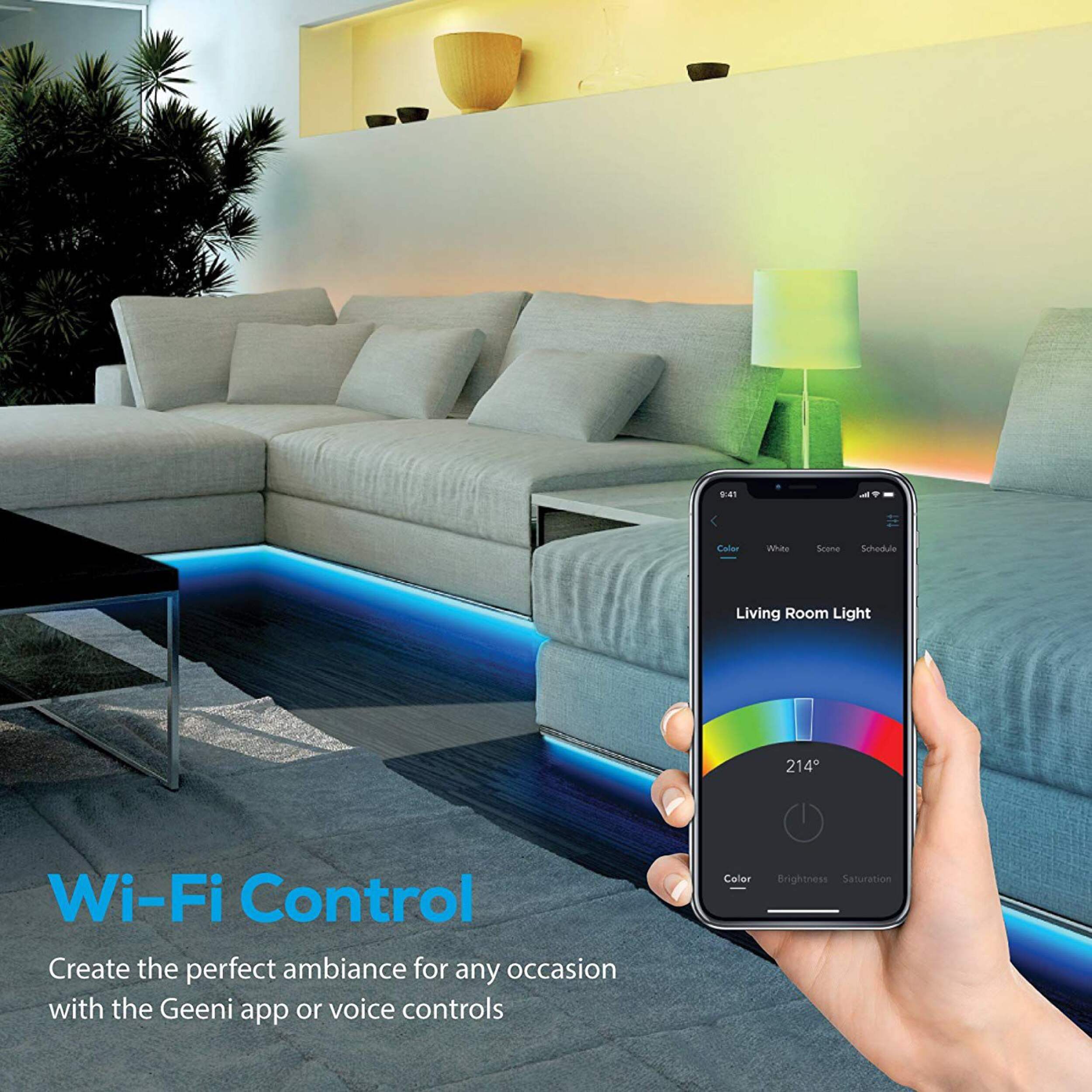 The Geeni Prisma Smart Wi-Fi LED Light Strip helps you elevate the ambiance of any space with colourful, customizable lighting. This versatile light strip can be installed both indoors and outdoors, providing flexible, cuttable, and water-resistant lighting solutions. With full control from the Geeni app, you can adjust colours, brightness, and schedules to create the perfect environment for any occasion, all without needing a hub.