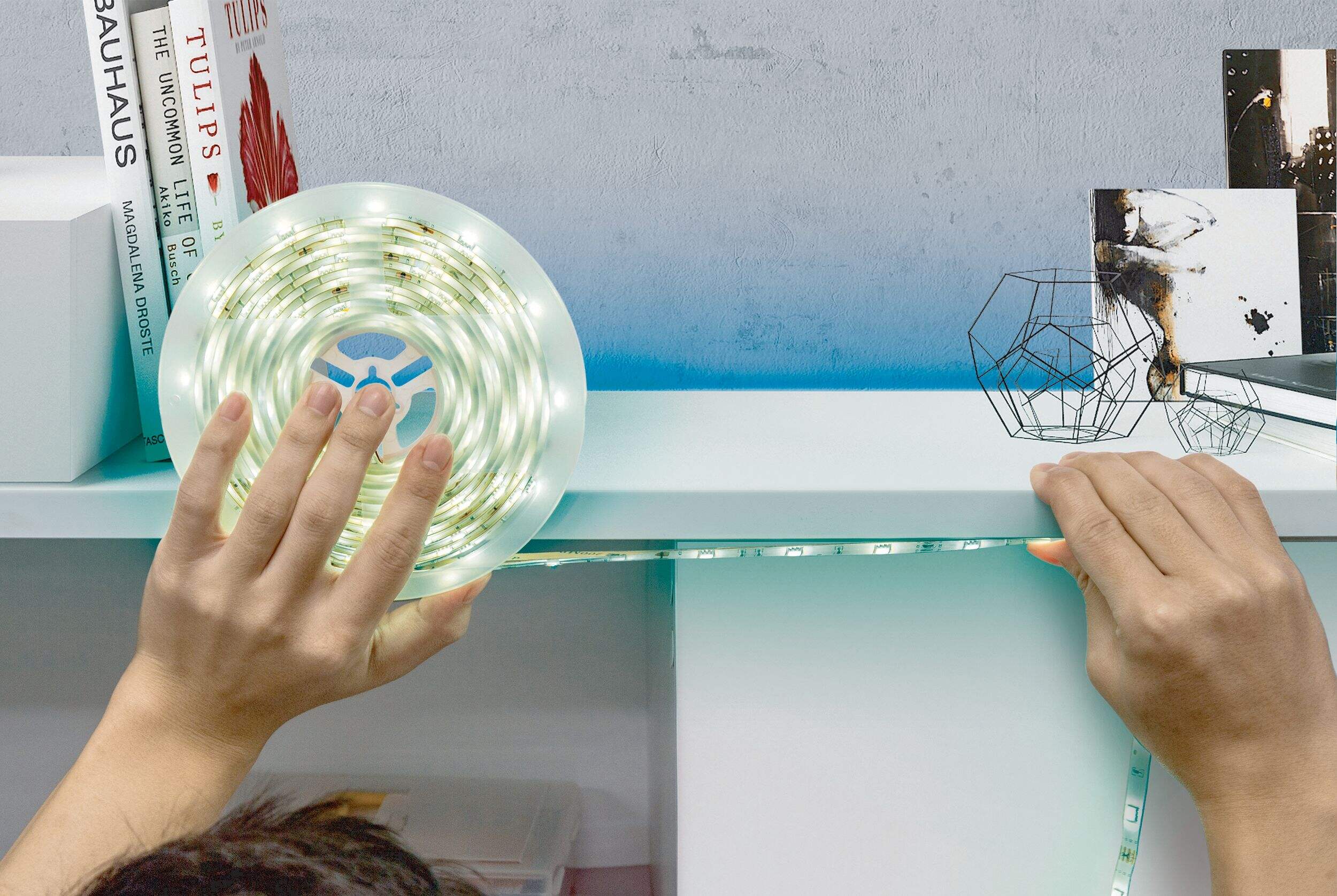 The Geeni Smart Indoor/Outdoor Wi-Fi LED Light Strip adds vibrant colour to any space. This flexible strip can be customized to fit your needs and trimmed to the desired length. The package includes the LED strip, Wi-Fi controller, connector, USB cable, anchor mounts, user manual and voice control guide. Weather-resistant for outdoor use, it connects to the free Geeni App, allowing you to choose from thousands of colours to create your ideal mood lighting. With a brightness of 1500 Lumens, this LED light strip delivers a stunning ambient glow.