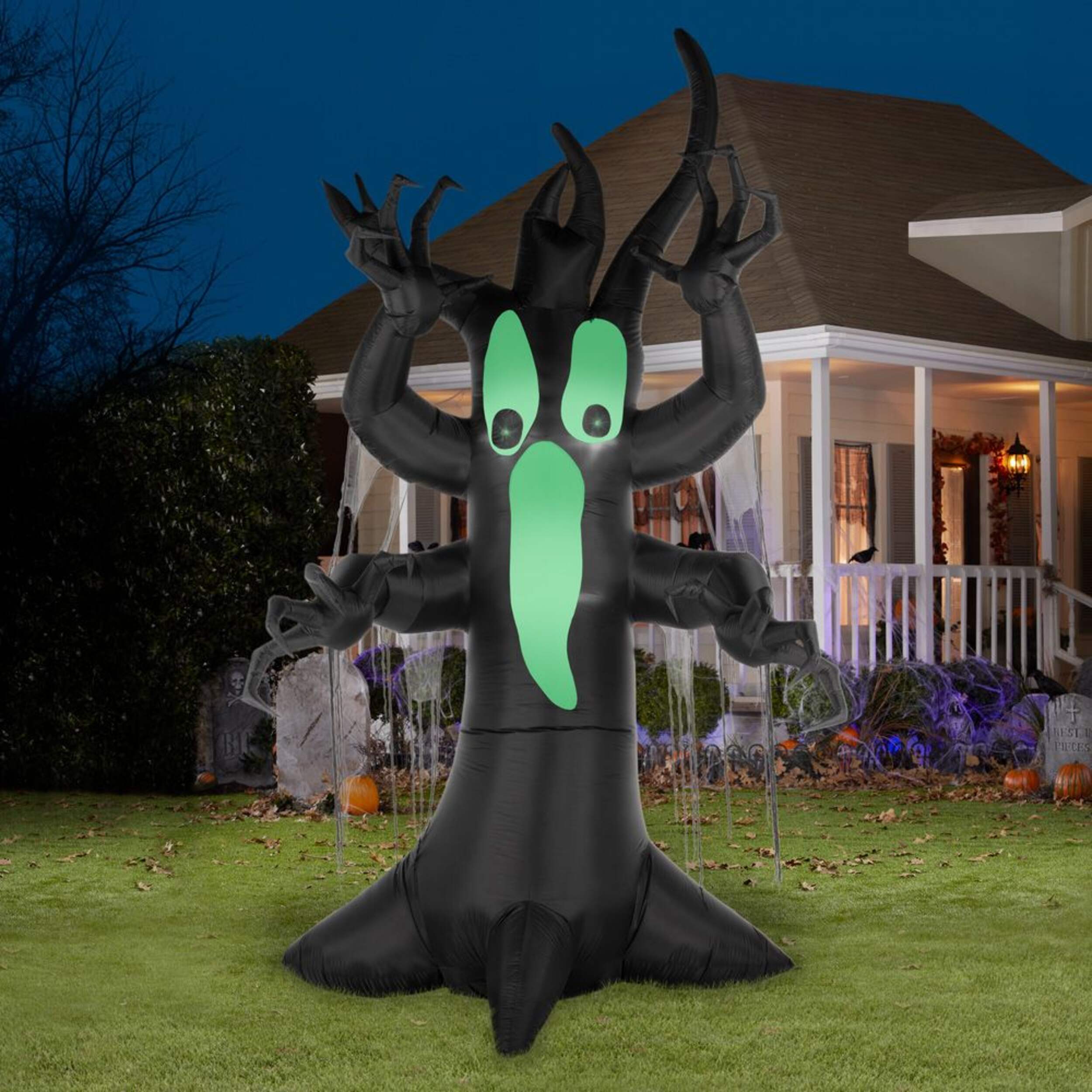 Create a haunting atmosphere this Halloween with the Gemmy Air Blown Spooky Face Tree Inflatable. This towering decoration features a menacing face that will delight and frighten trick-or-treaters. Perfect for adding a touch of eerie charm to your outdoor setup.