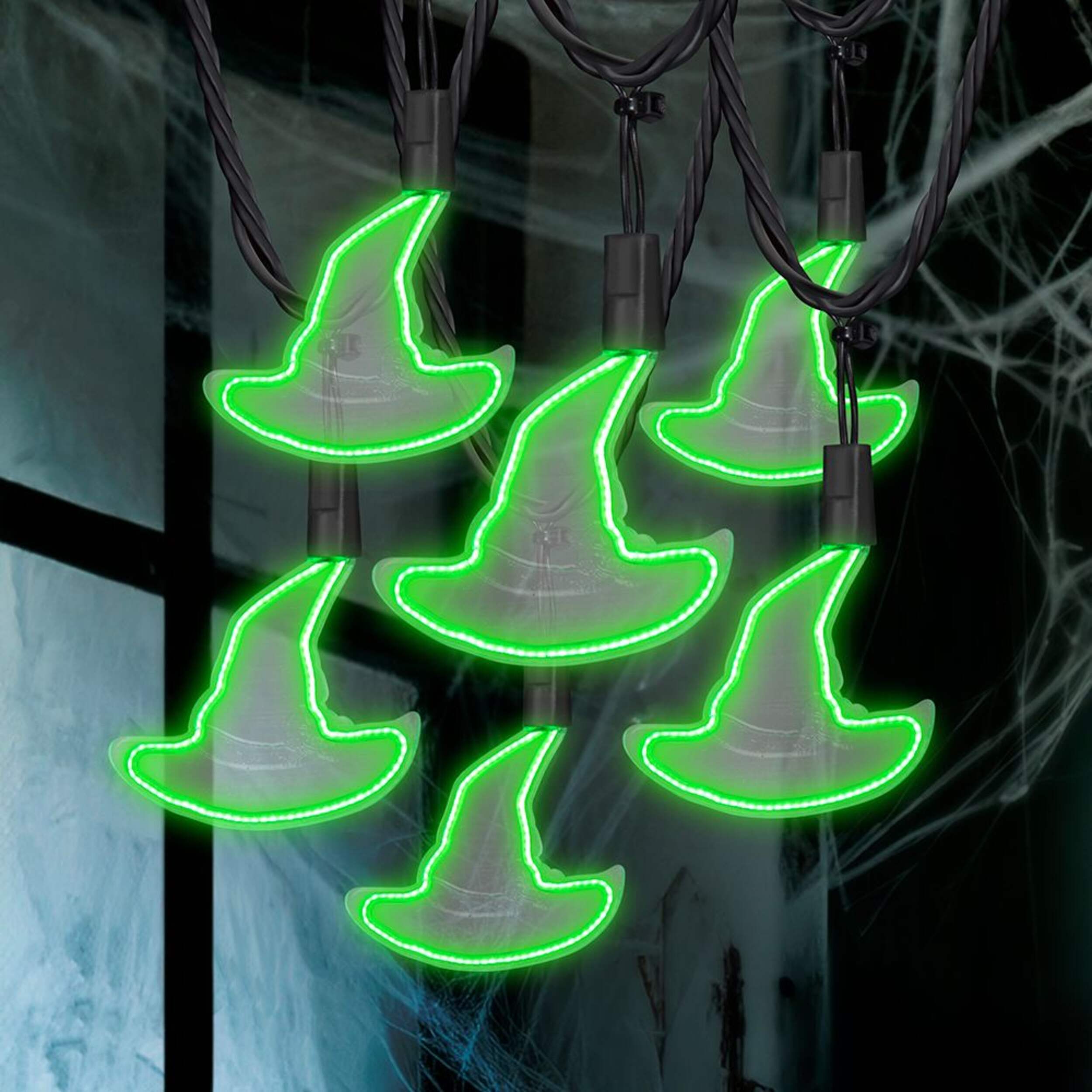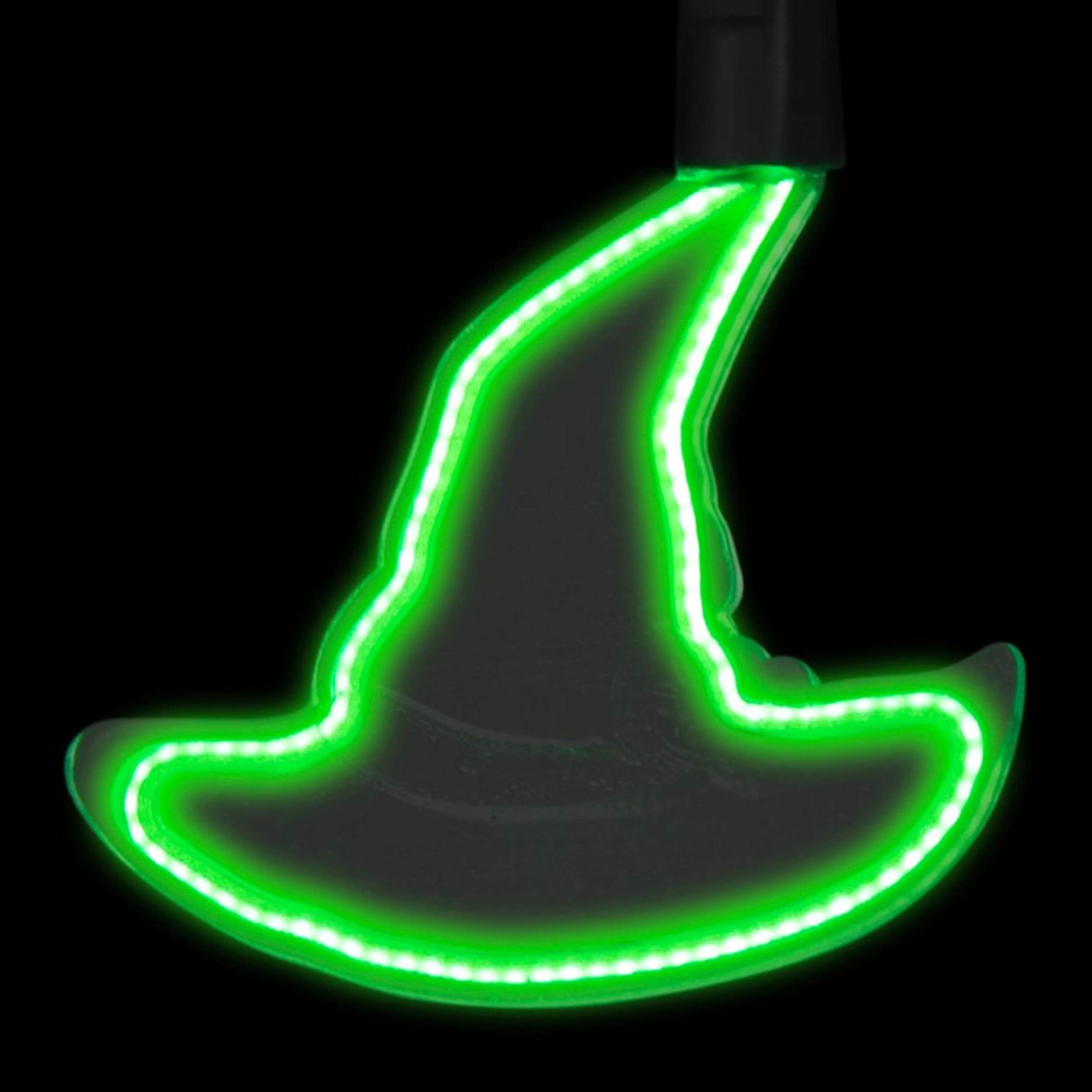 Illuminate your Halloween festivities with the Gemmy Indoor LED Neon Witch Hat Decoration. This set of six vibrant green witch hats adds a spooky yet fun touch to your indoor decor. Perfect for creating a festive atmosphere, these decorations are sure to delight guests of all ages.