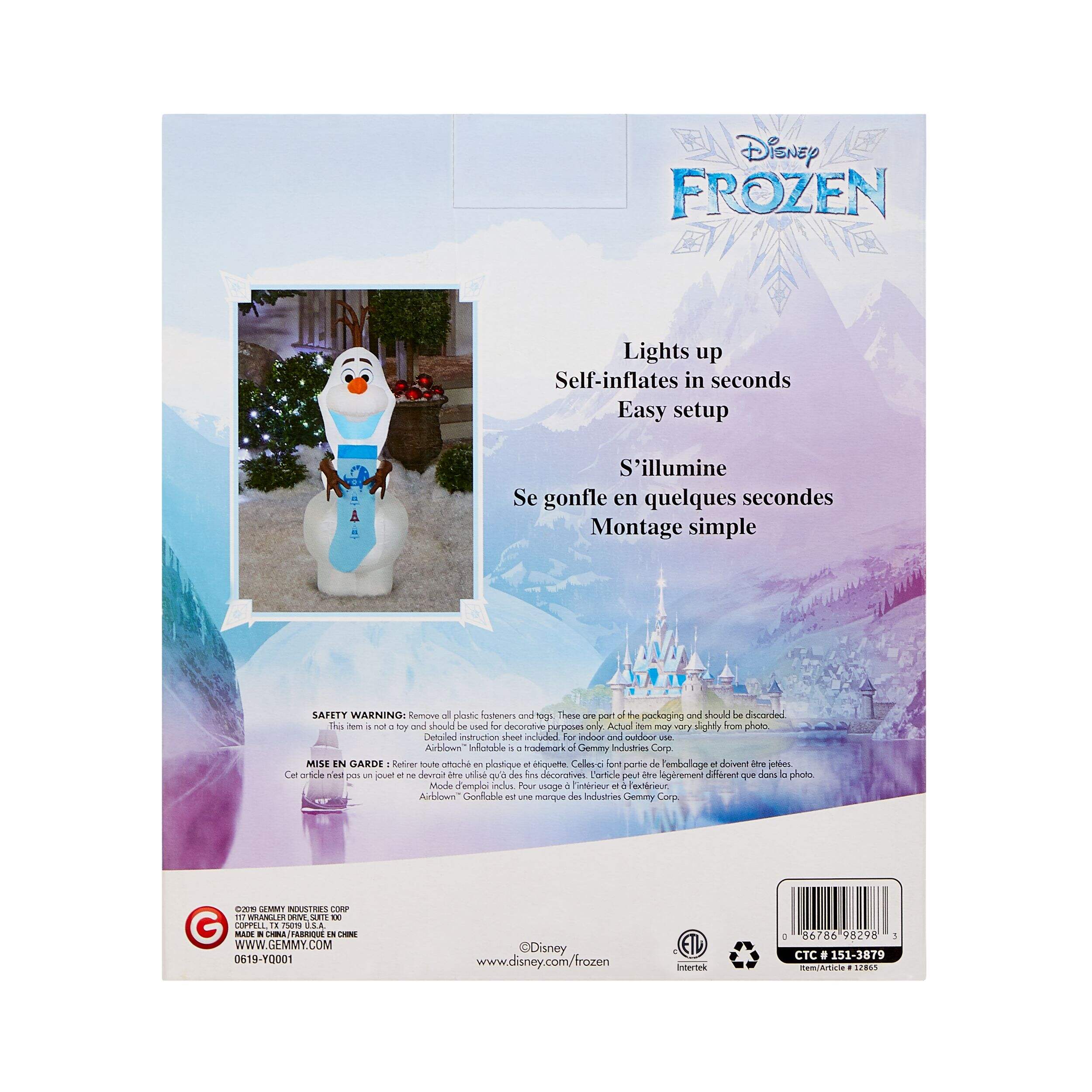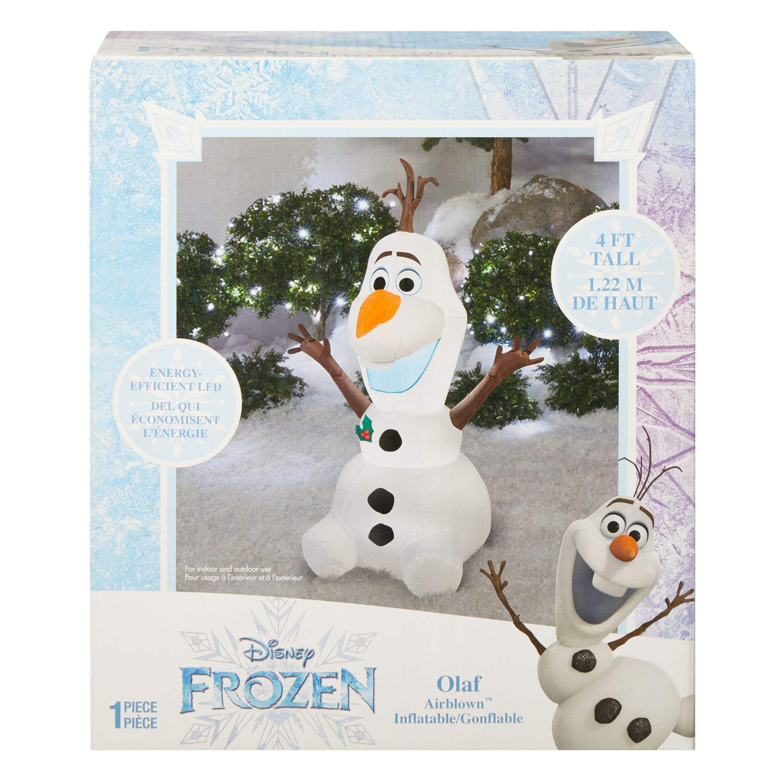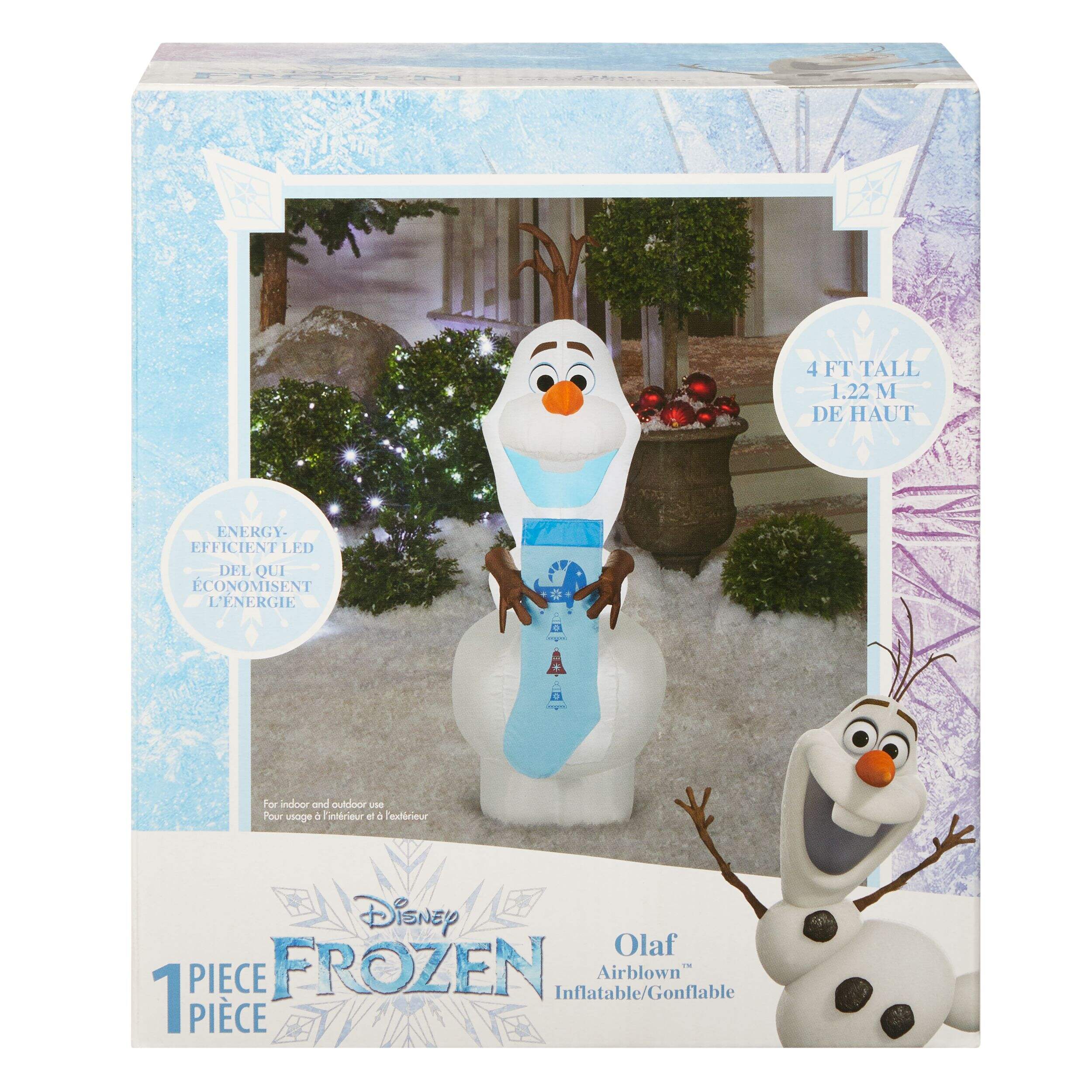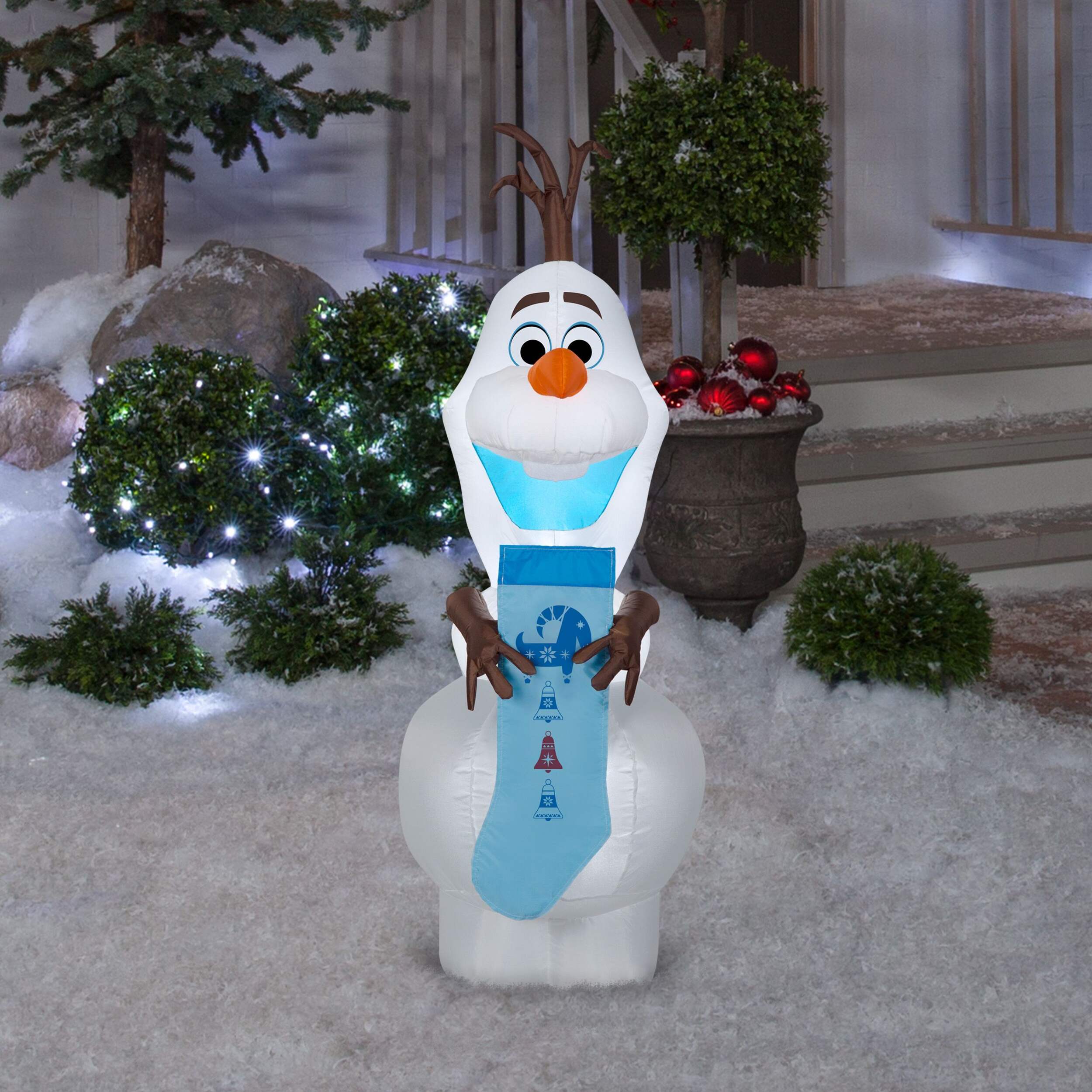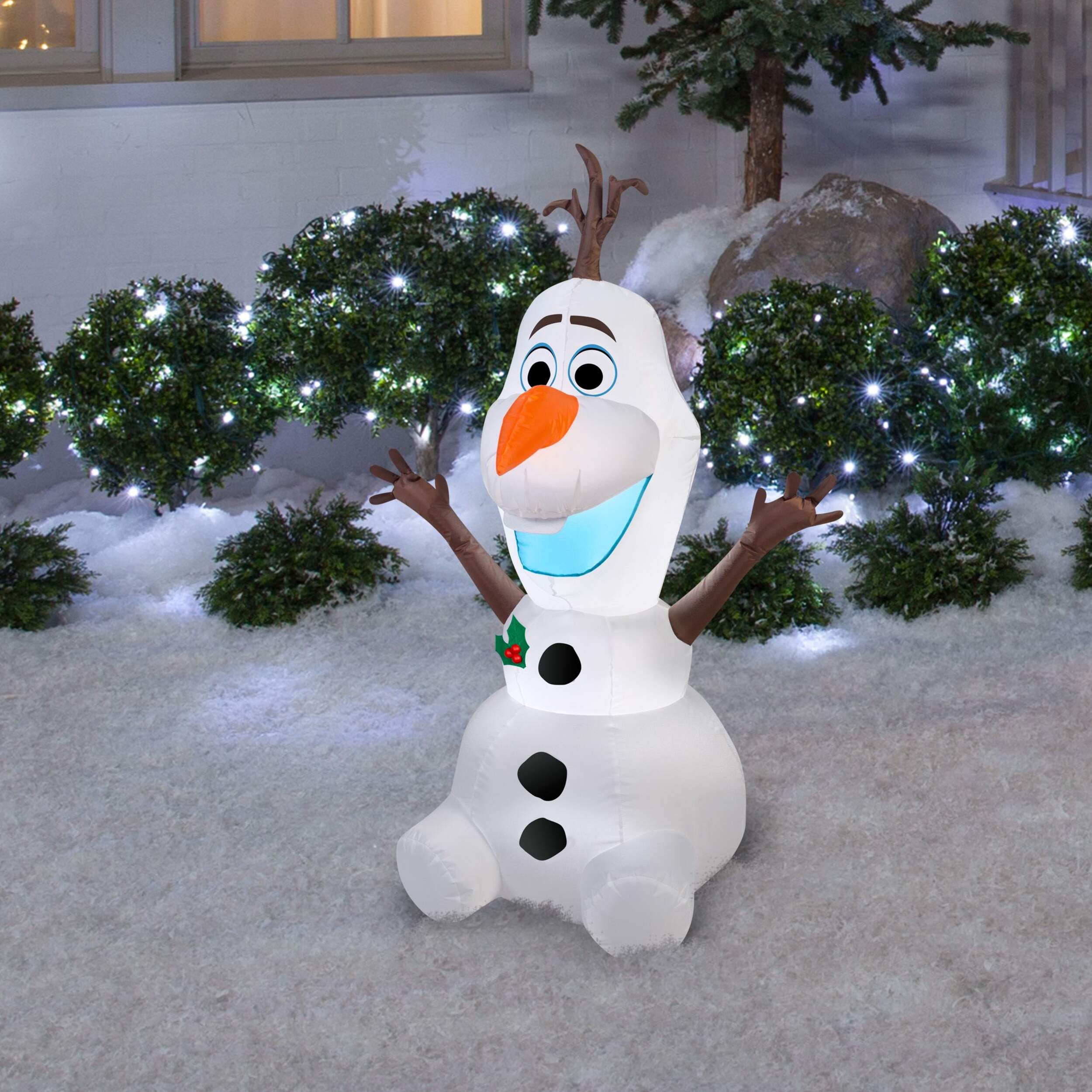 The Gemmy Inflatable Olaf Christmas Holiday Decoration brings a touch of Disney magic to your holiday décor. Standing at 4 feet tall, this inflatable Olaf, from Disney's Frozen, is sure to charm children and adults alike. Perfect for both indoor and outdoor use, Olaf self-inflates in seconds and features internal lights, making him a standout decoration in any Christmas display. This inflatable character is designed to bring joy and fun to your holiday season.